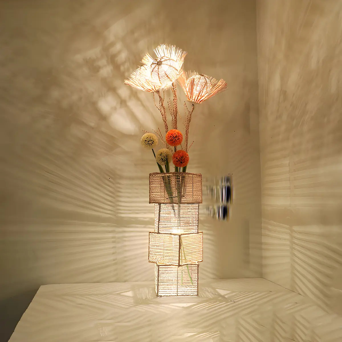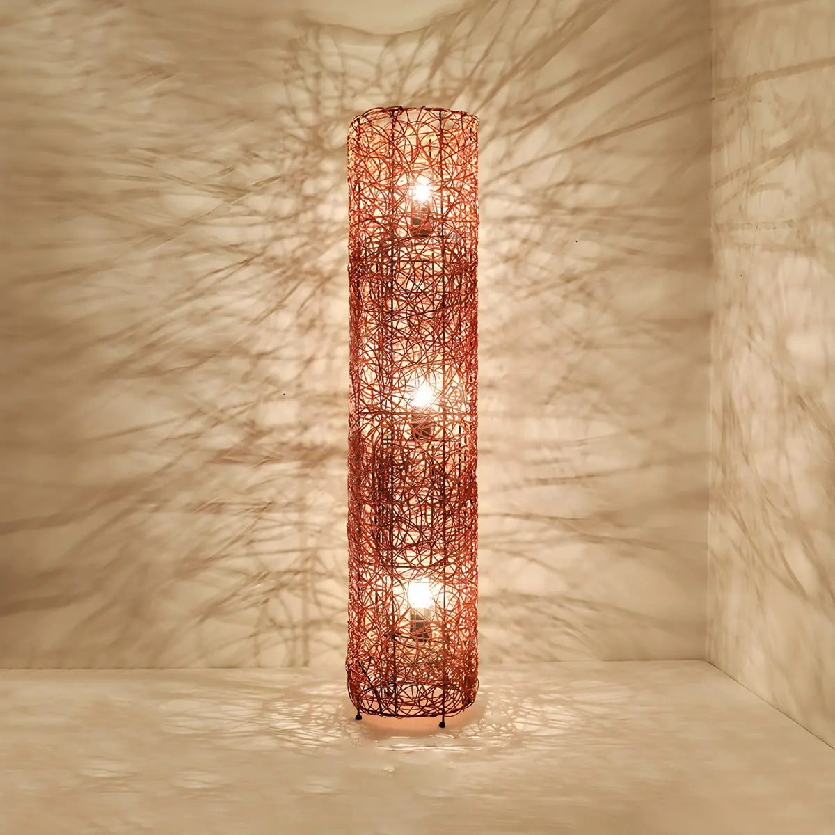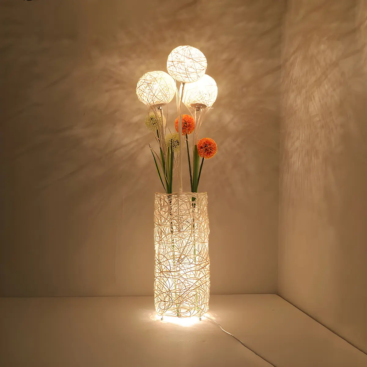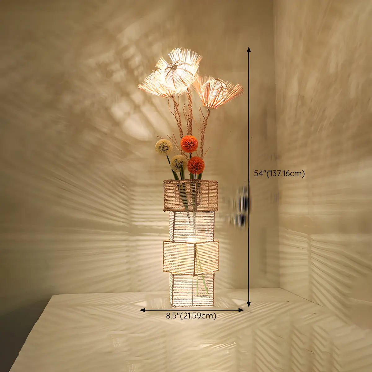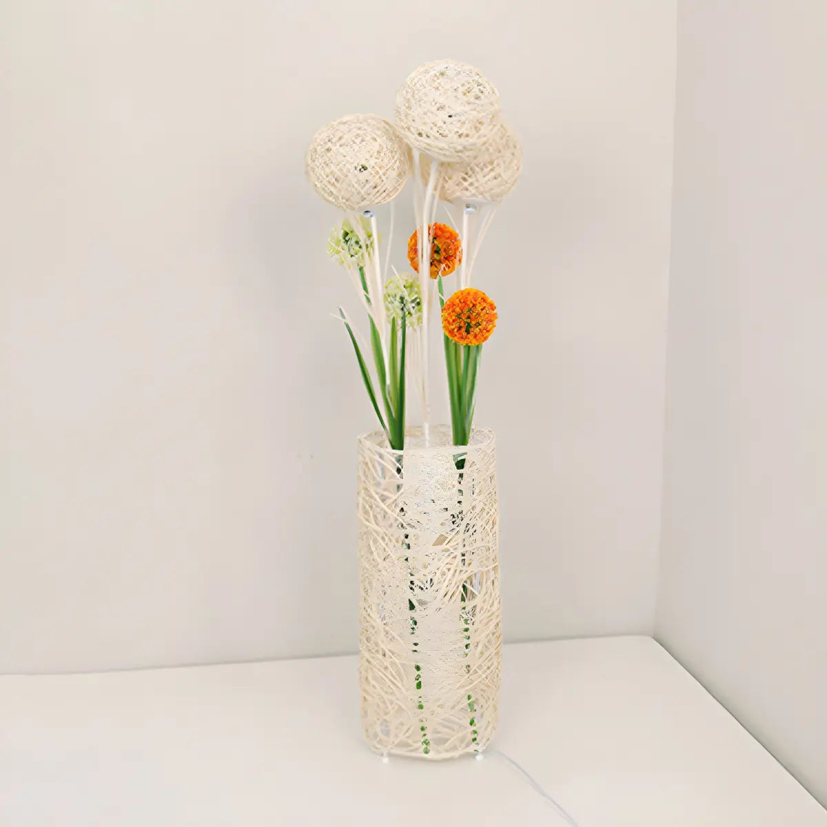 ZOWALA - Artistic Cylinder Wood Woven White Globe Floor Lamp