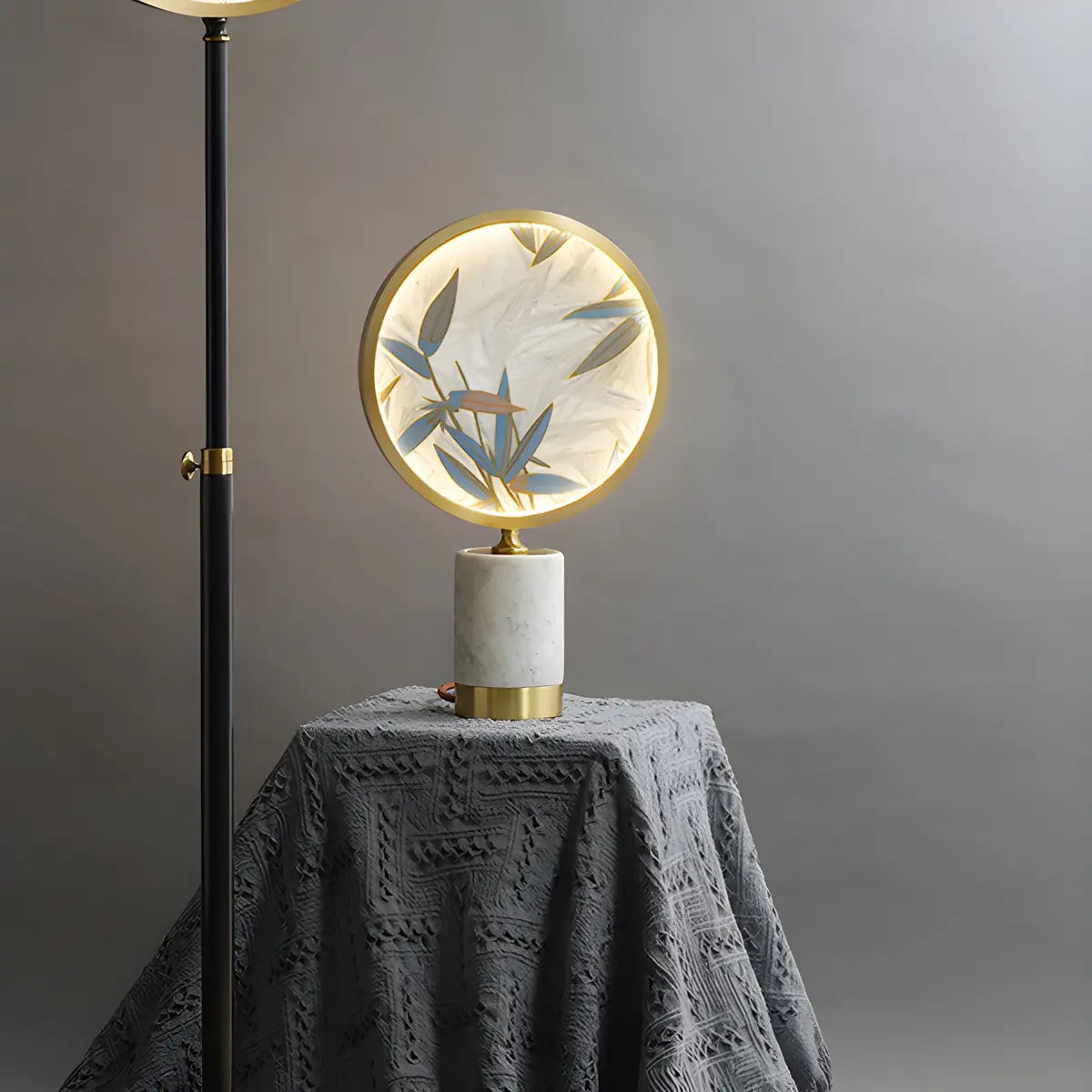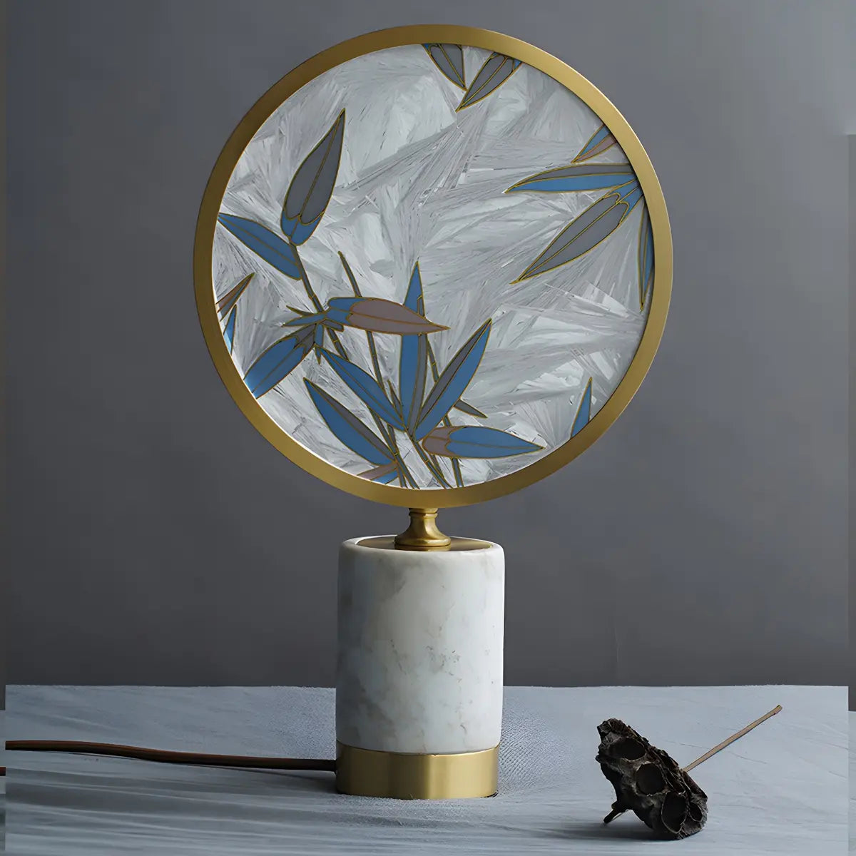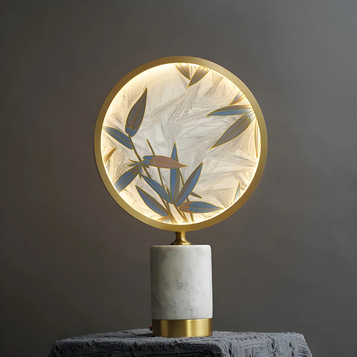 ZOWALA - Bamboo Leaf Round Marble Base Gold Table Lamp