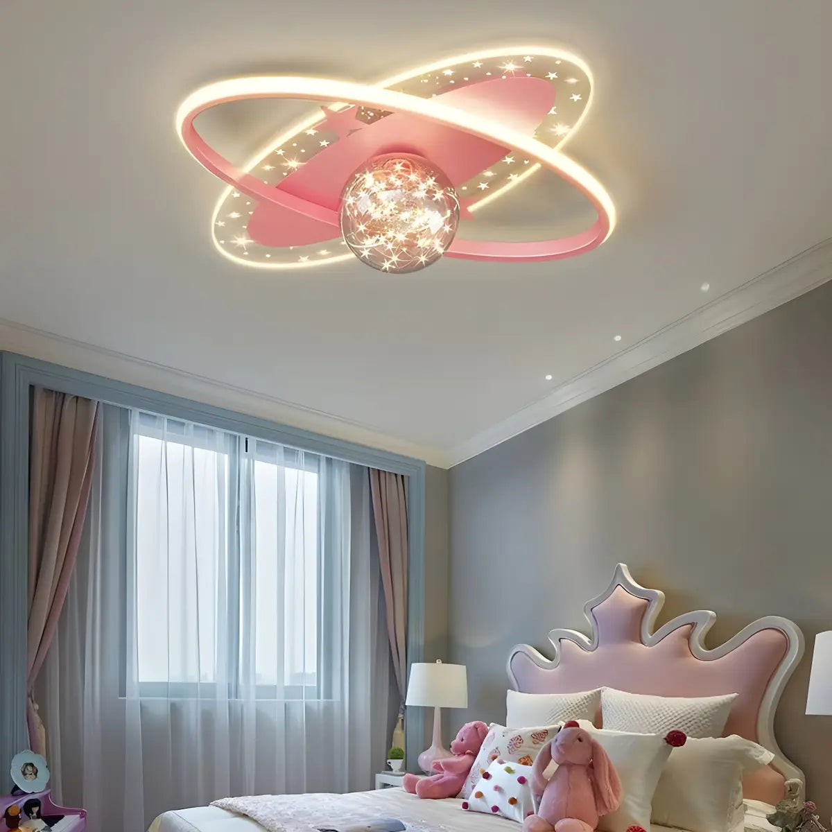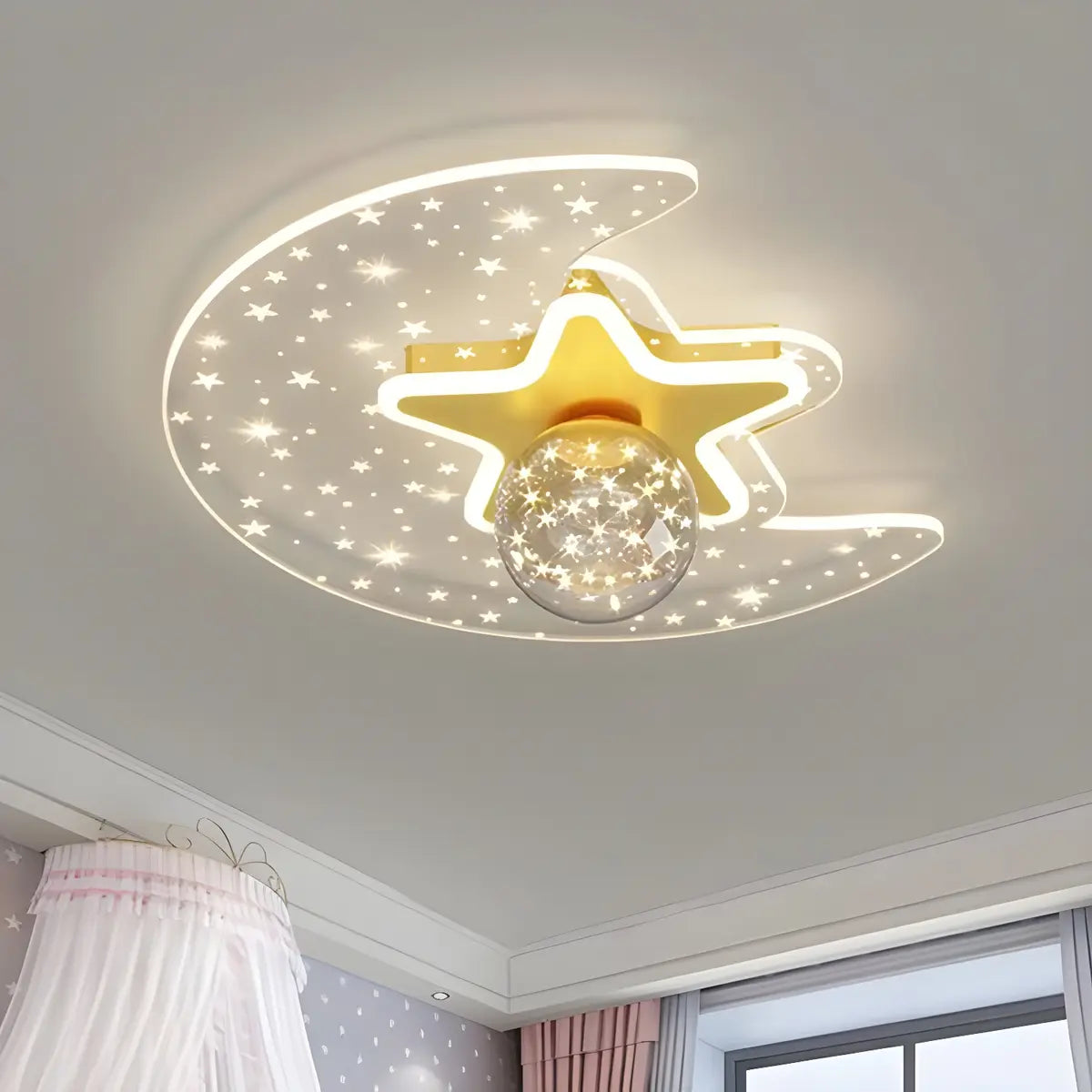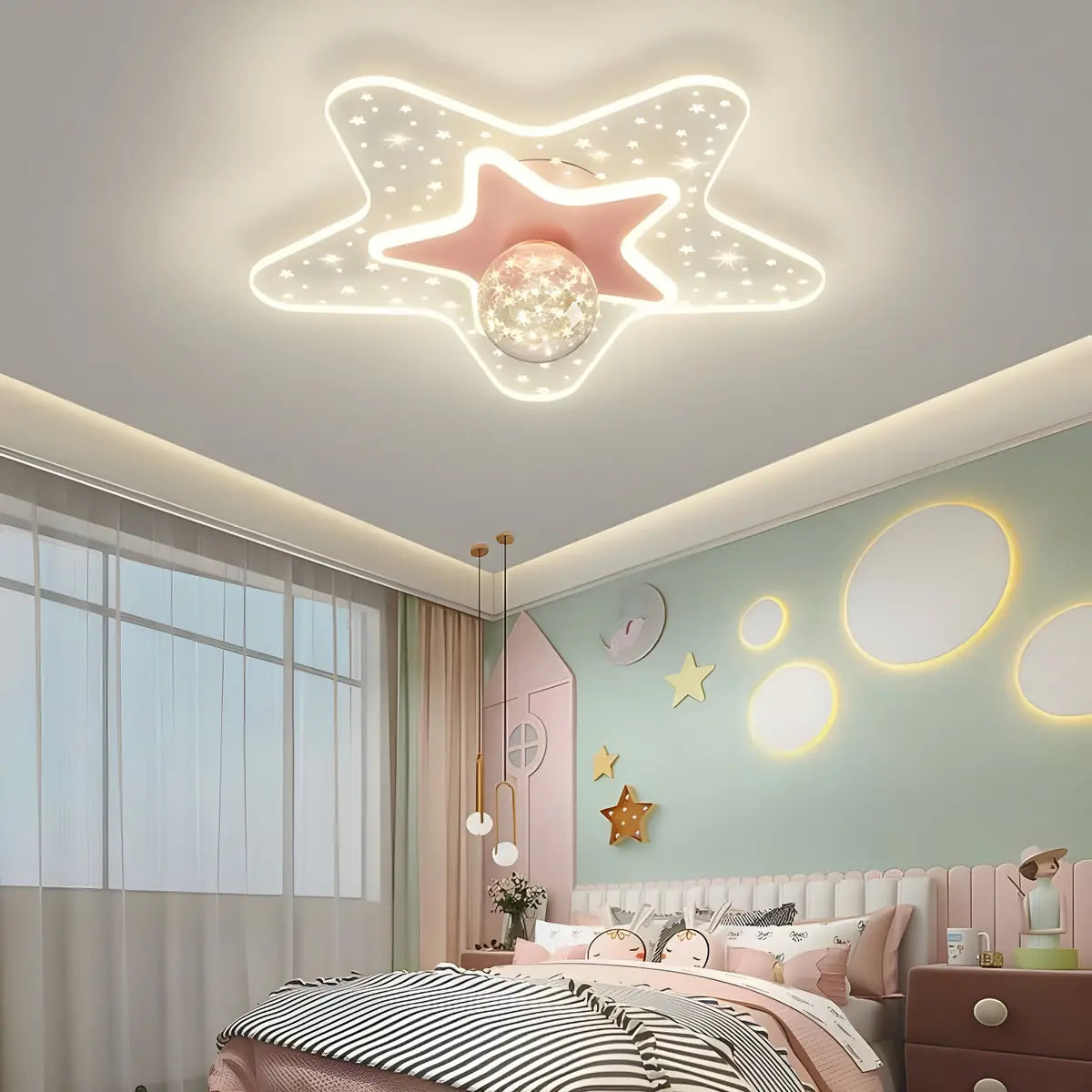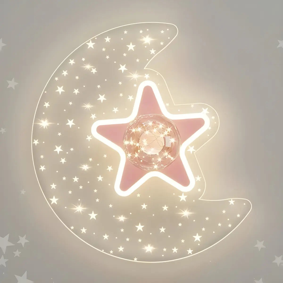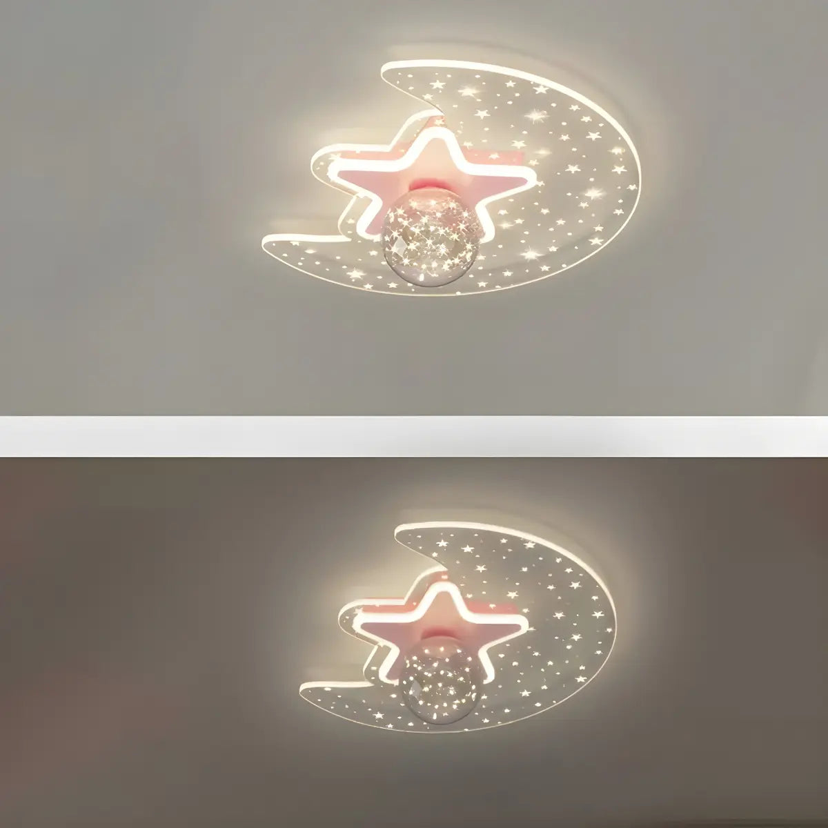 ZOWALA - Bedroom Pink Dreamy Star Moon Flush Mount Light