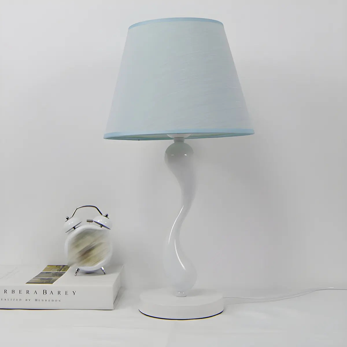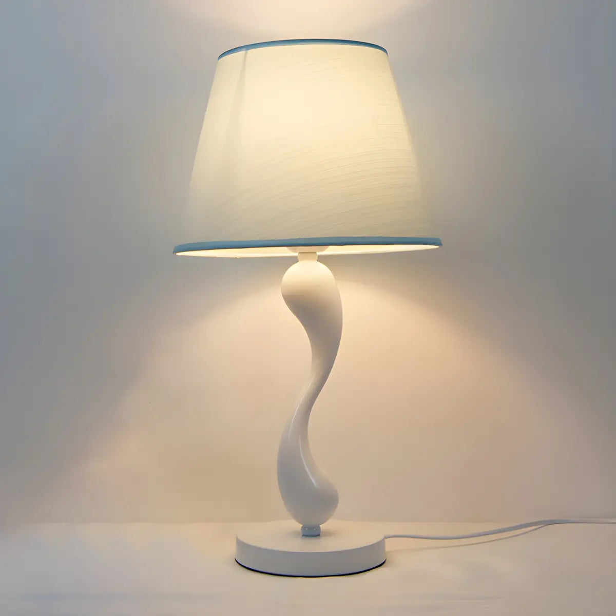 ZOWALA - Bedroom Simple Cone Fabric Spiral White Table Lamp