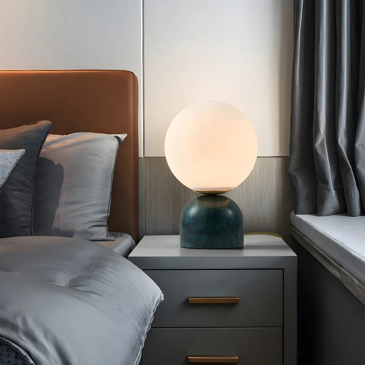 ZOWALA - Bedroom Stone Base Globe Glass White Table Lamp