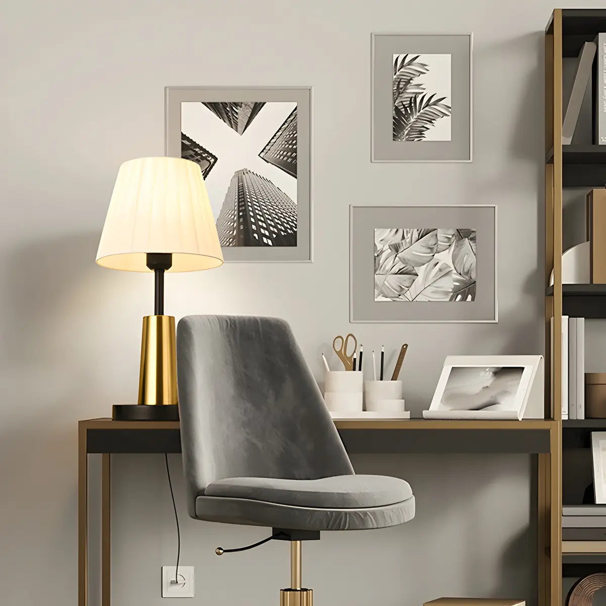 This bedside lamp combines modern style with high-quality metal materials to elegantly decorate your bedroom space. The exquisite fabric lampshade provides soft light and creates a warm atmosphere.