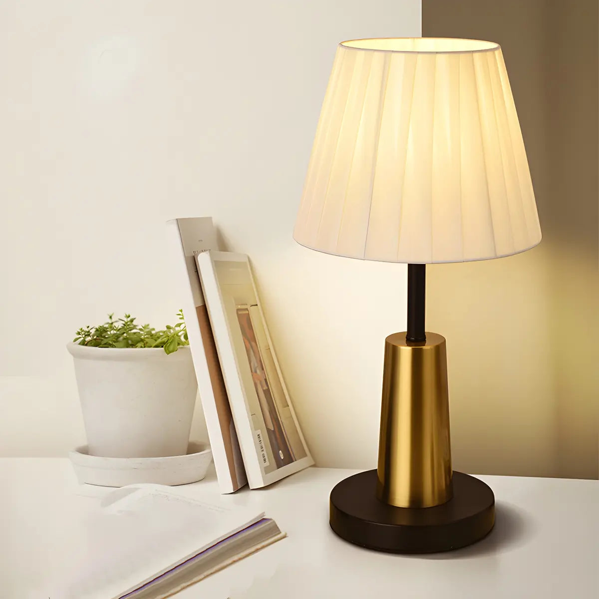 ZOWALA - Beige Fabric Barrel Gold-Black Base Table Light