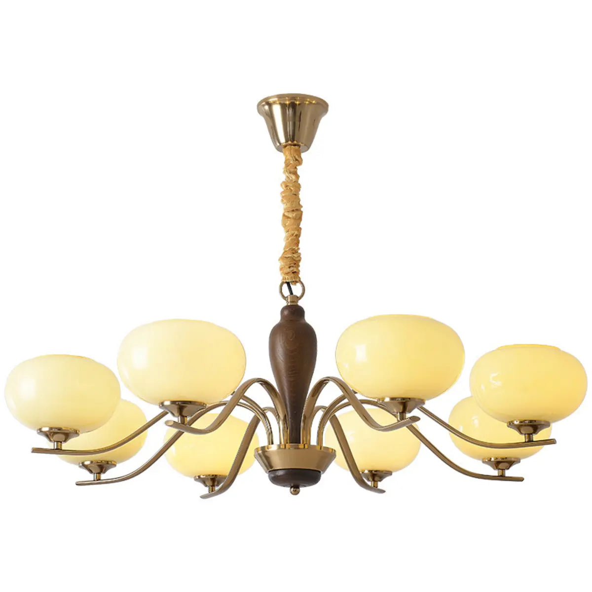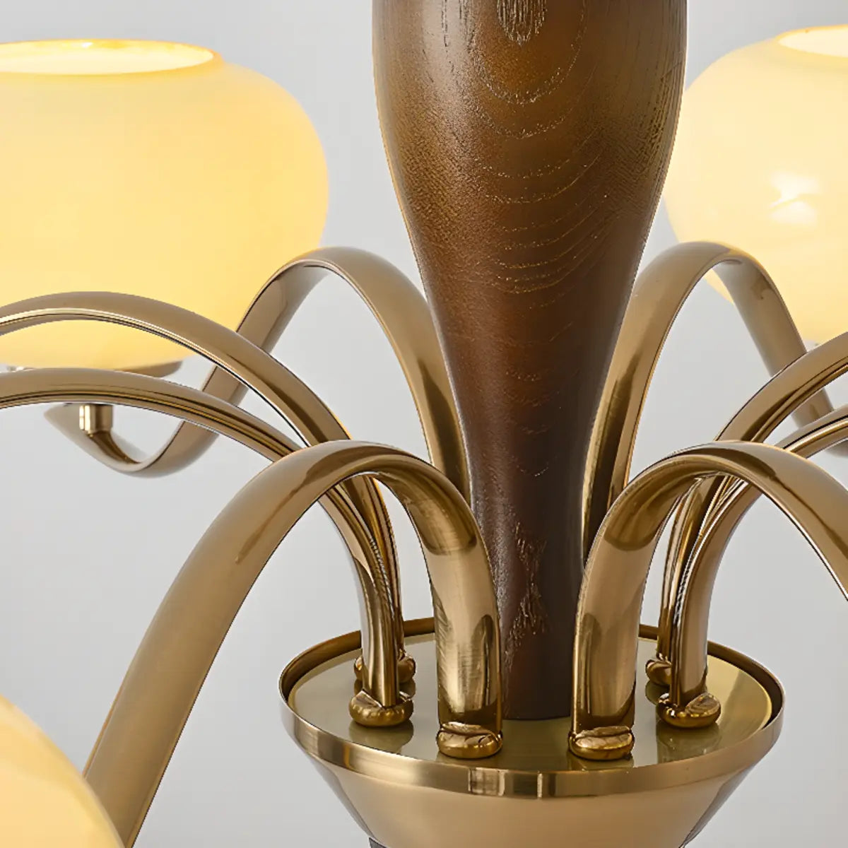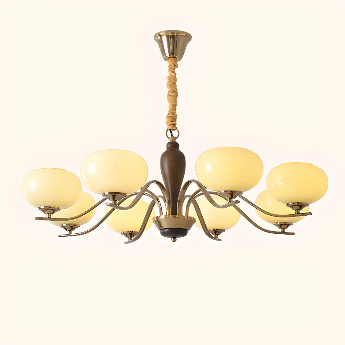 ZOWALA - Modern Beige Glass Bowl Walnut Chandelier