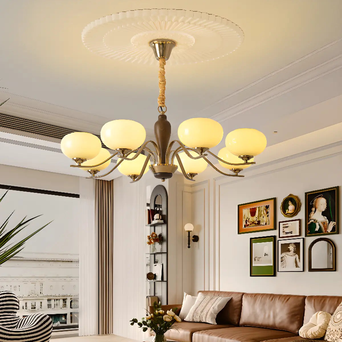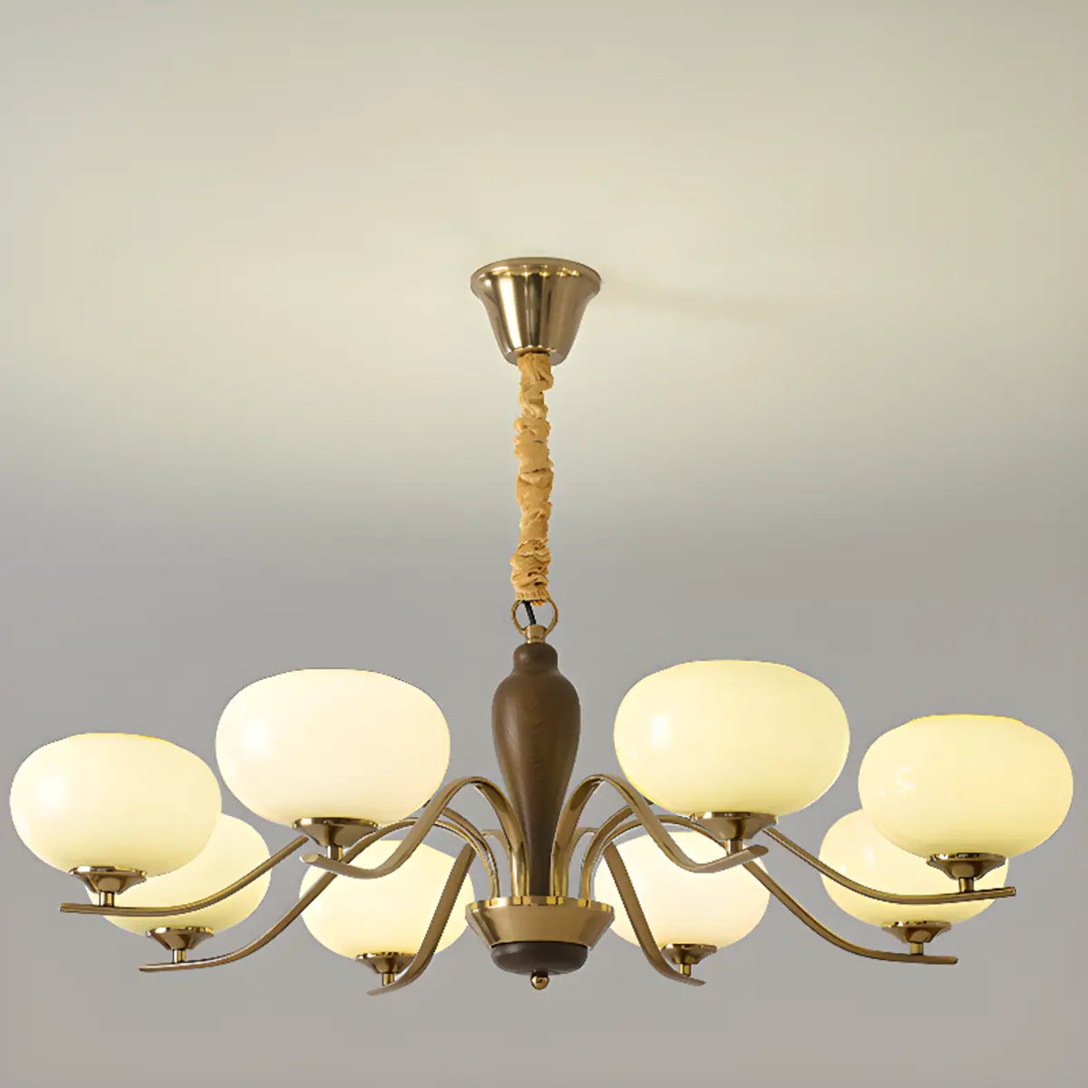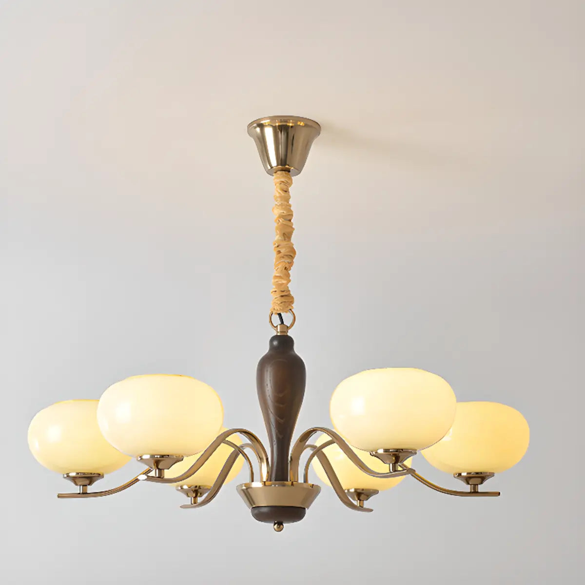 ZOWALA - Modern Beige Glass Bowl Walnut Chandelier