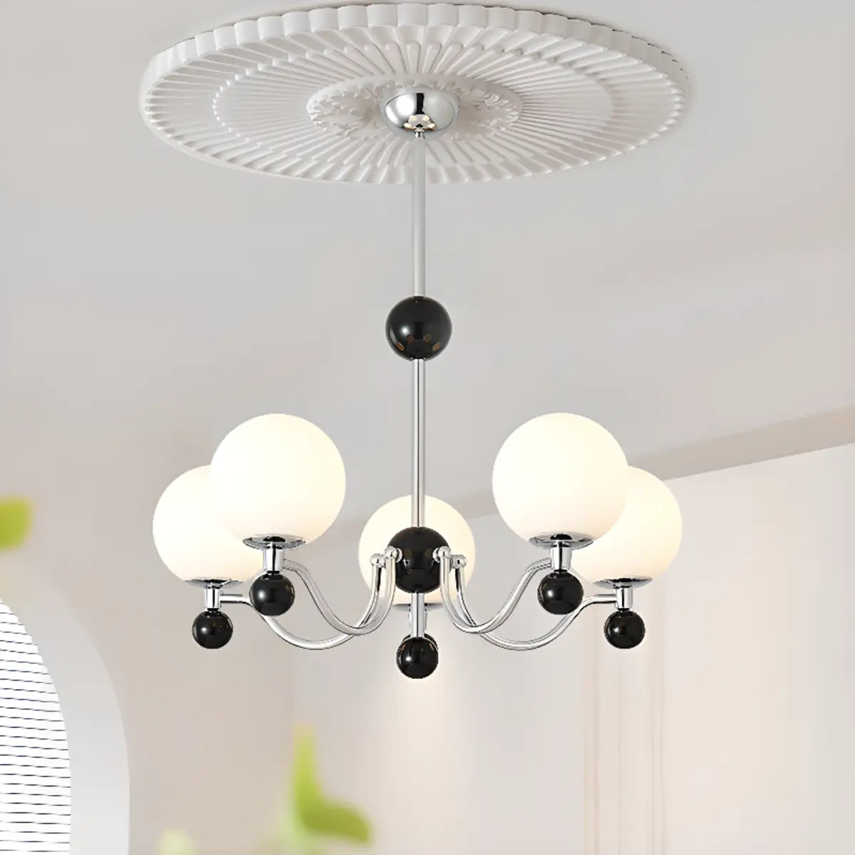 ZOWALA - Silver Black Arched Arm Globe Chandelier