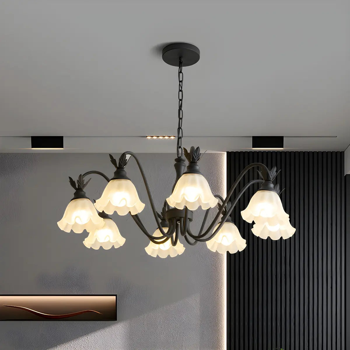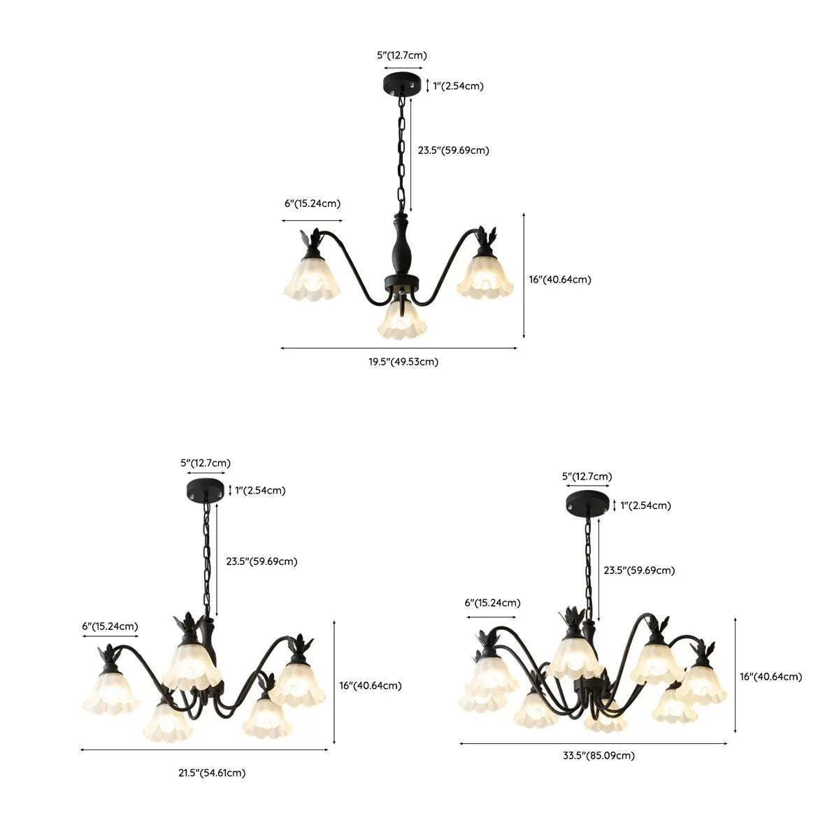 ZOWALA - Black Curve Arm Frosted Glass Flower Chandelier