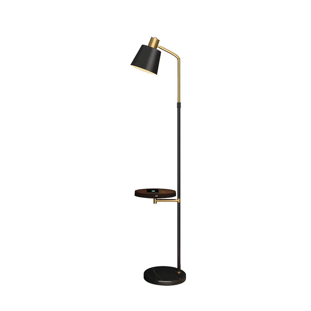 ZOWALA - Black-Gold Adjustable Cone Floor Lamp with Table