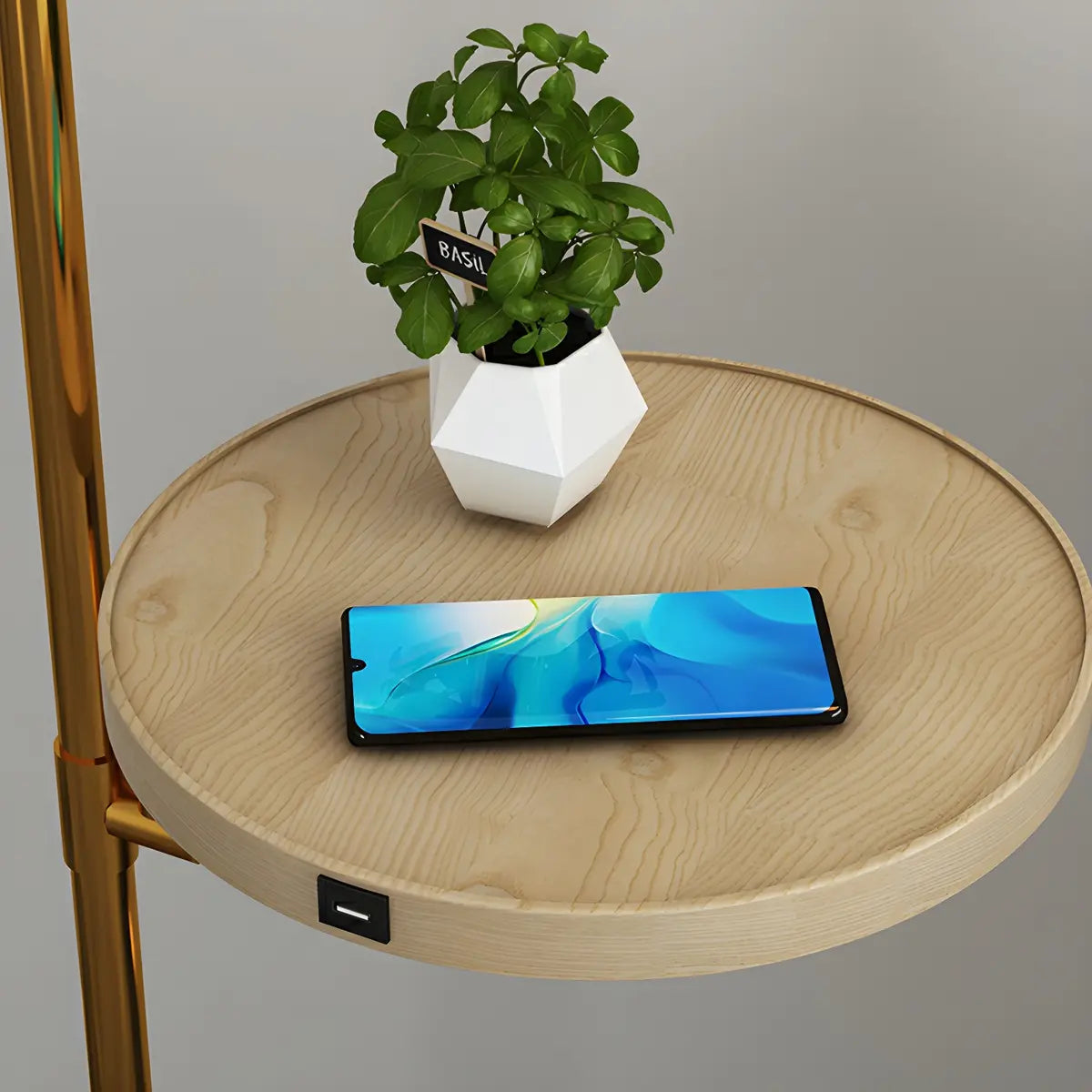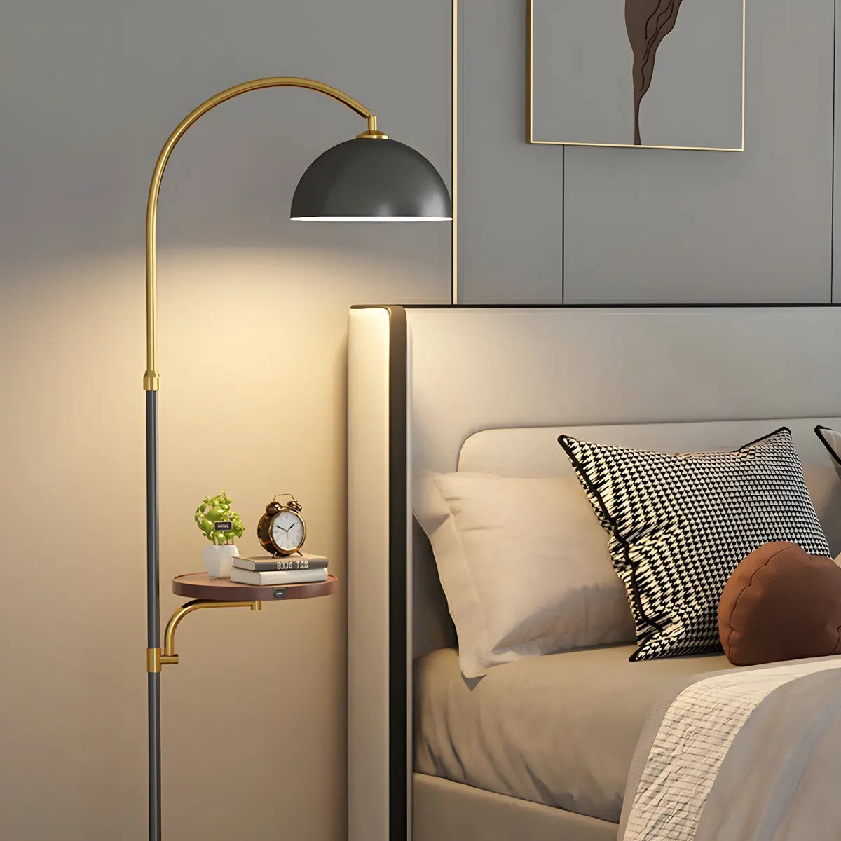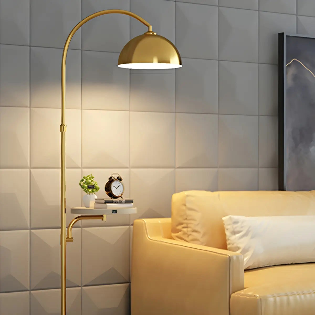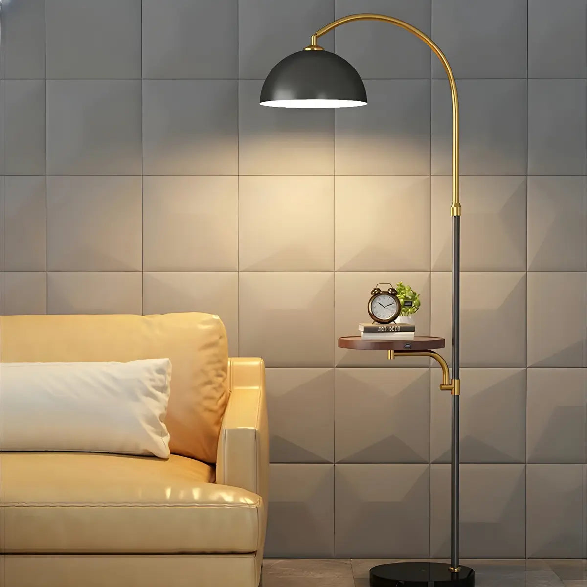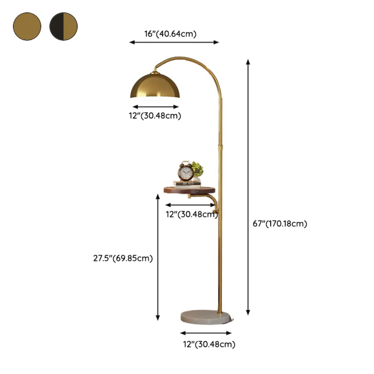 ZOWALA - Black Gold Adjustable Dome Floor Lamp with Table