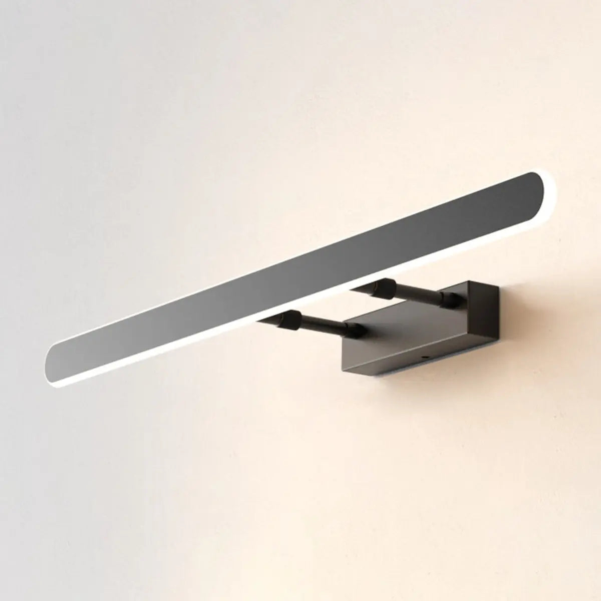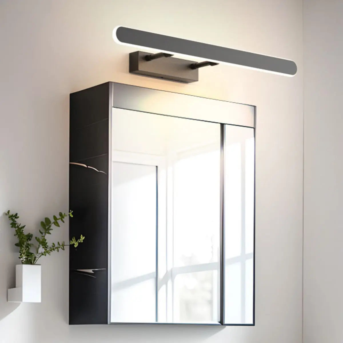 This modern LED bathroom fixture stands out with its simple and stylish design. The black metal housing combined with the rectangular shape brings an elegant visual effect, which is perfect for decorating modern homes. Designed for the bathroom, this fixture is perfectly installed above the mirror to provide bright lighting, helping you enjoy a clear and bright experience in the morning or evening.