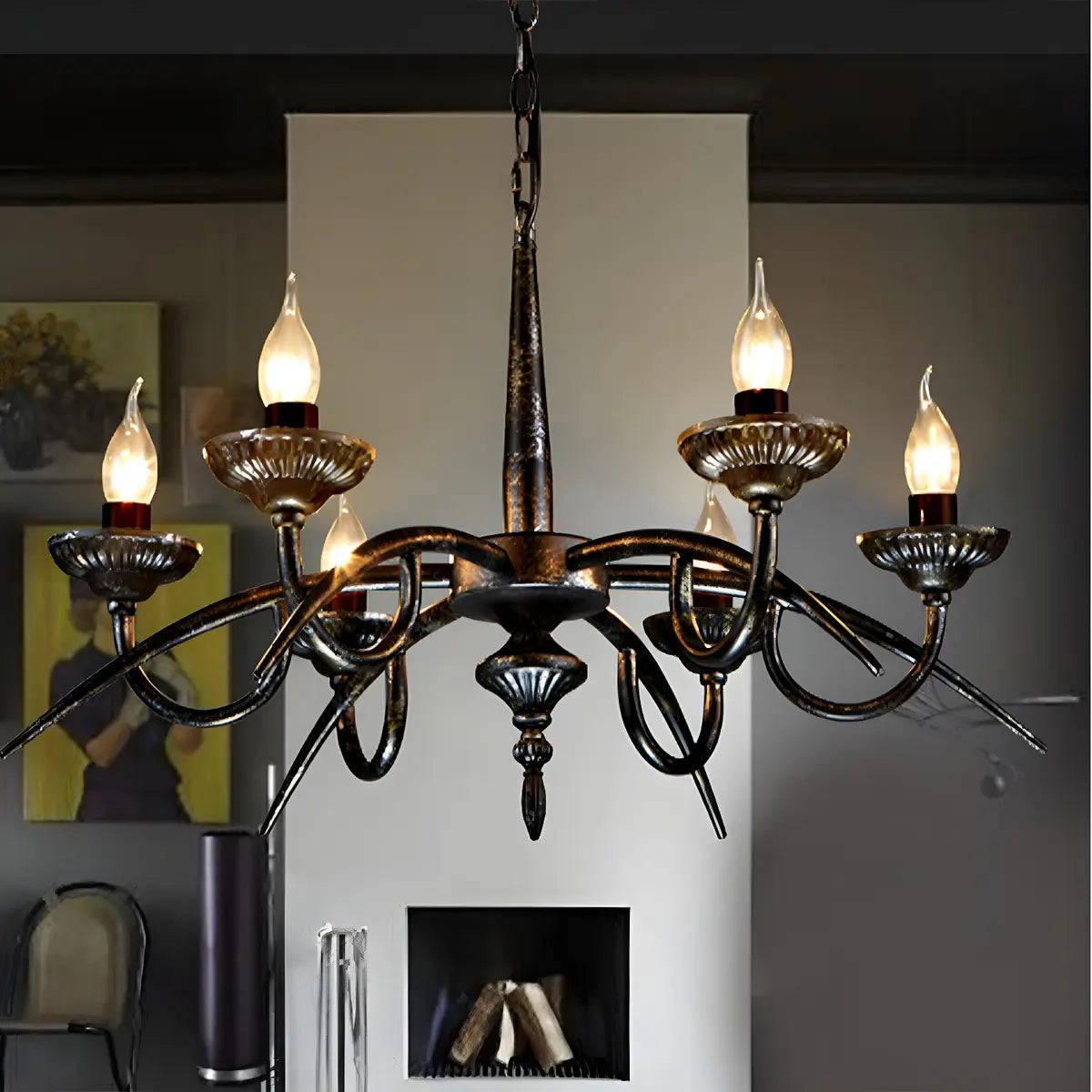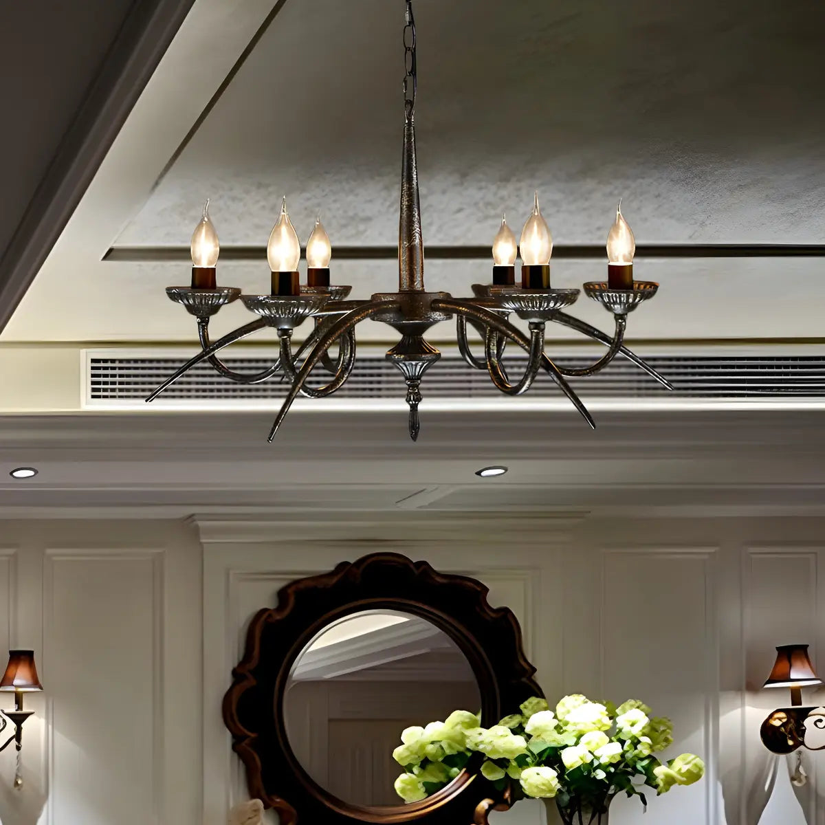 ZOWALA - Classic Black Rust Iron Candle Chandelier