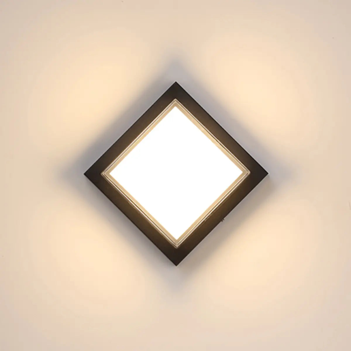This square ceiling lamp presents a simple and elegant black appearance, which contrasts with the white lampshade to form a unique visual effect and a very modern aesthetic. It is not only a light source in the space, but also a decorative artwork that can add a touch of elegance to any indoor and outdoor environment.
