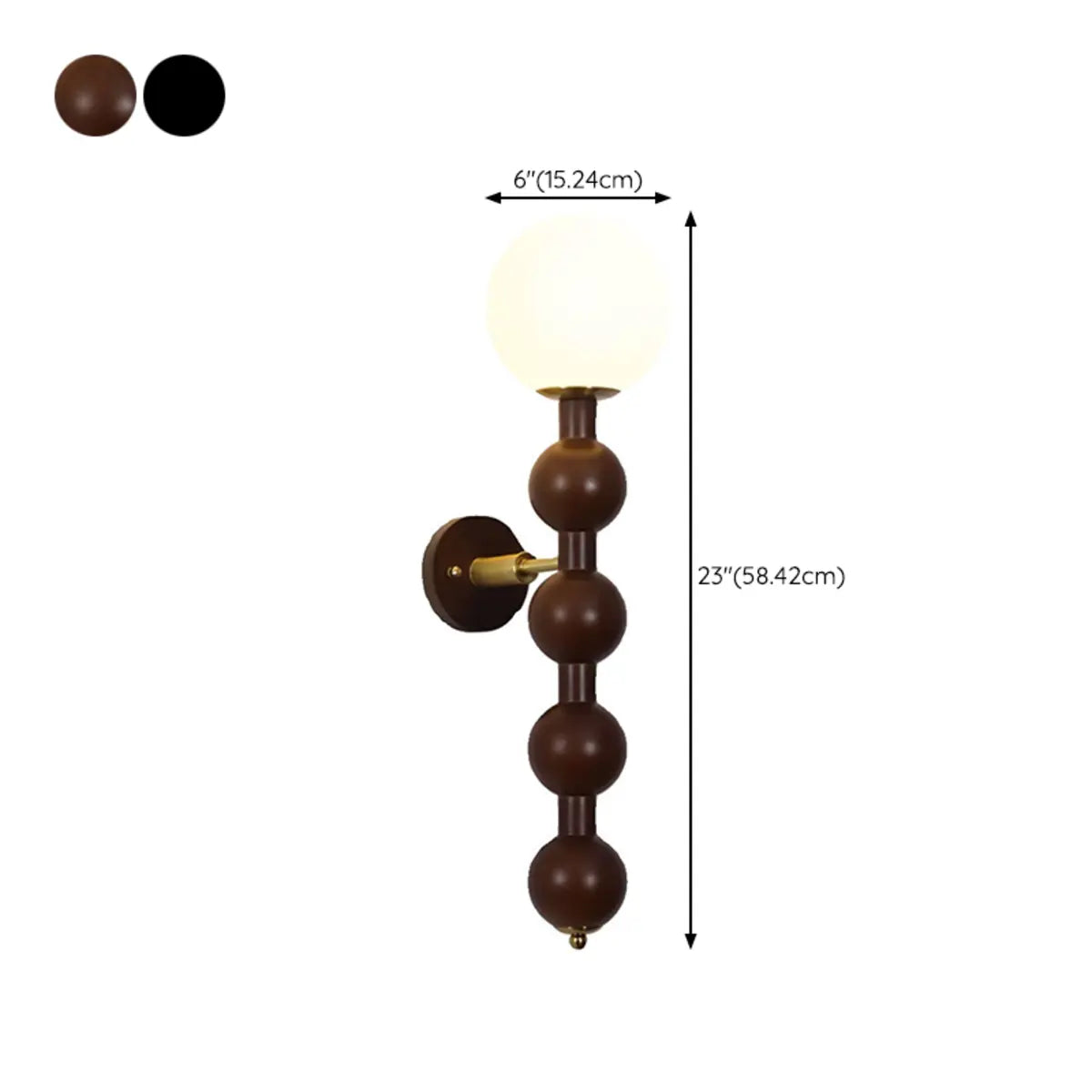 ZOWALA - Black Wood Beaded Globe White Glass Wall Sconce