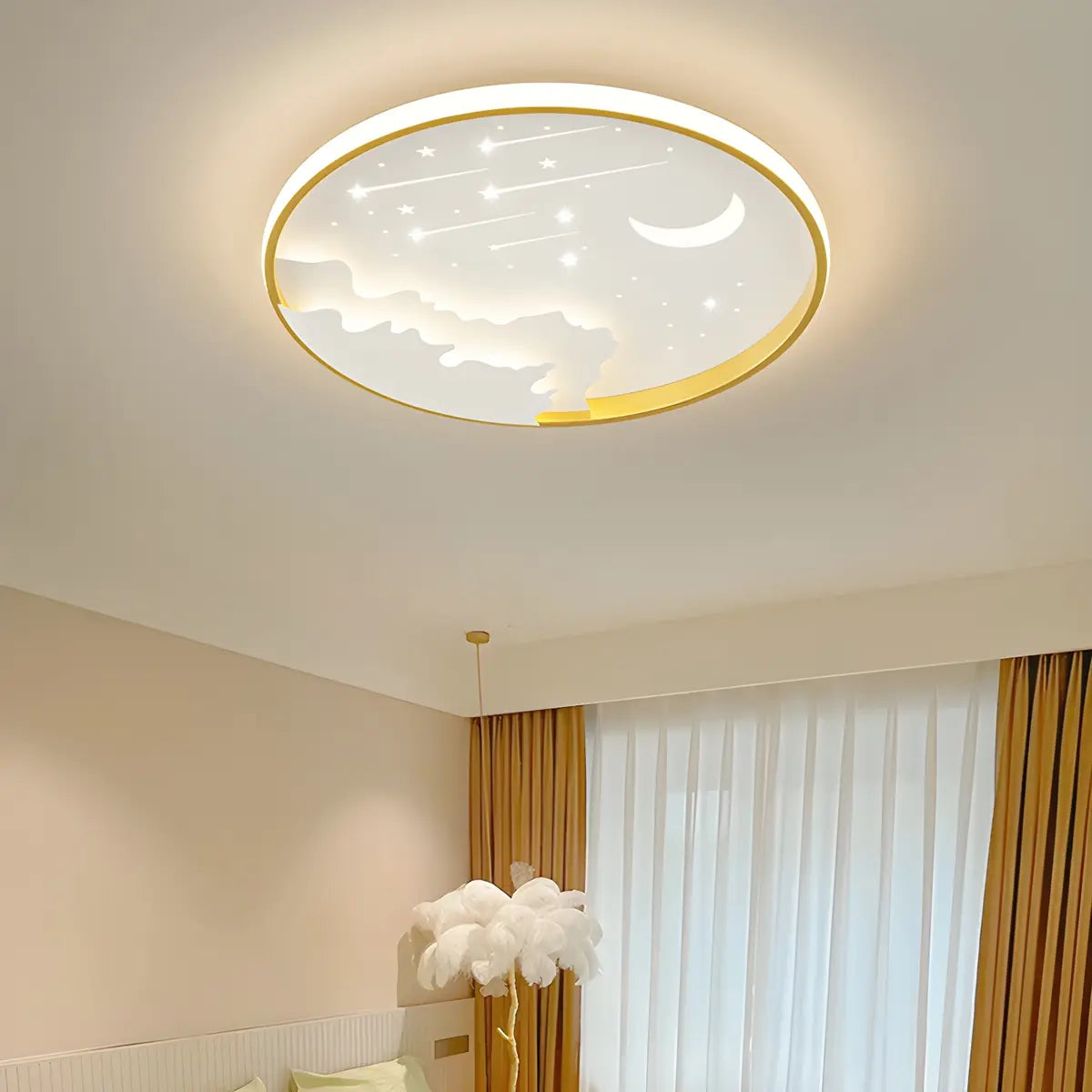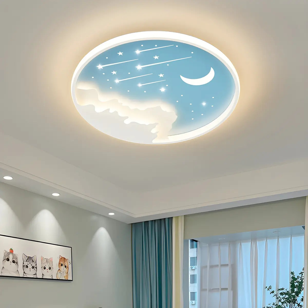 ZOWALA - Blue Starry Sky Round Bedroom Flush Mount Light