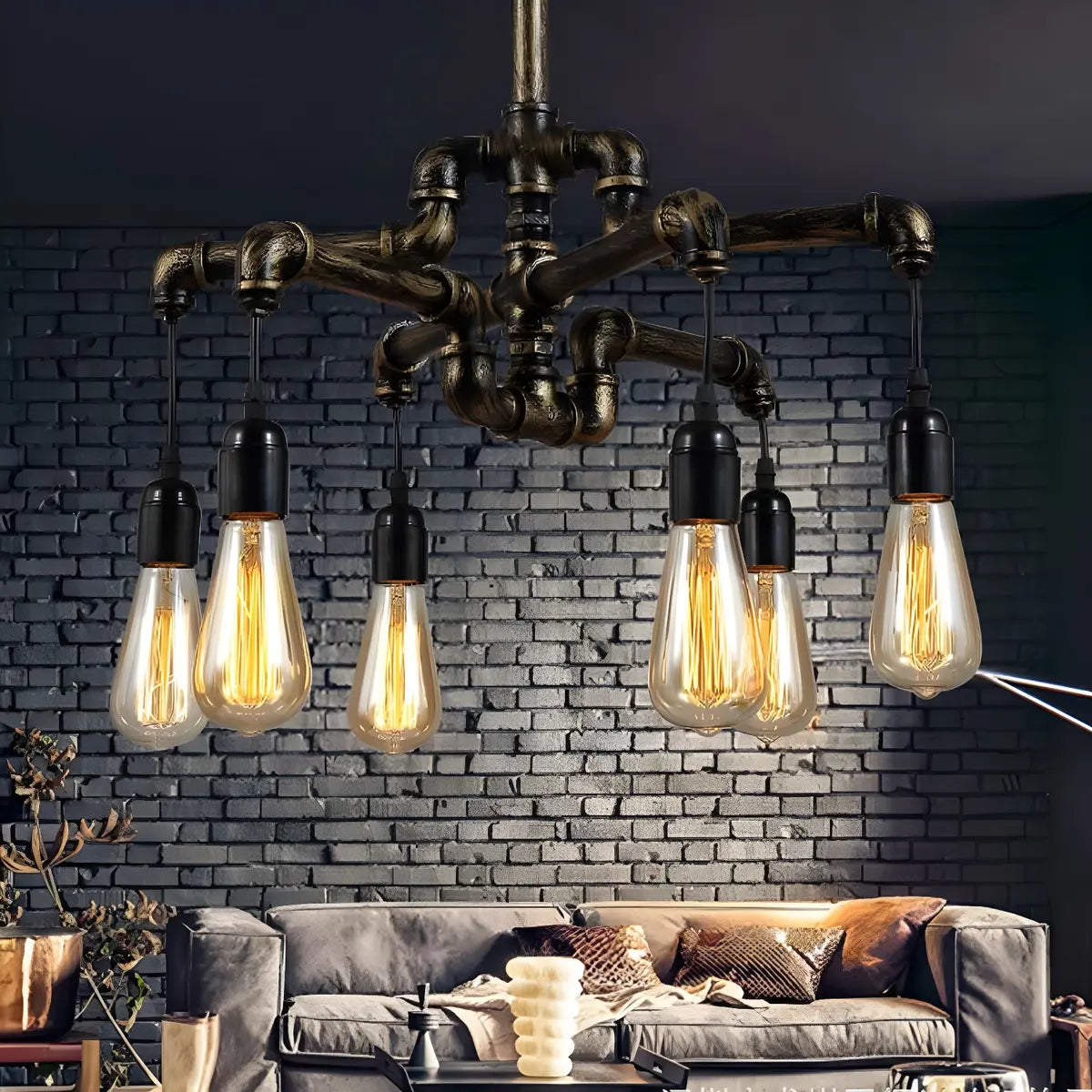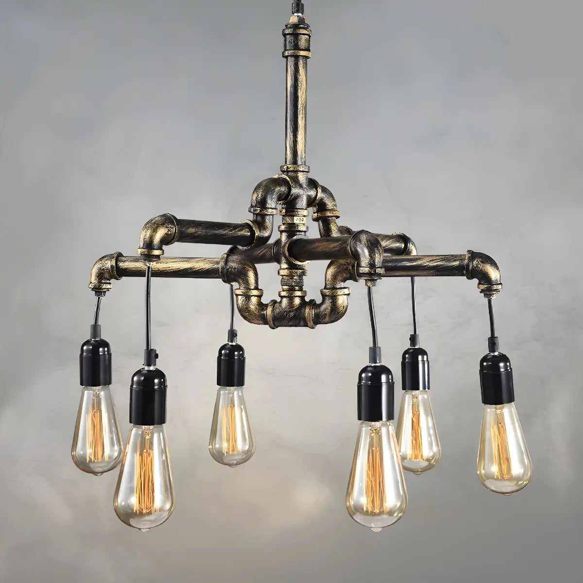 ZOWALA - Industrial Bronze Pipe Edison Bulb Chandelier