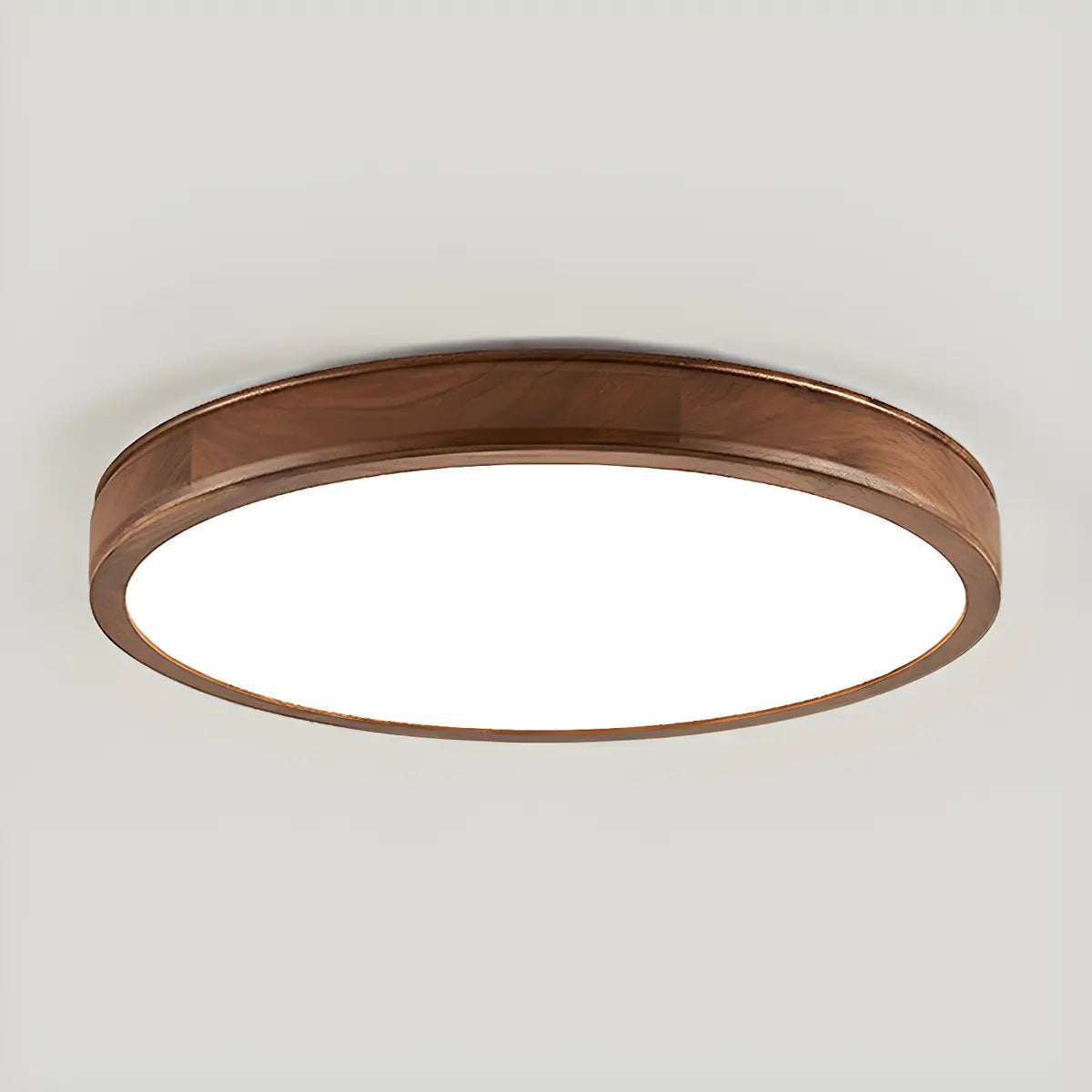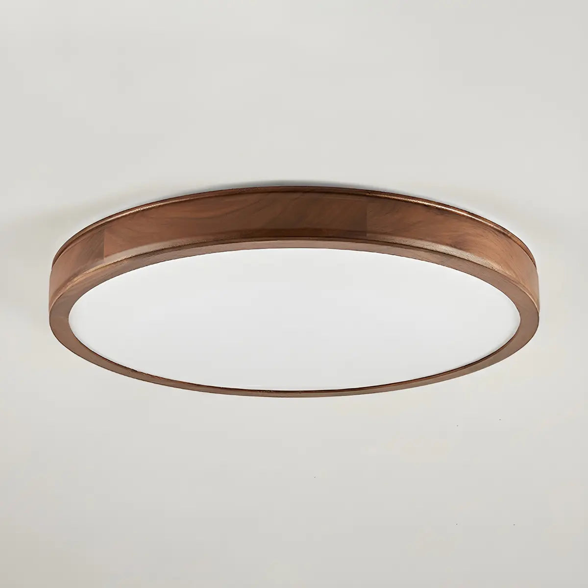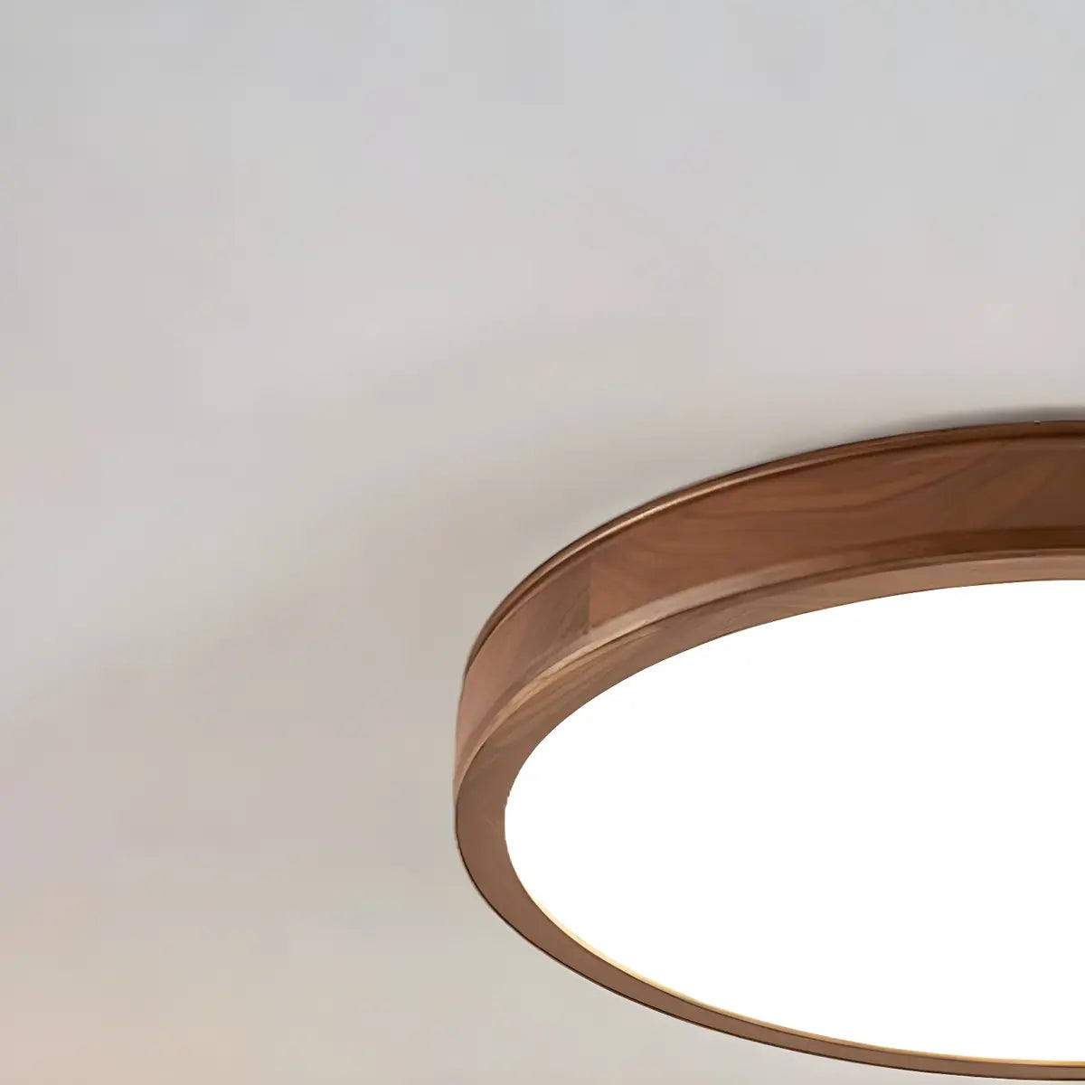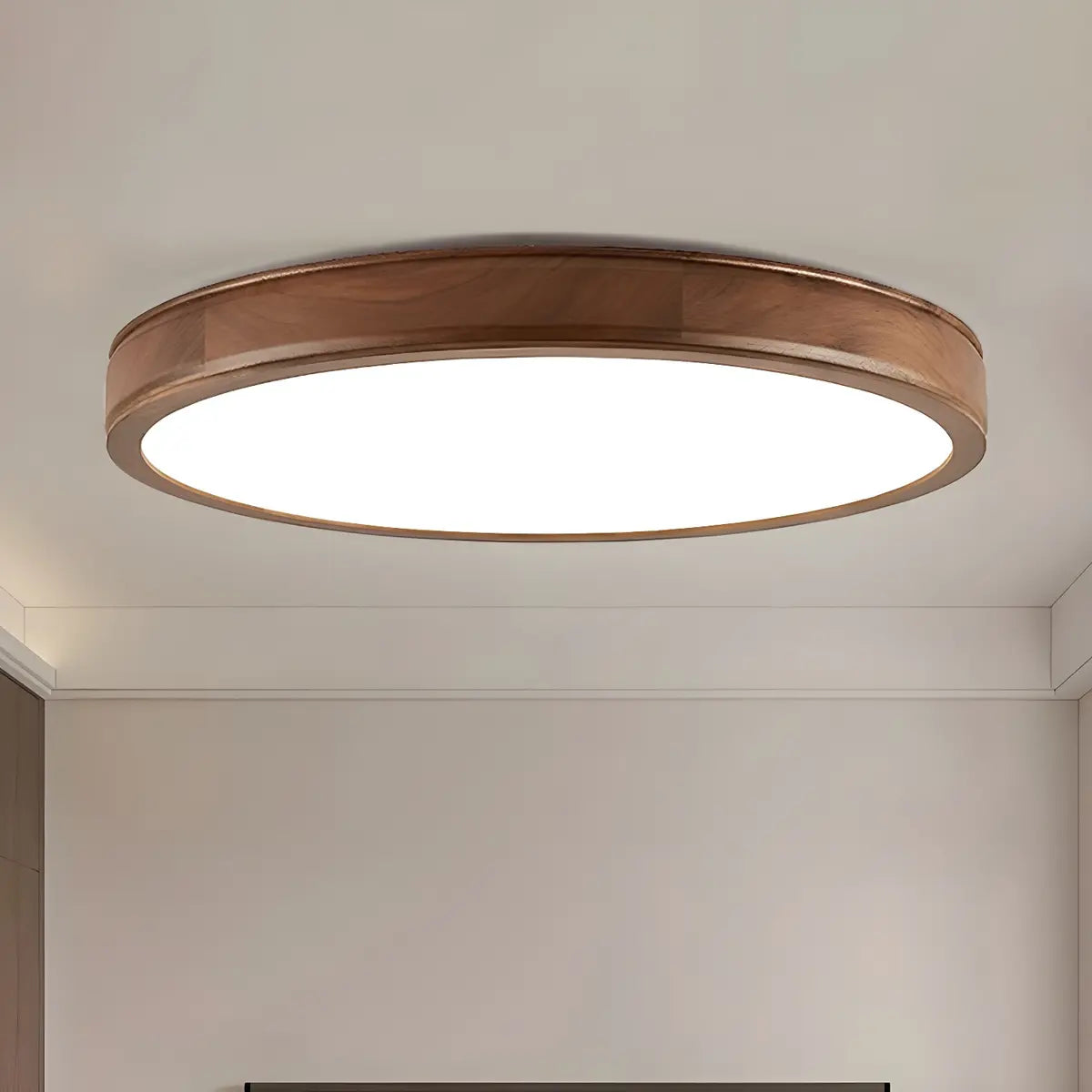 This modern round ceiling lamp is like a pearl hanging from the ceiling, emitting a warm and soft light, blending seamlessly into the space. The lamp is made of natural brown wood material, which forms a sharp contrast with the white acrylic lampshade, highlighting the perfect combination of nature and modern art.