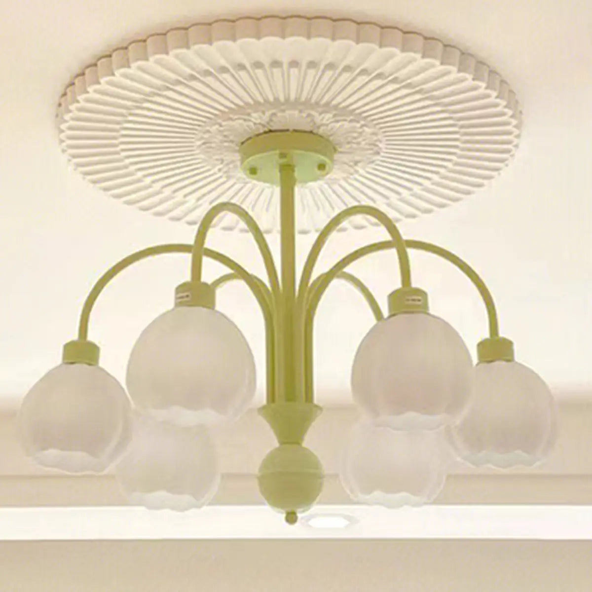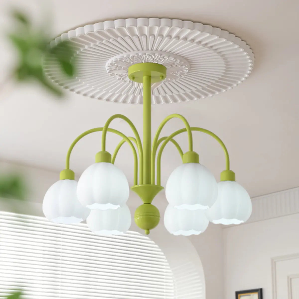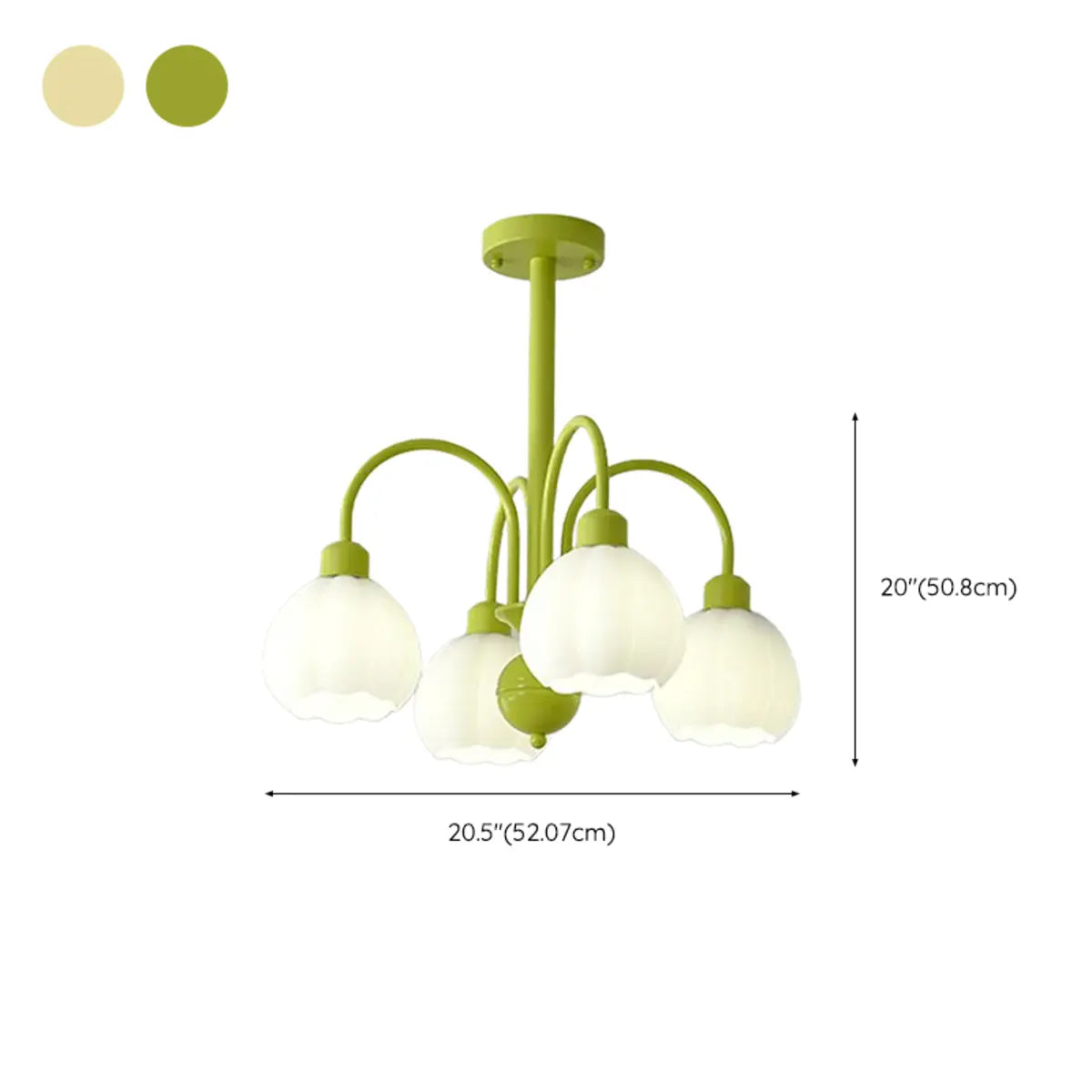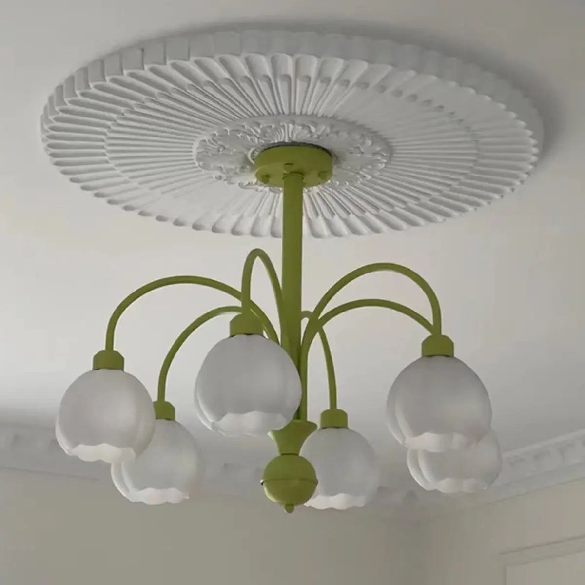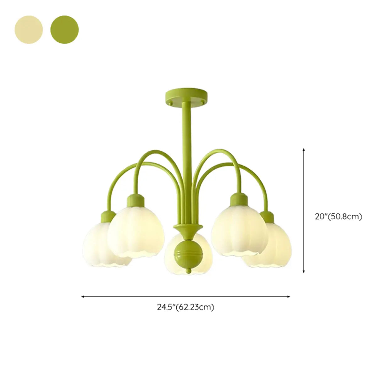 ZOWALA - Modern Green Down White Flower 6-Light Chandelier