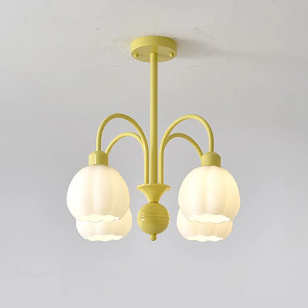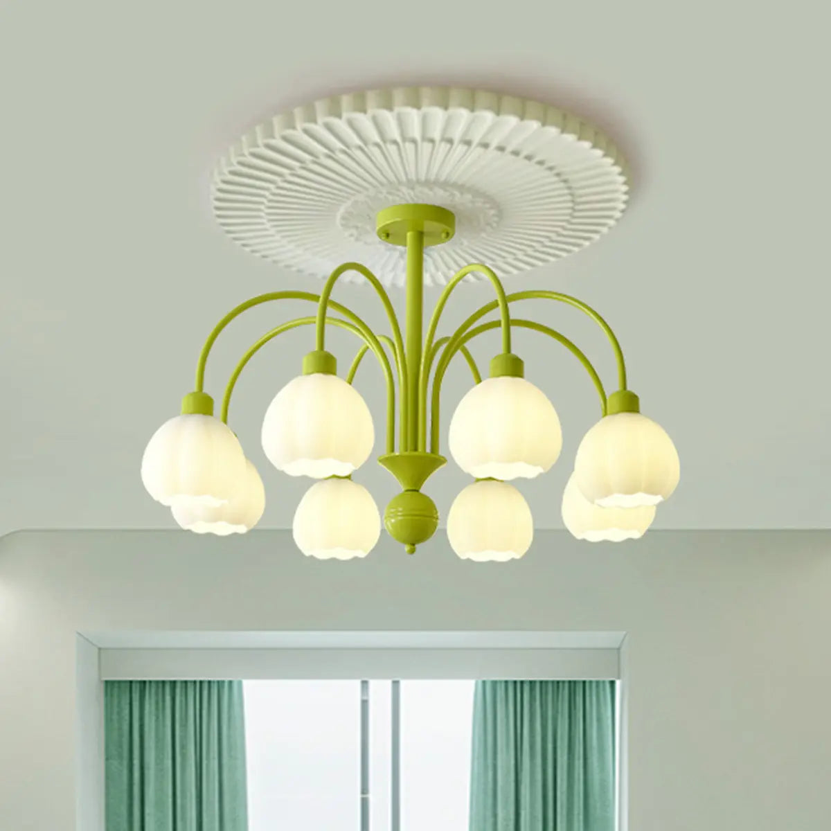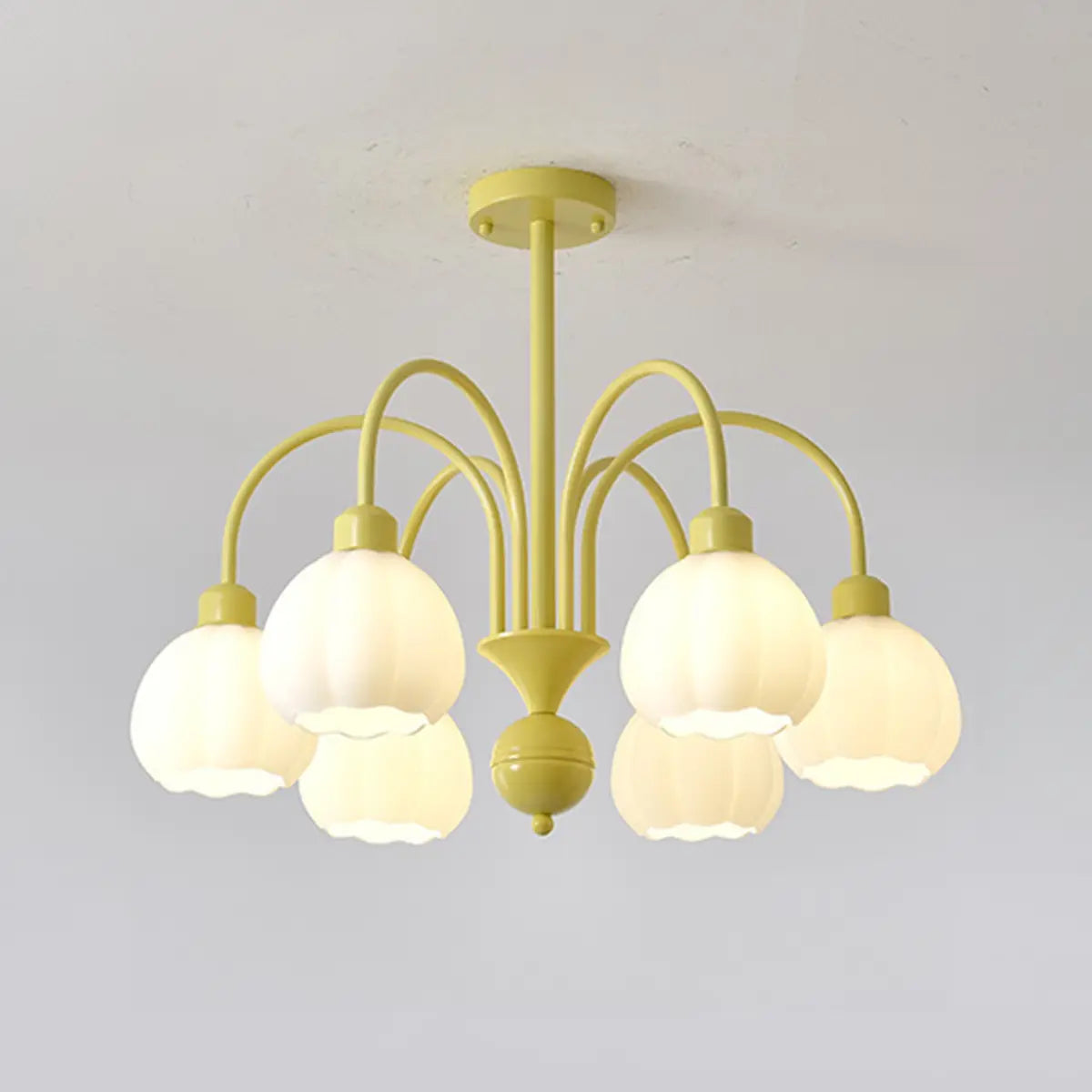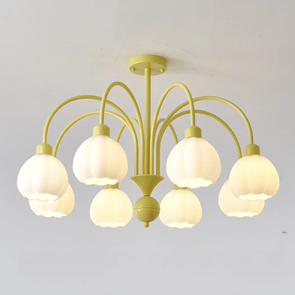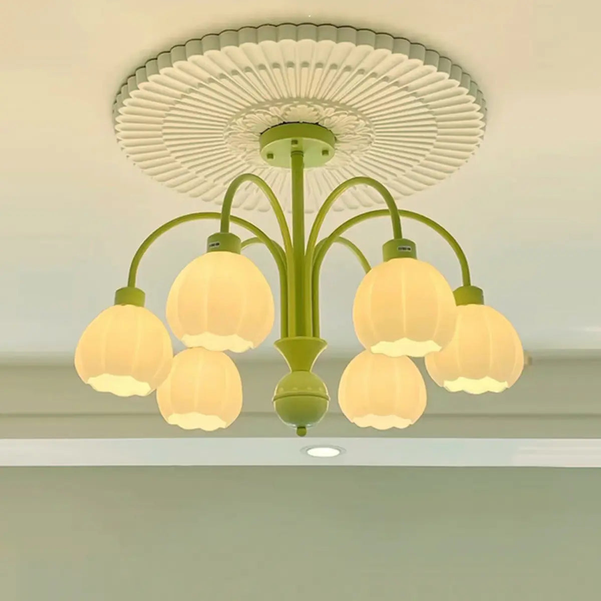 ZOWALA - Modern Green Down White Flower 6-Light Chandelier