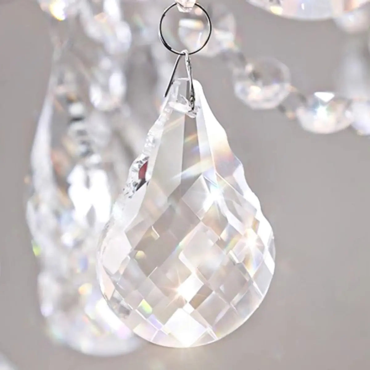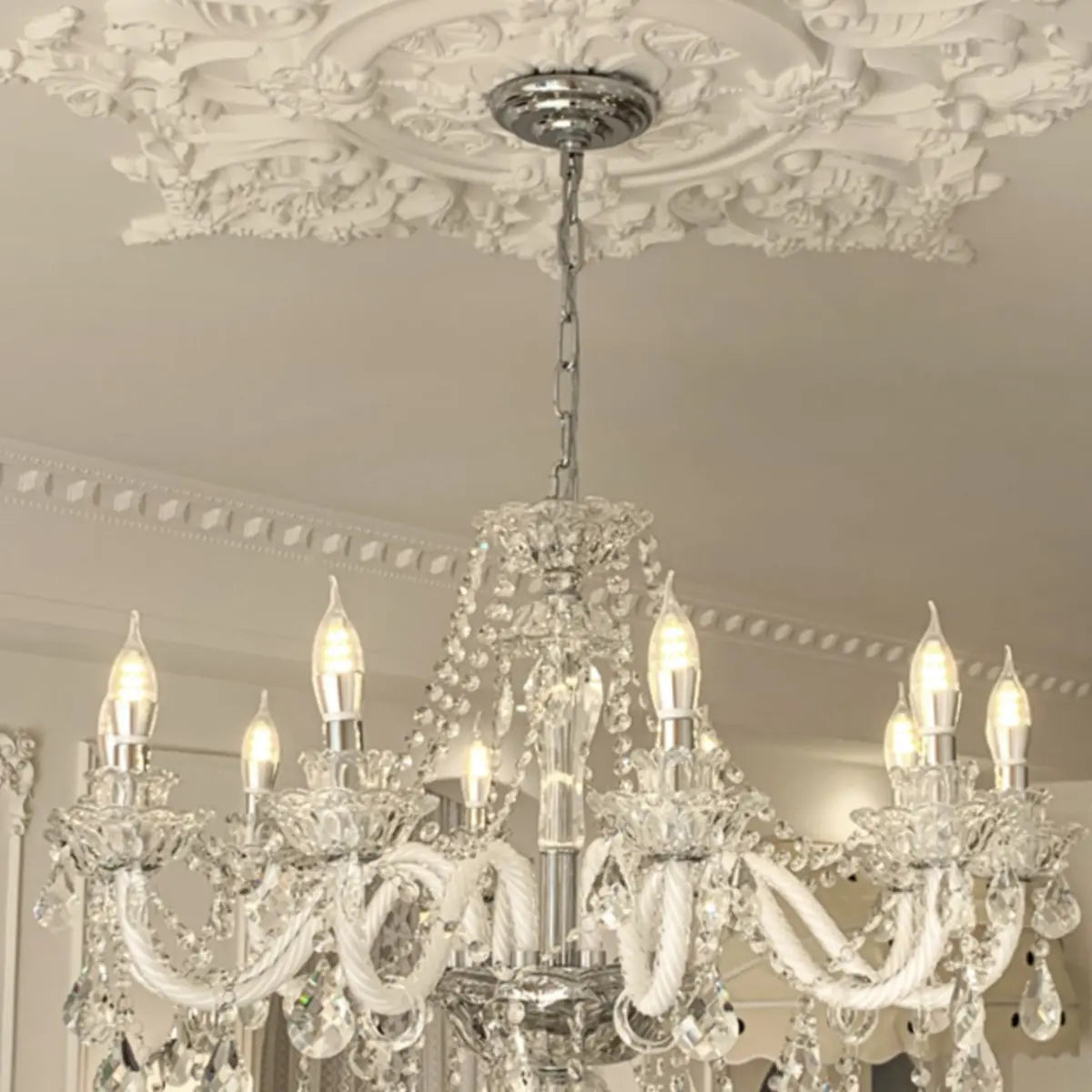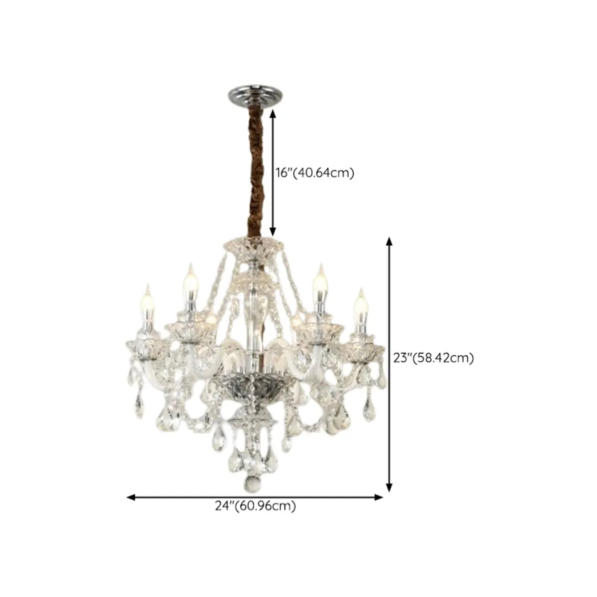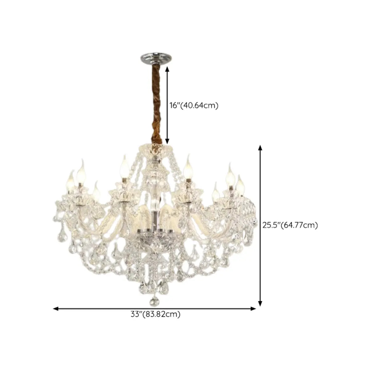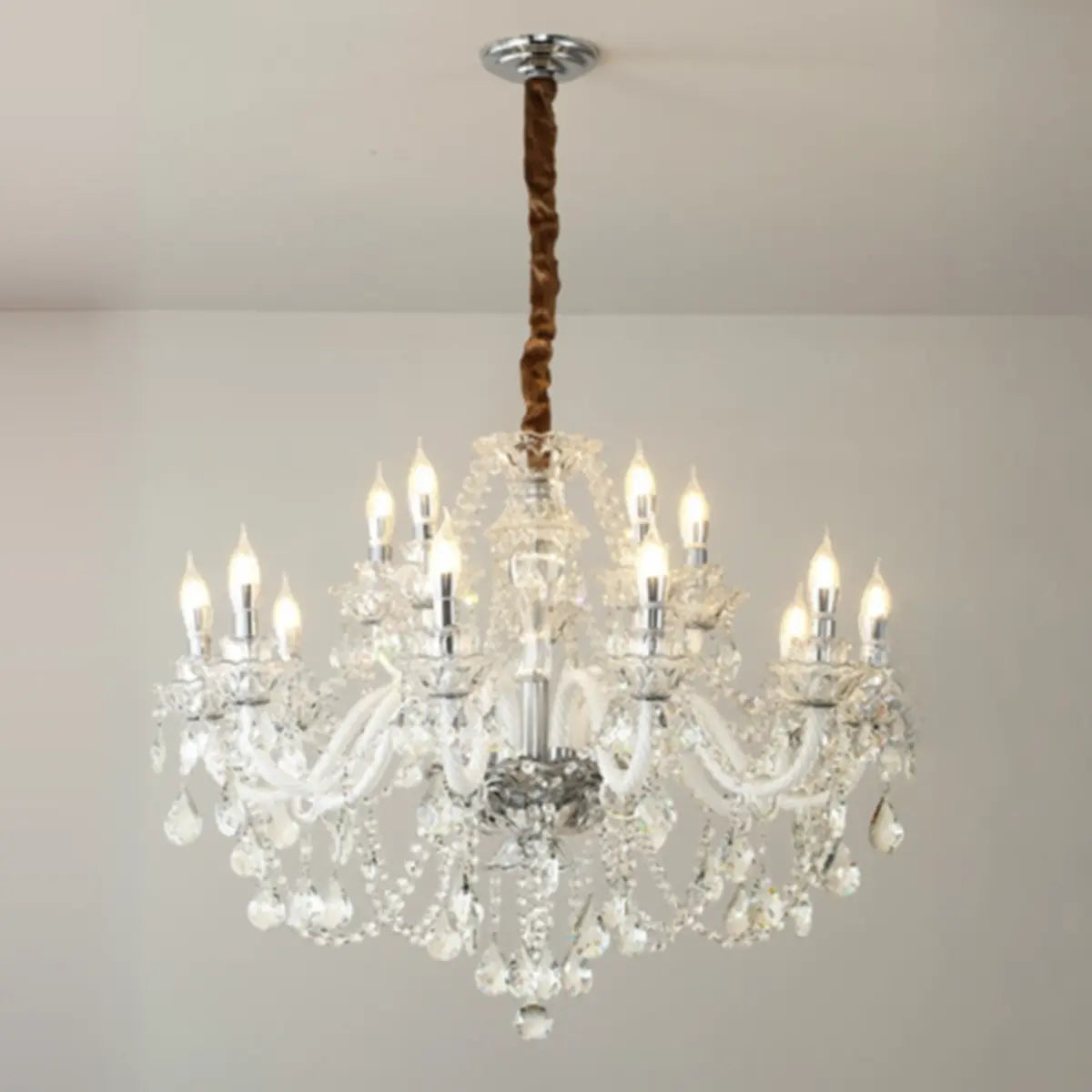 This classic crystal chandelier features a geometric structure and classic candlestick design, perfectly combining modern and vintage styles, becoming the highlight of any luxurious space. The dazzling crystals softly scatter light around the room, creating an elegant and warm atmosphere.