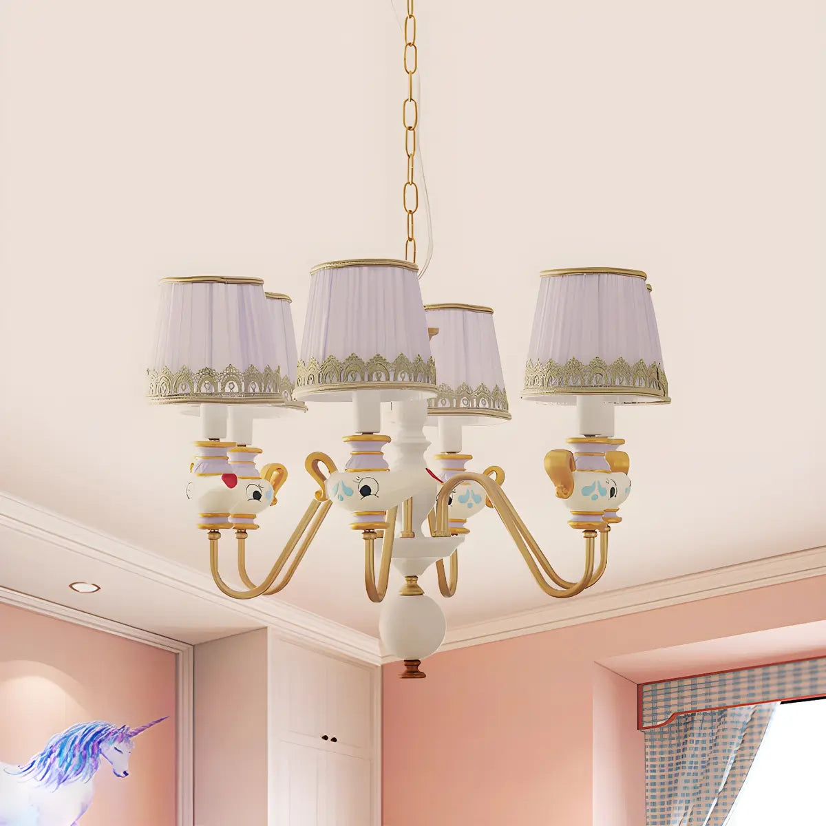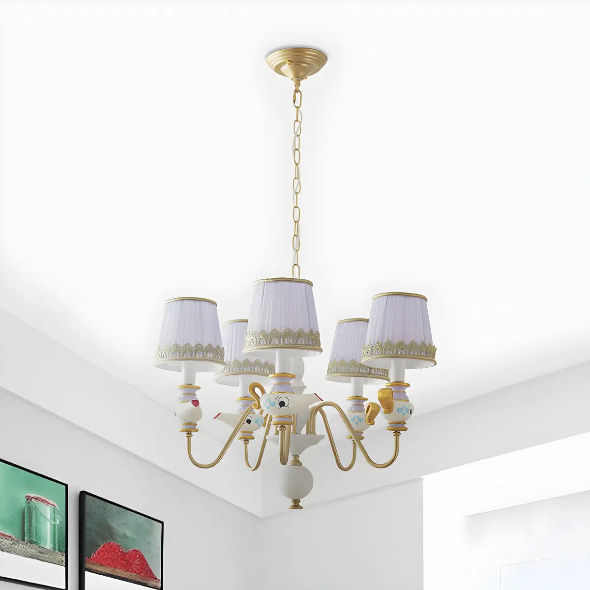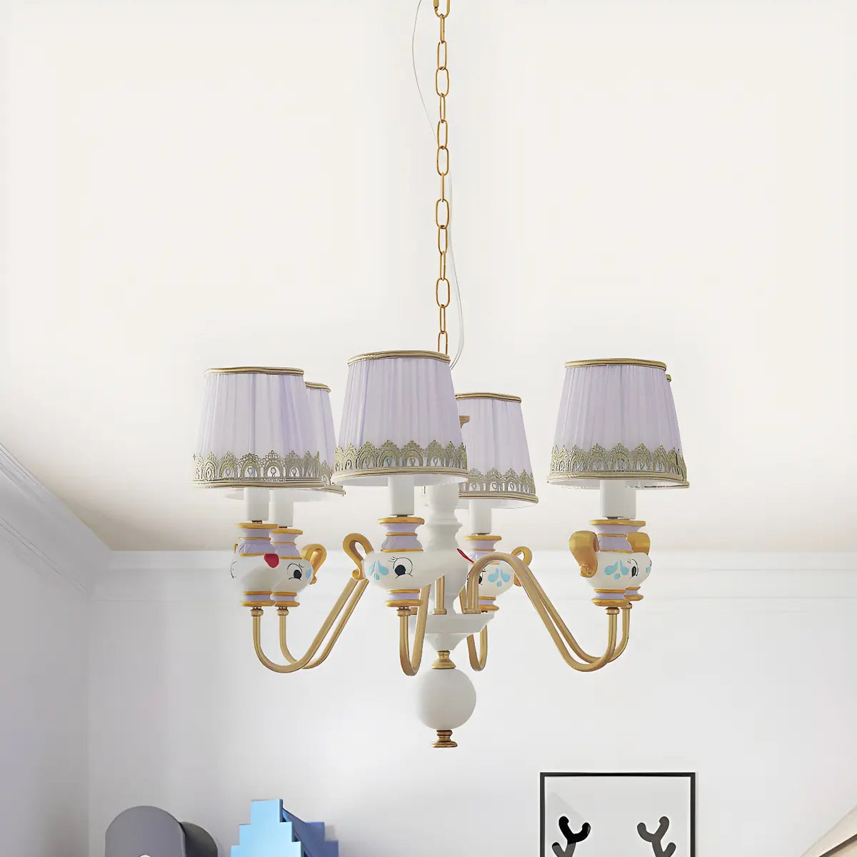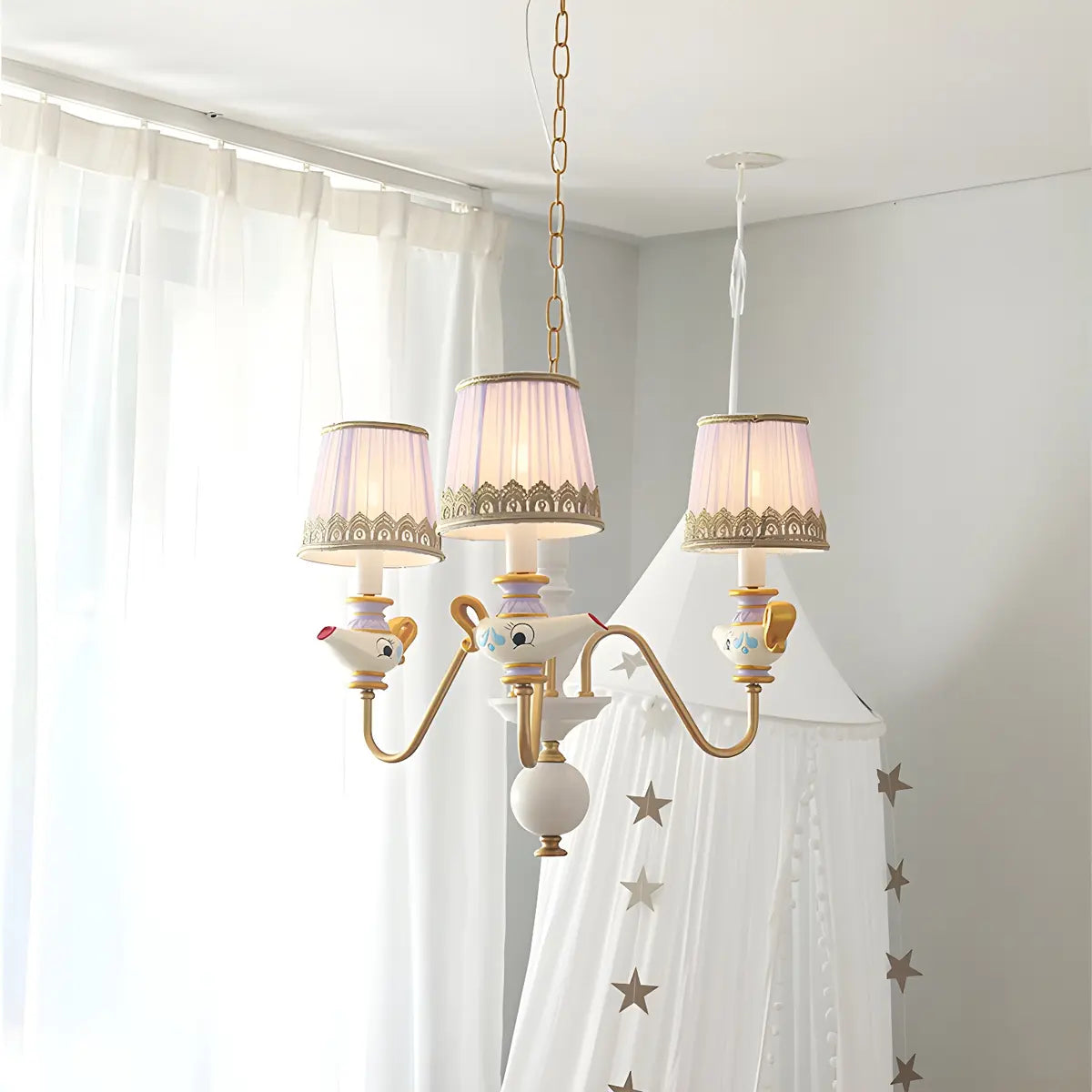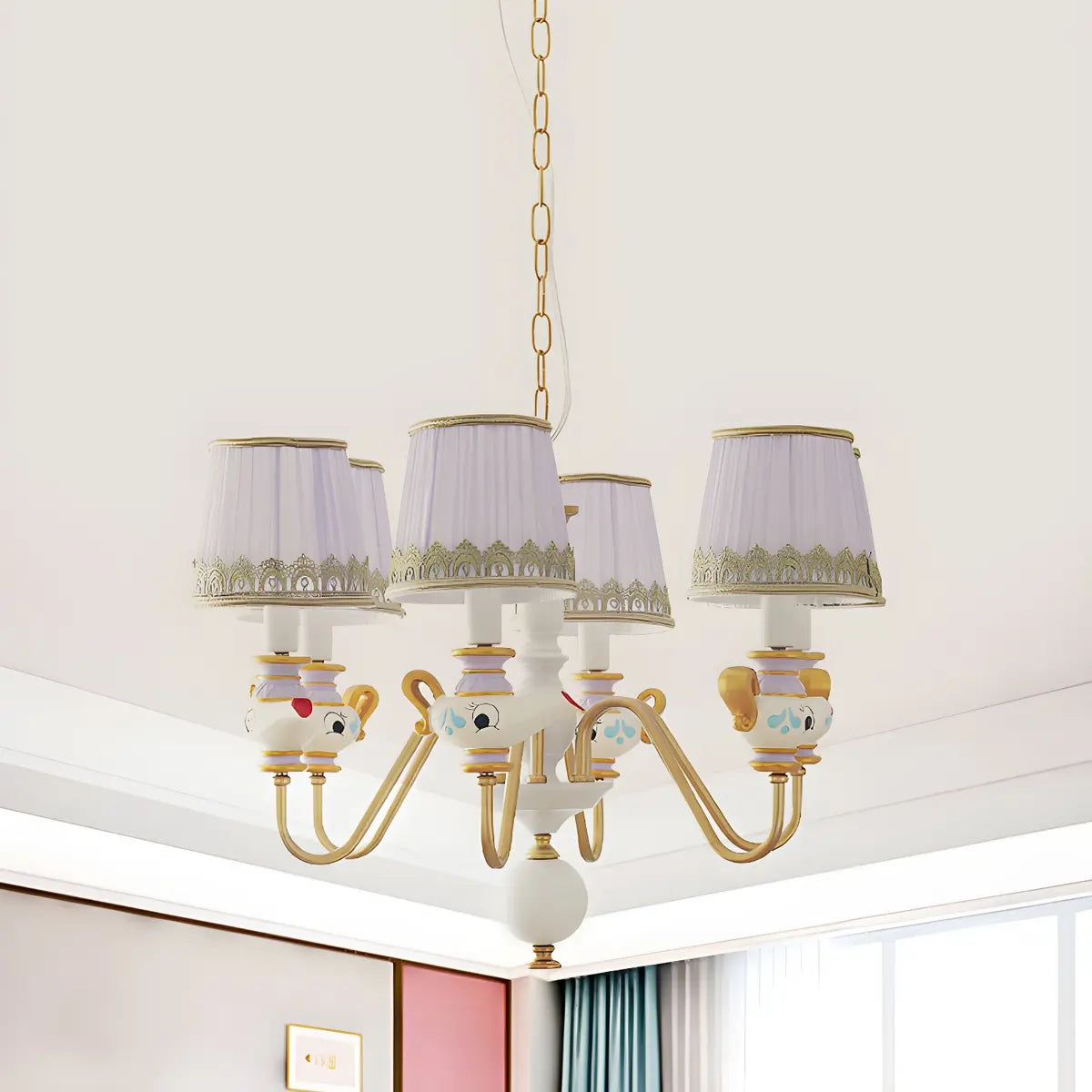 ZOWALA - Aladdin Teapot Elegant Purple Fabric Chandelier