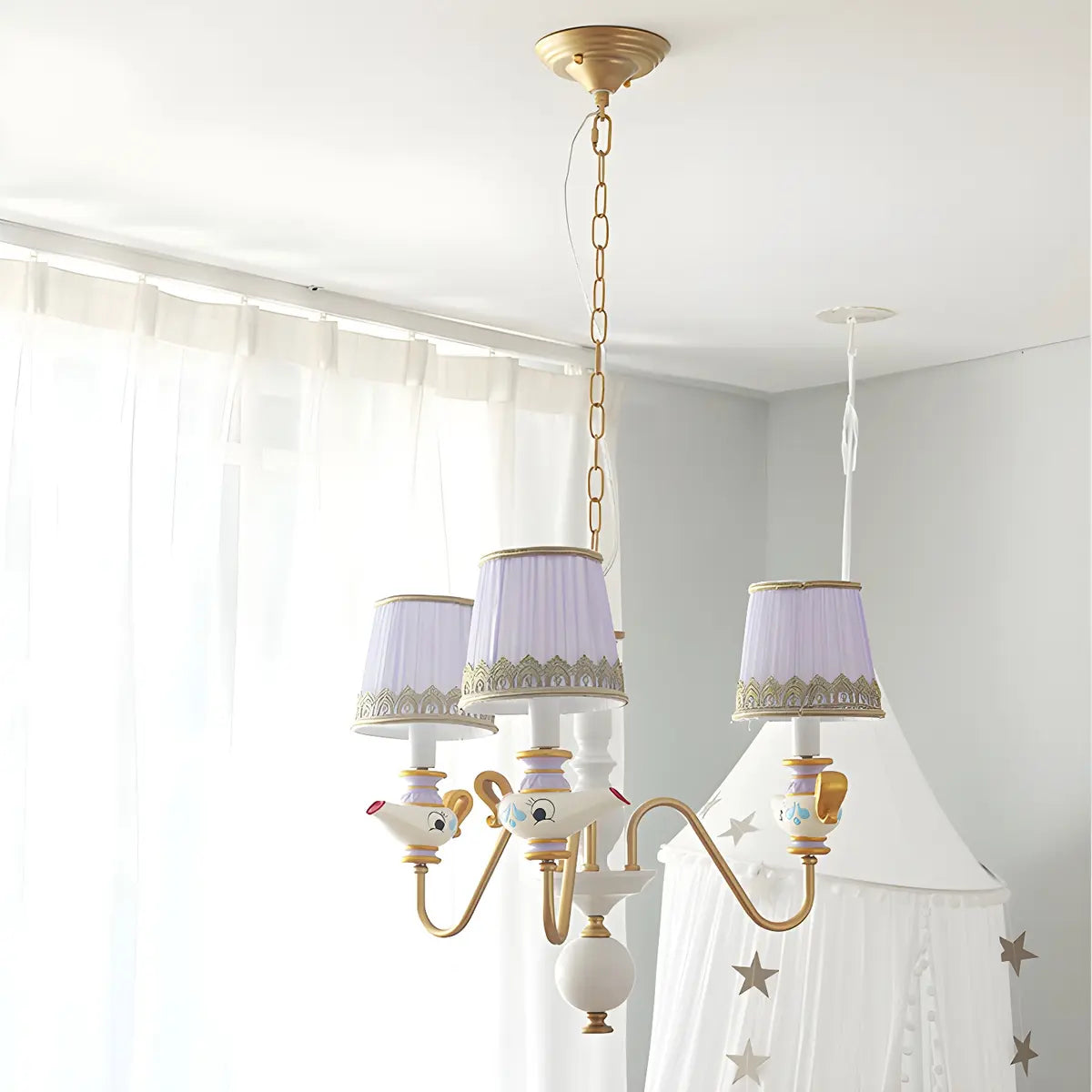 This ZOWALA children's room chandelier is made of high-quality purple fabric, bringing a warm and dreamy atmosphere, which perfectly fits the decorative style of the children's space.