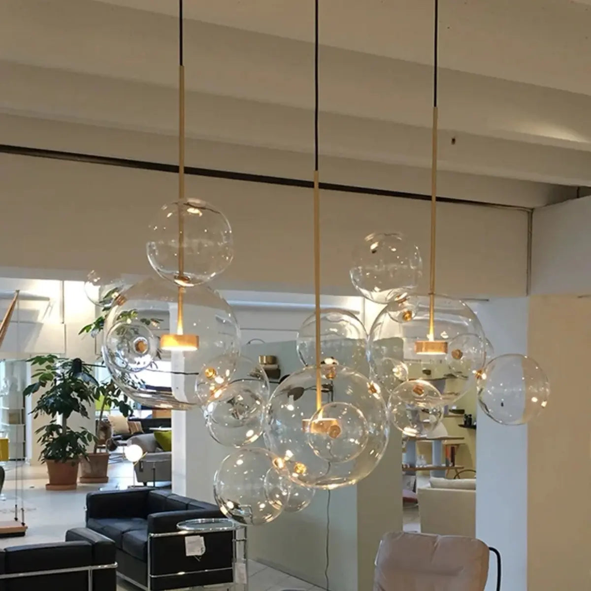 This chandelier uses a transparent glass ball as a lampshade, which looks like a suspended bubble, emitting soft light, adding a touch of fantasy and modernity to your kitchen. The perfect combination of golden metal and glass reflects the elegance and simplicity of modern style and is an excellent aesthetic embellishment in the space.