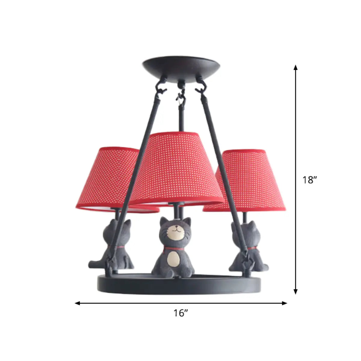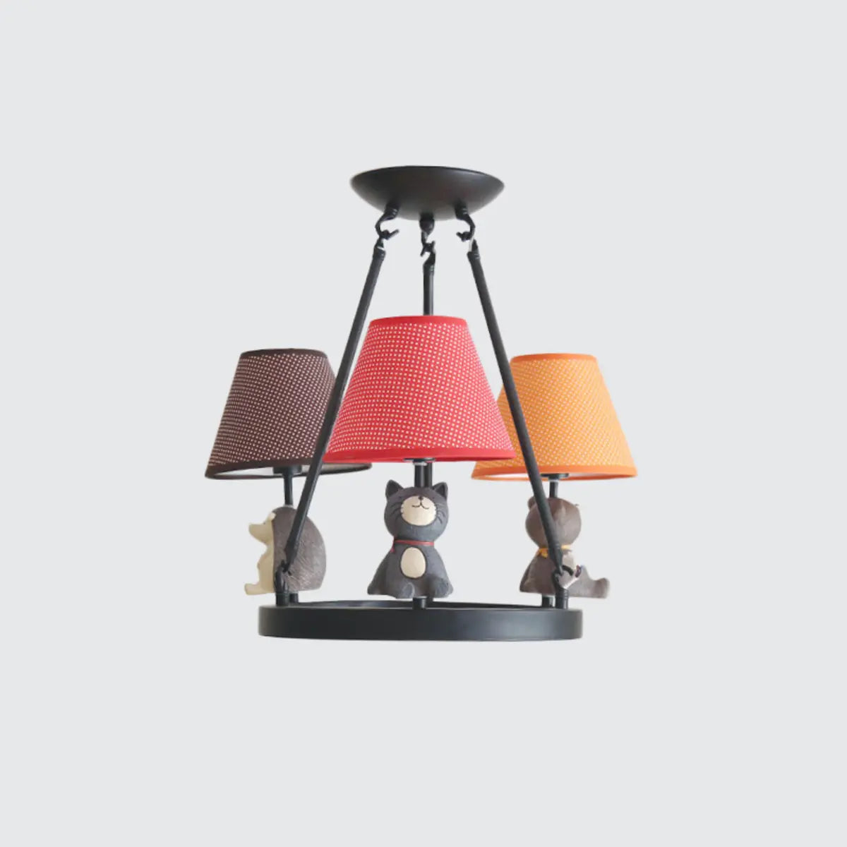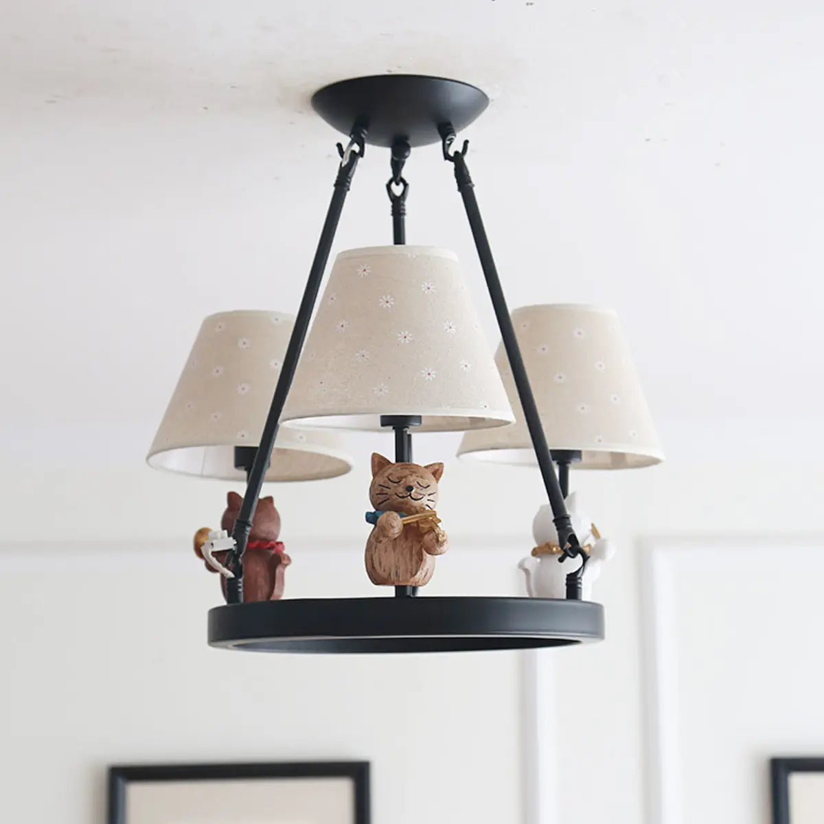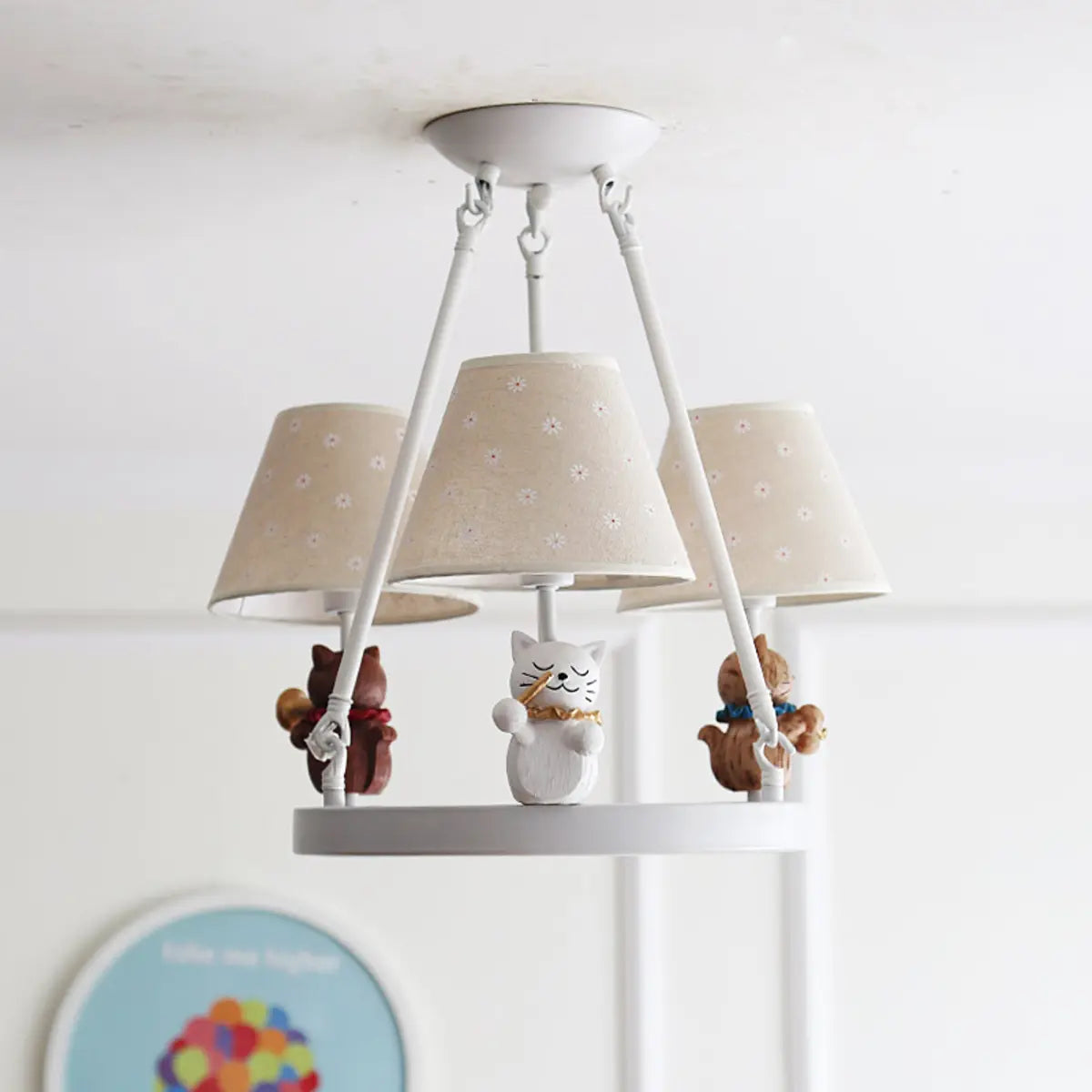 ZOWALA - Cat Fabric White Round 3-Light Kids Chandelier