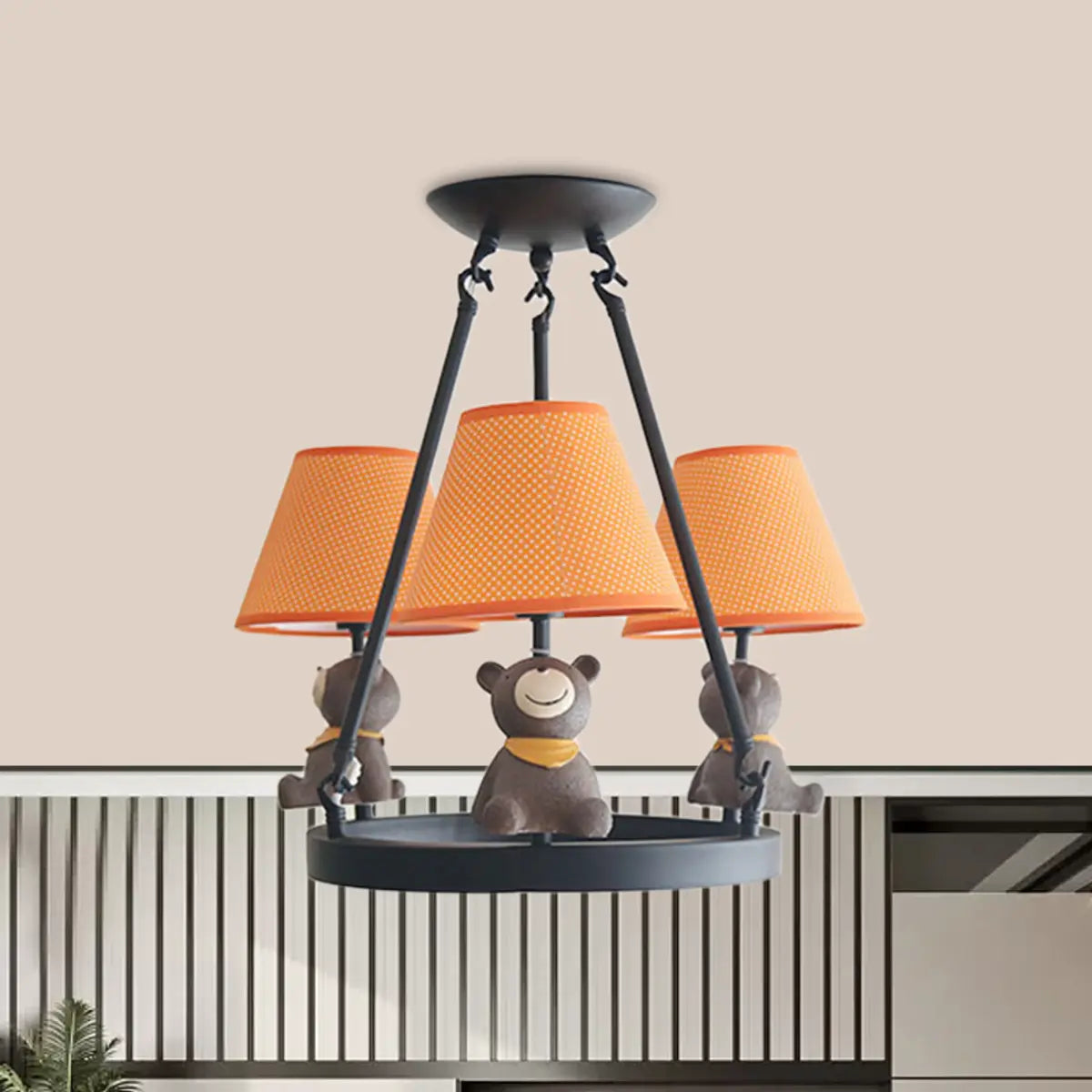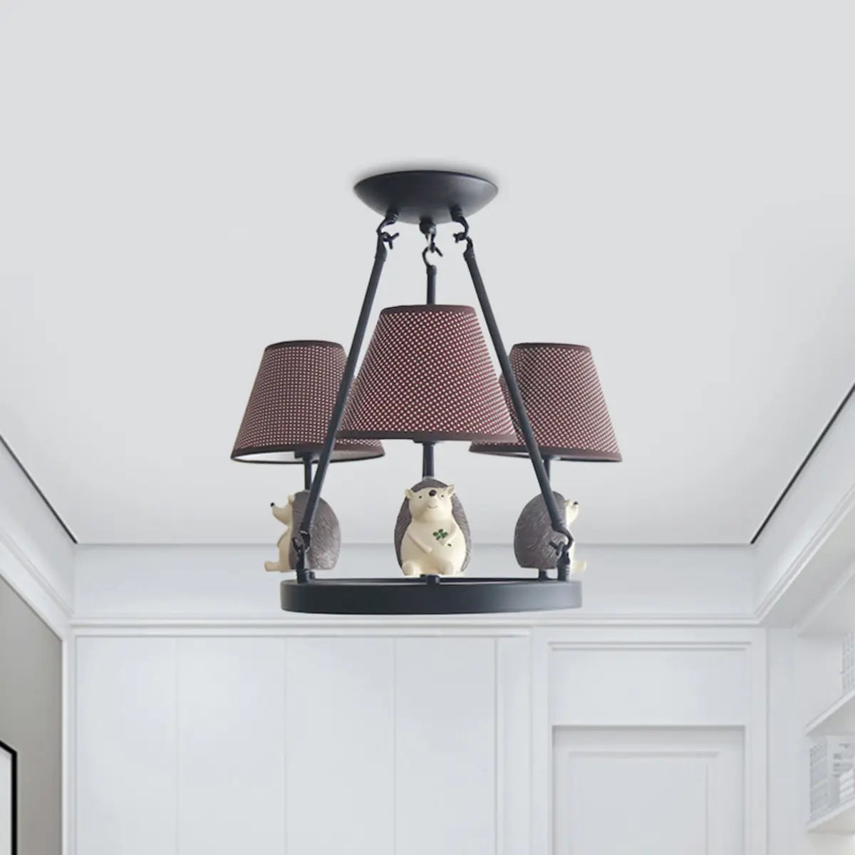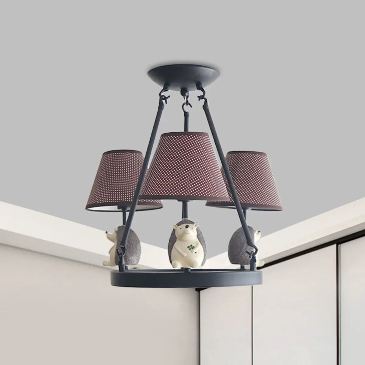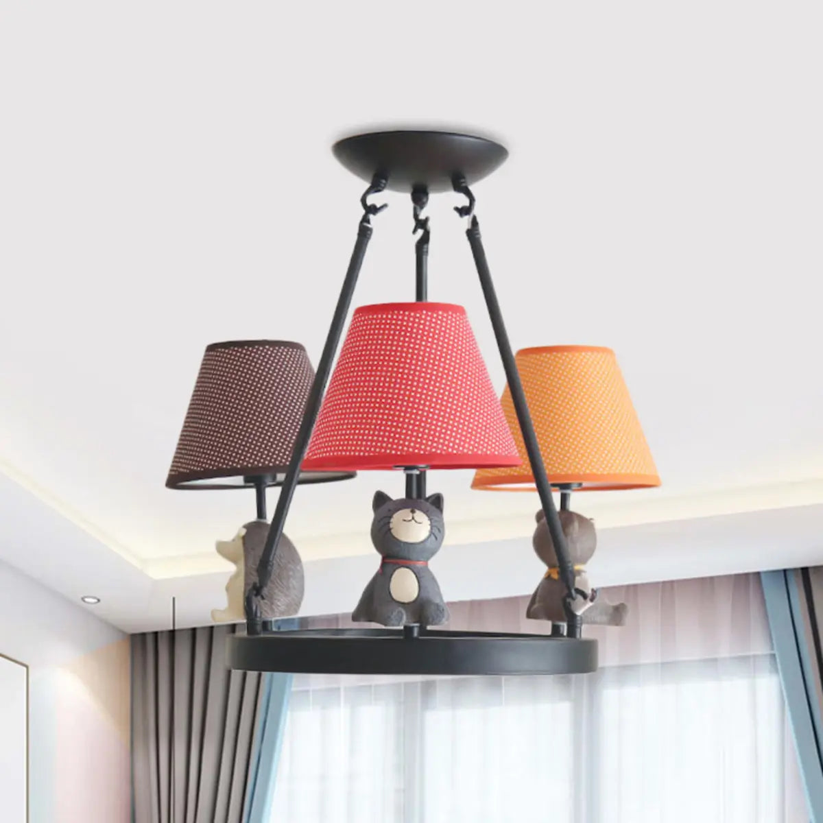 ZOWALA - Cat Fabric White Round 3-Light Kids Chandelier