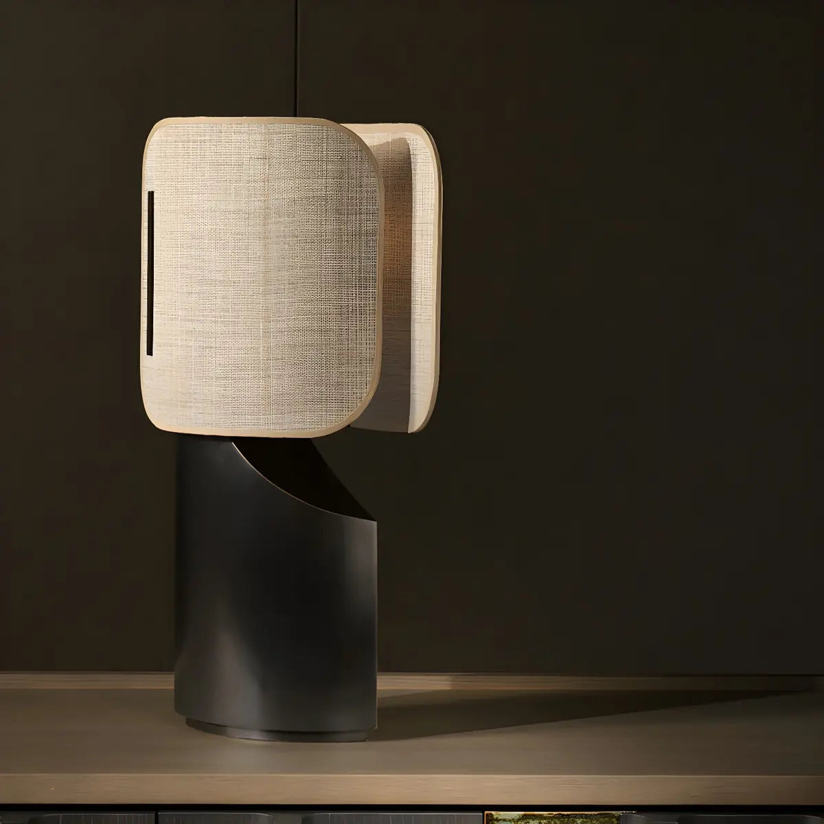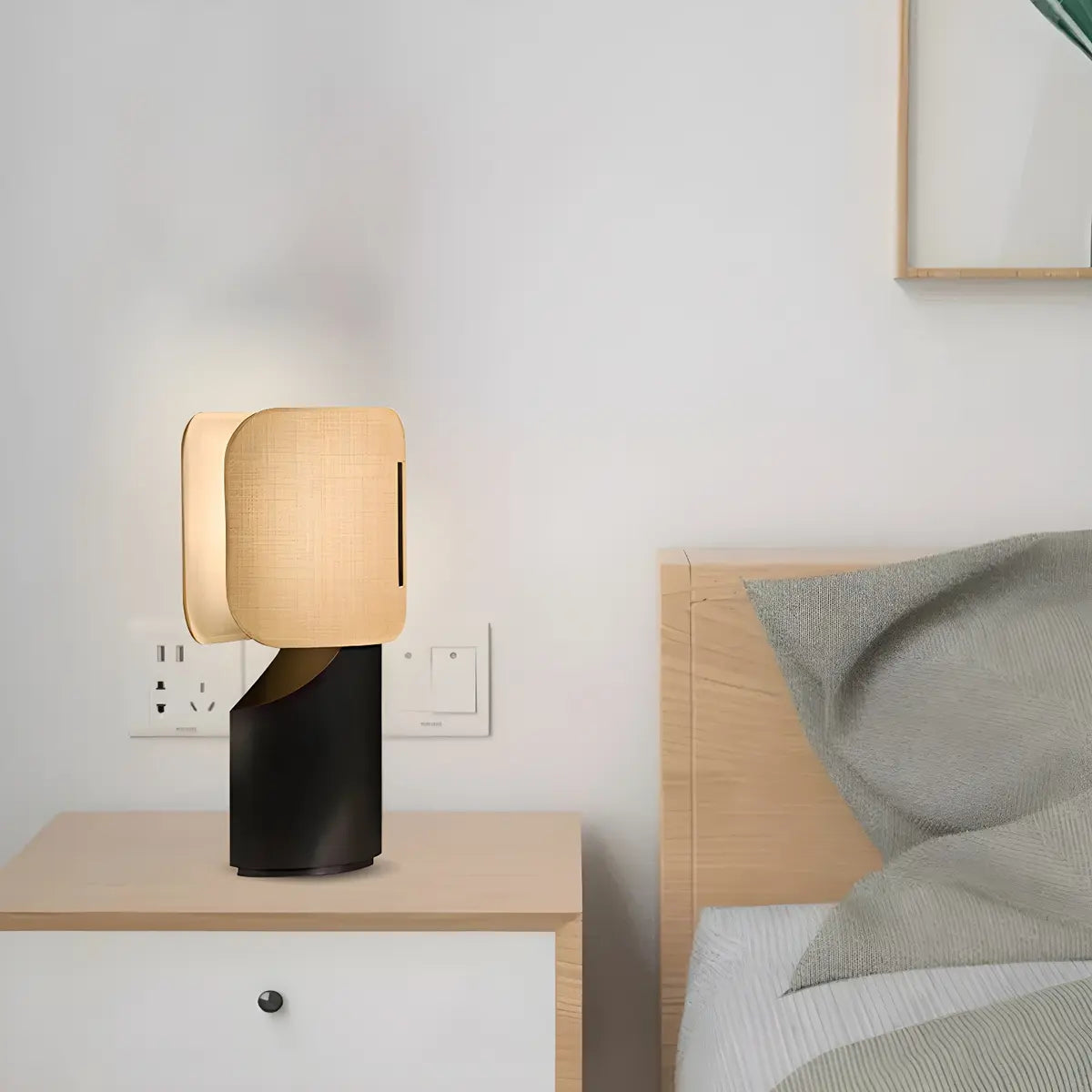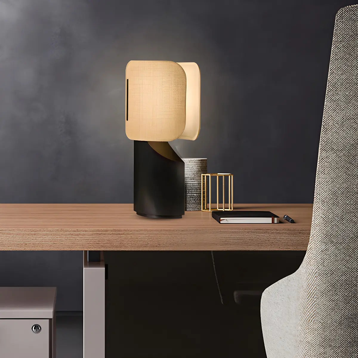 ZOWALA - Chic Beige Fabric Geometric Metal Black Table Lamp