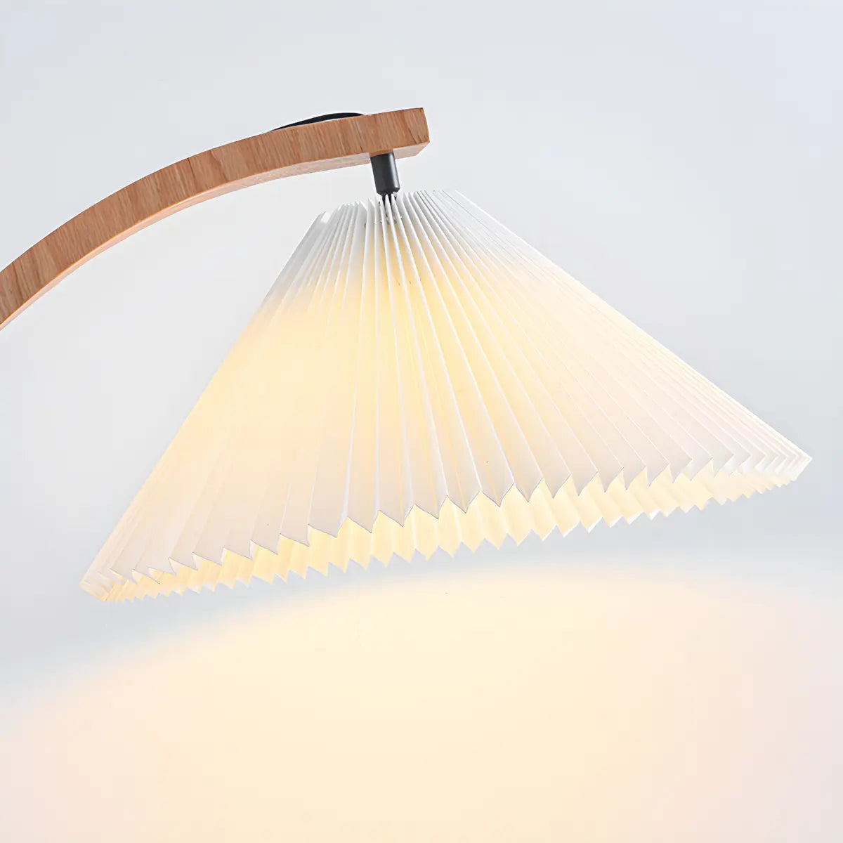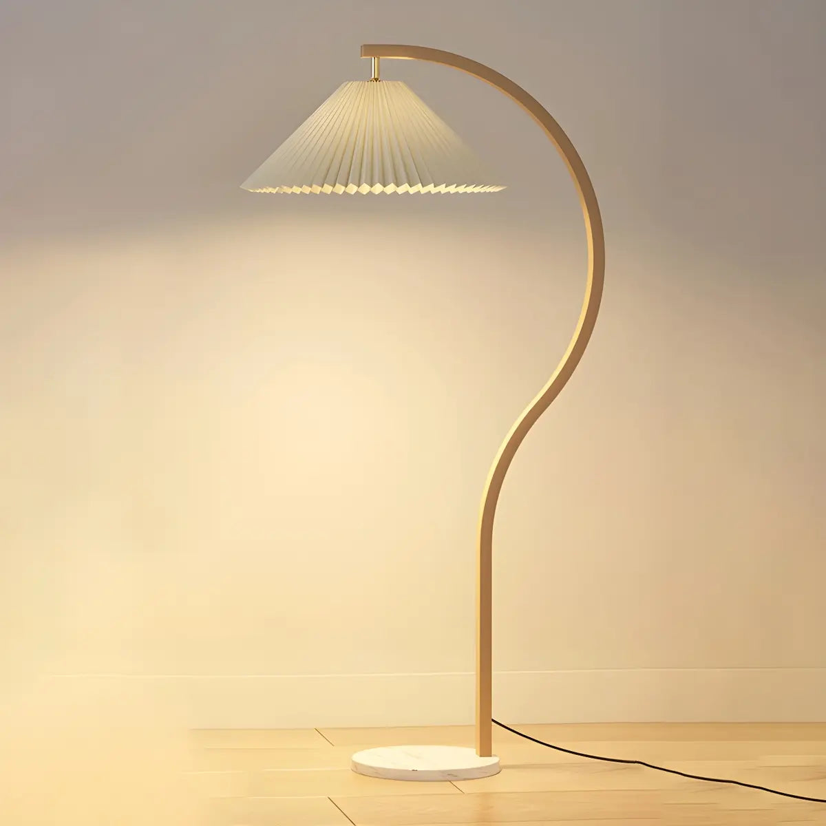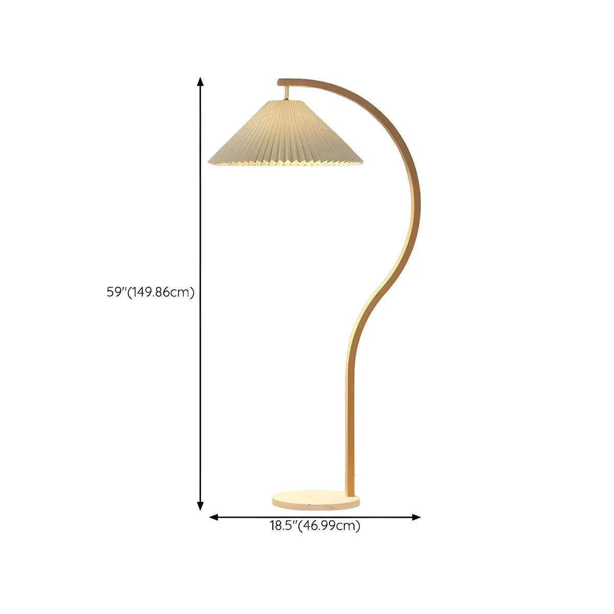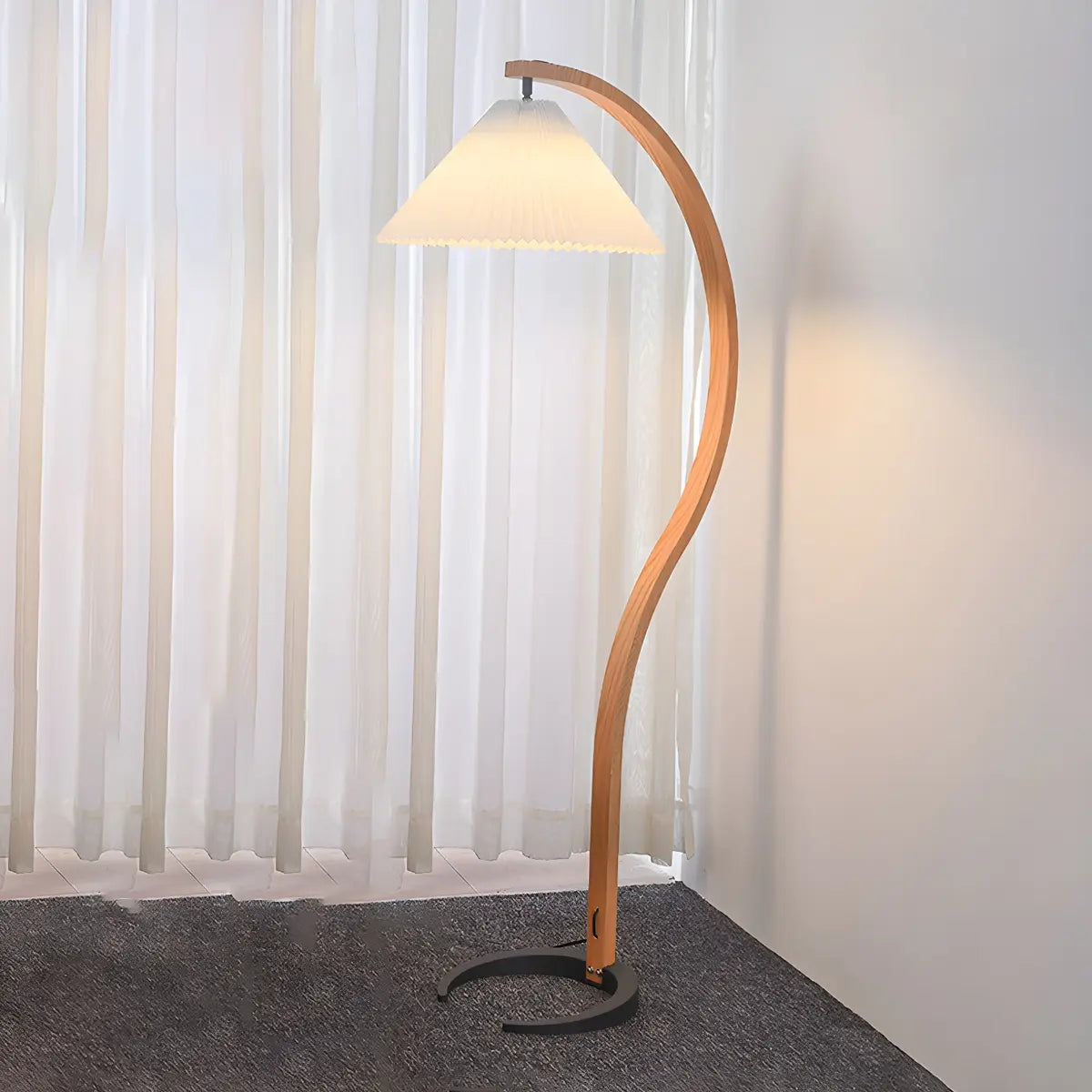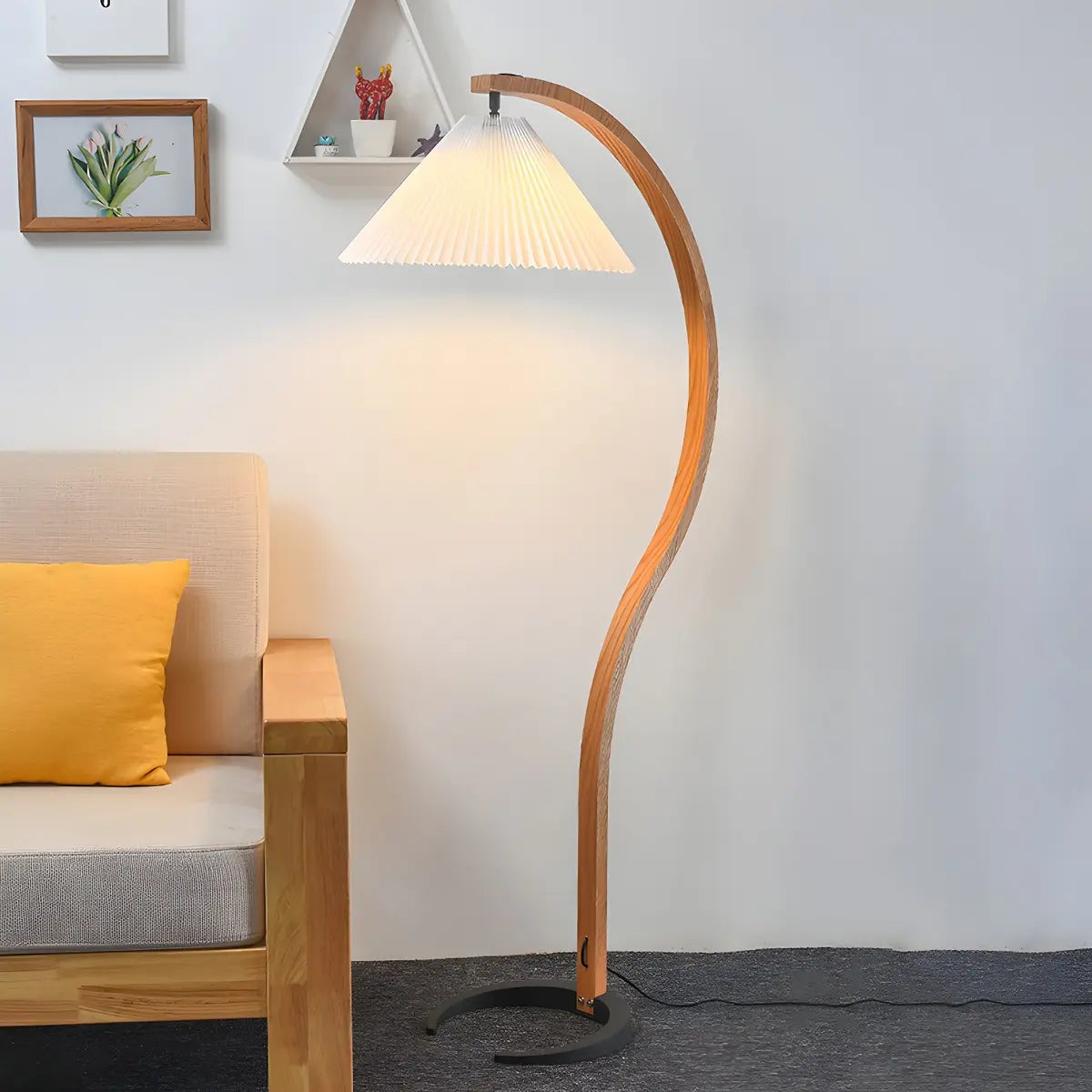 ZOWALA - Chic Curved Wooden Pleated Fabric Floor Lamp