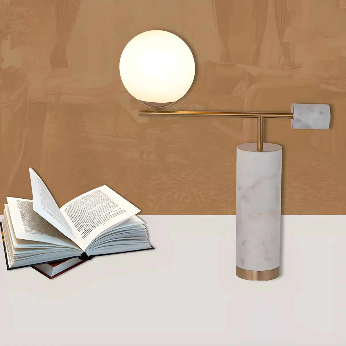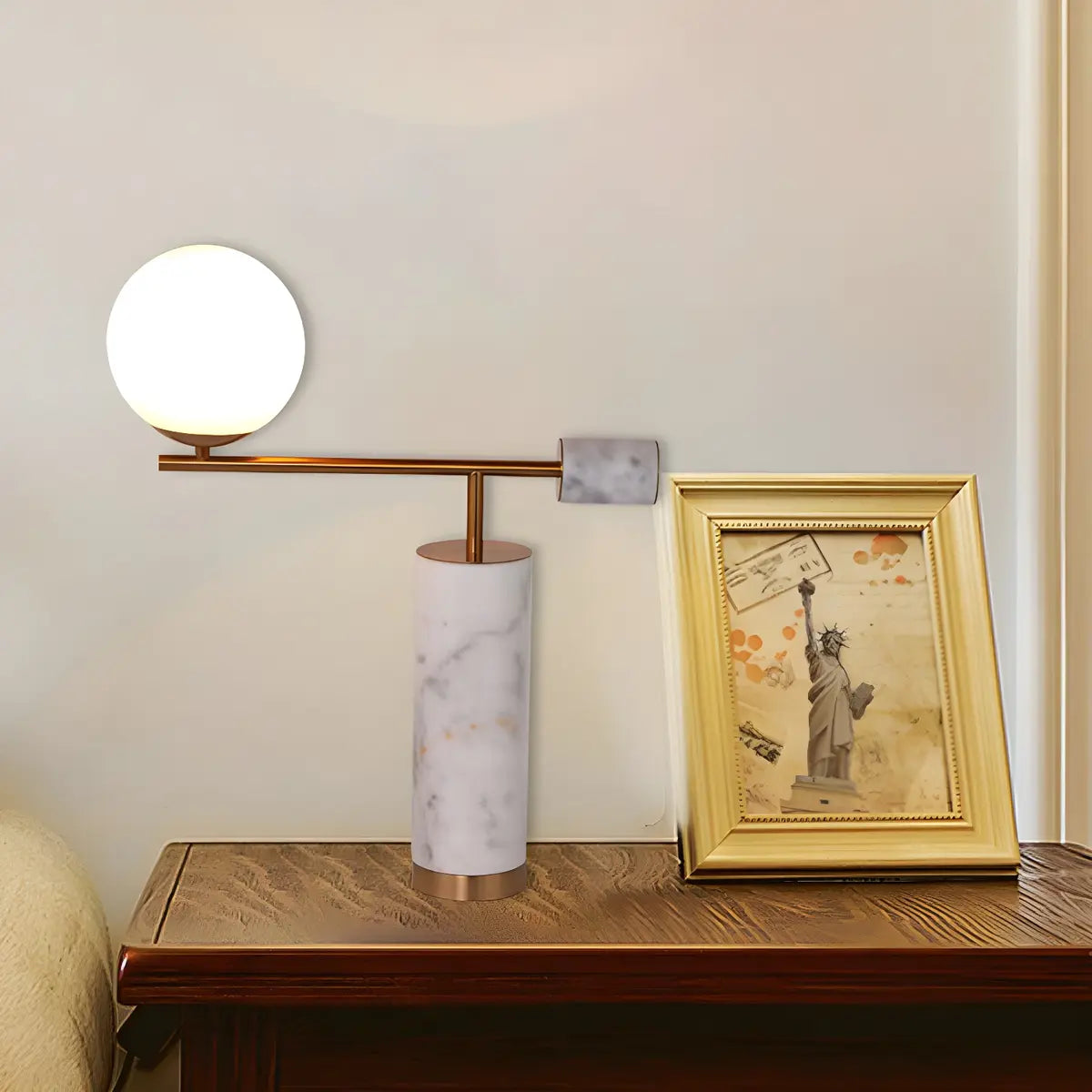ZOWALA - Chic Marble Cylinder Base Orb Glass Table Lamp