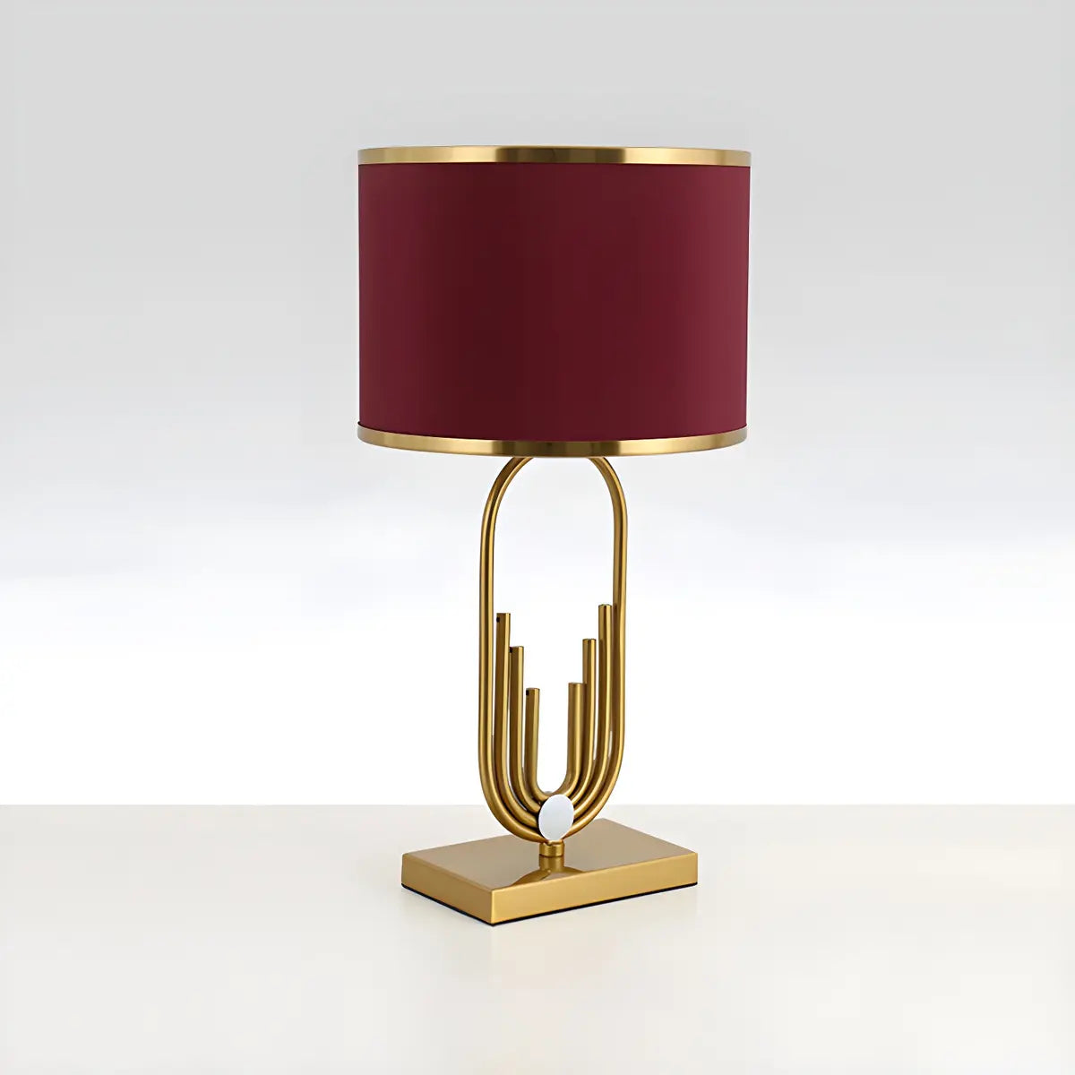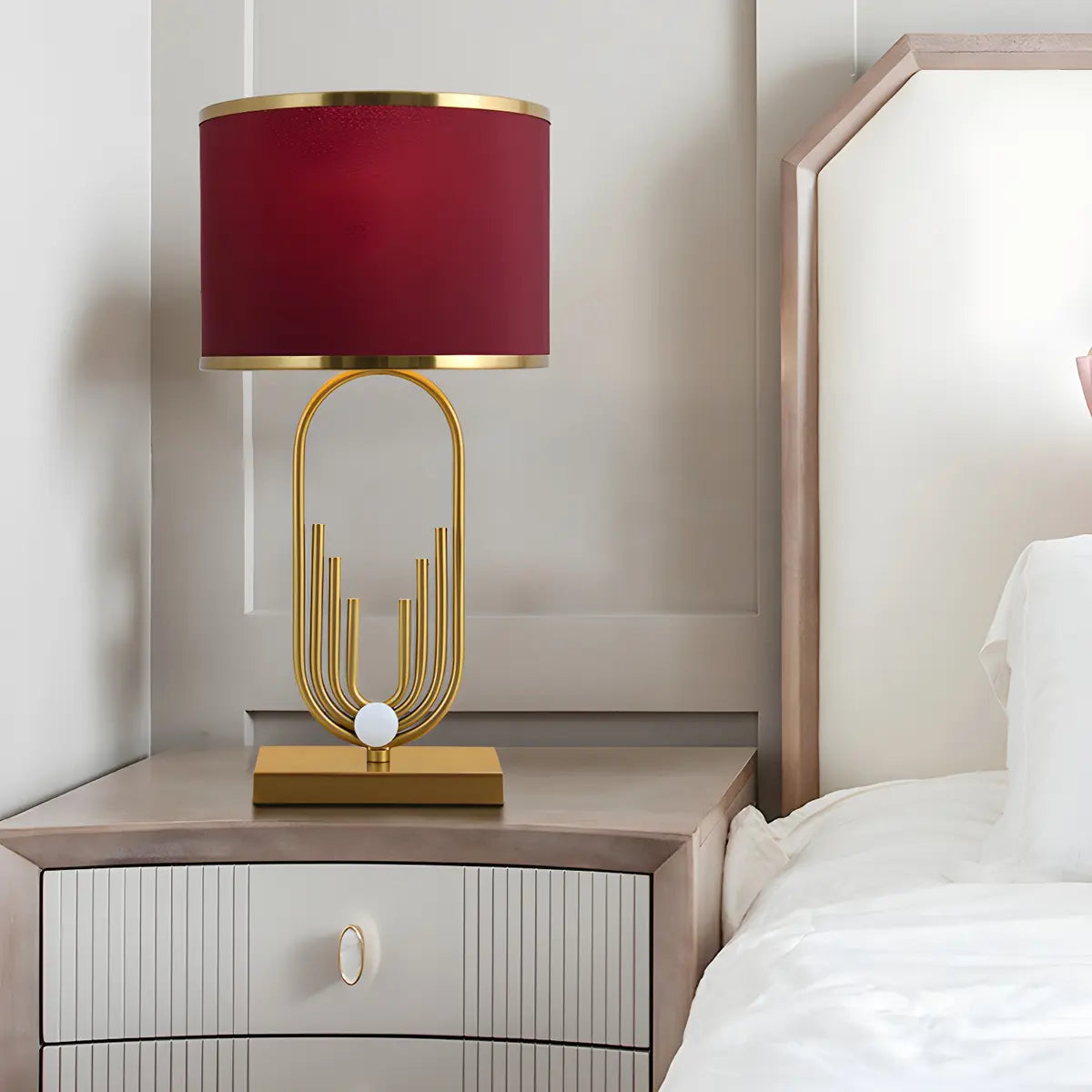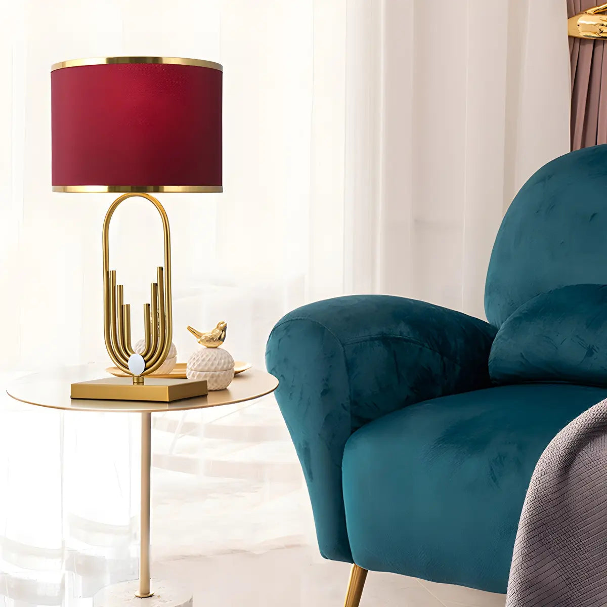 ZOWALA - Chic Red Fabric Drum Gold Table Light