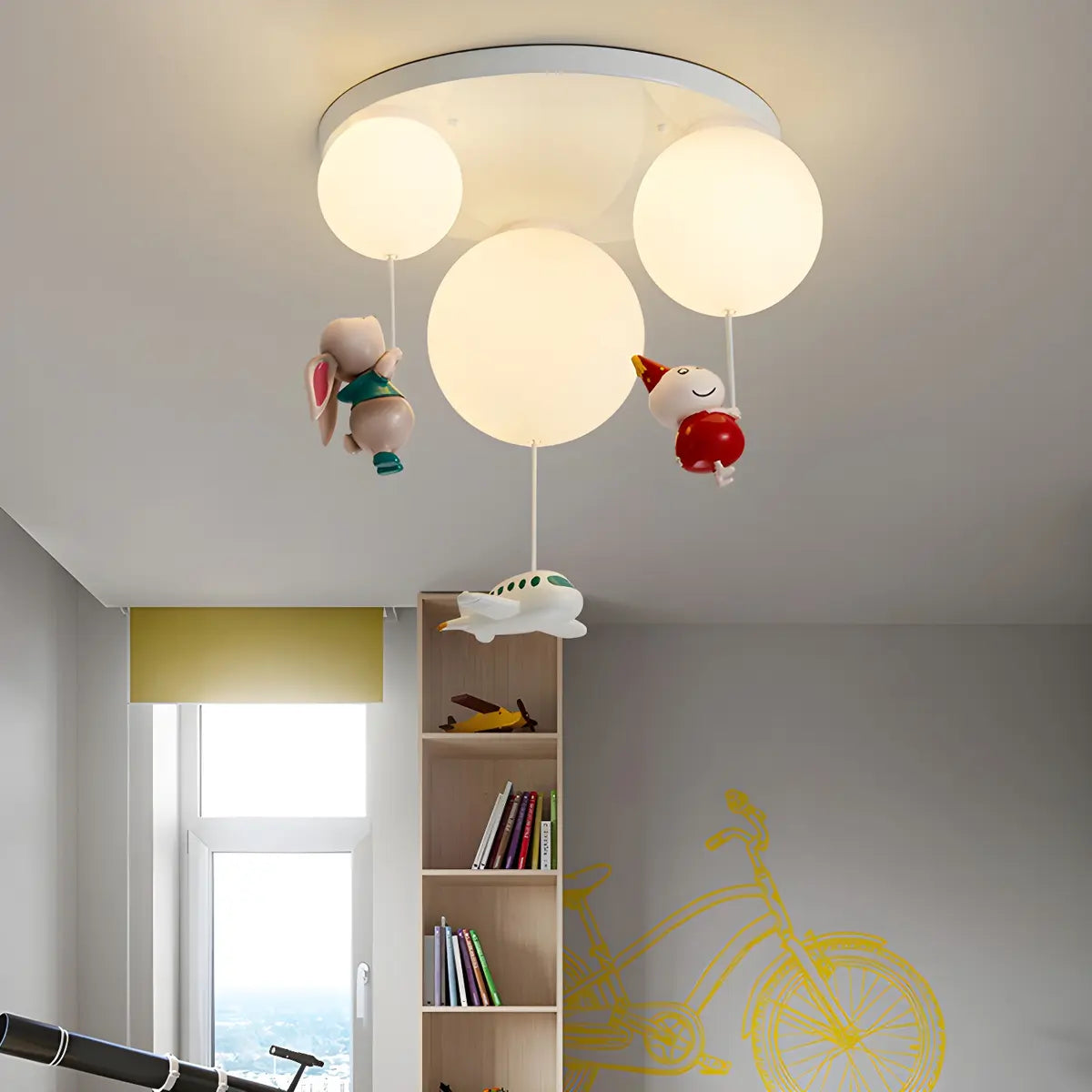 ZOWALA - Child Airplane Globe Glass Flush Mount Light