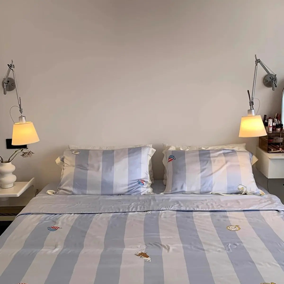 ZOWALA - Chrome Swing Arm White Fabric Barrel Wall Sconce
