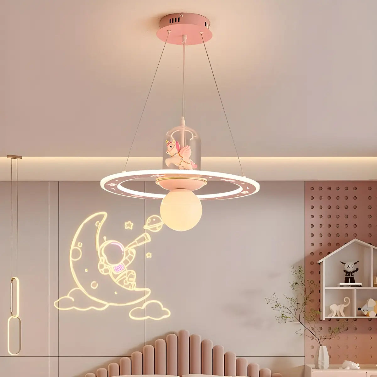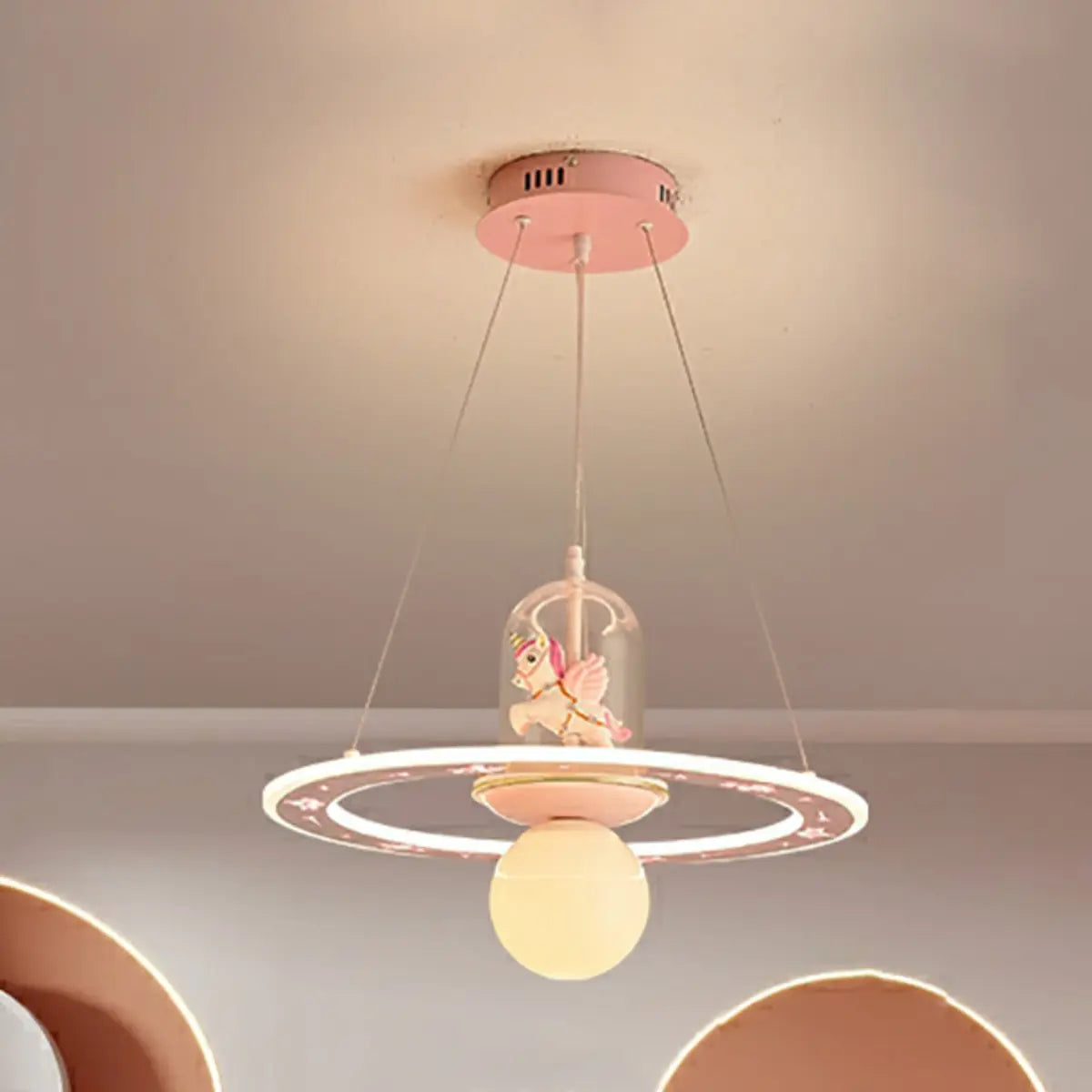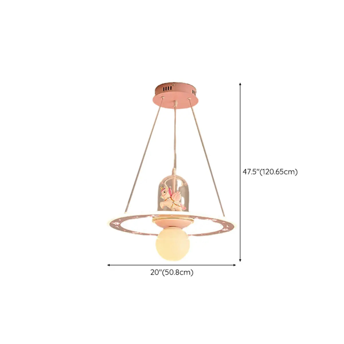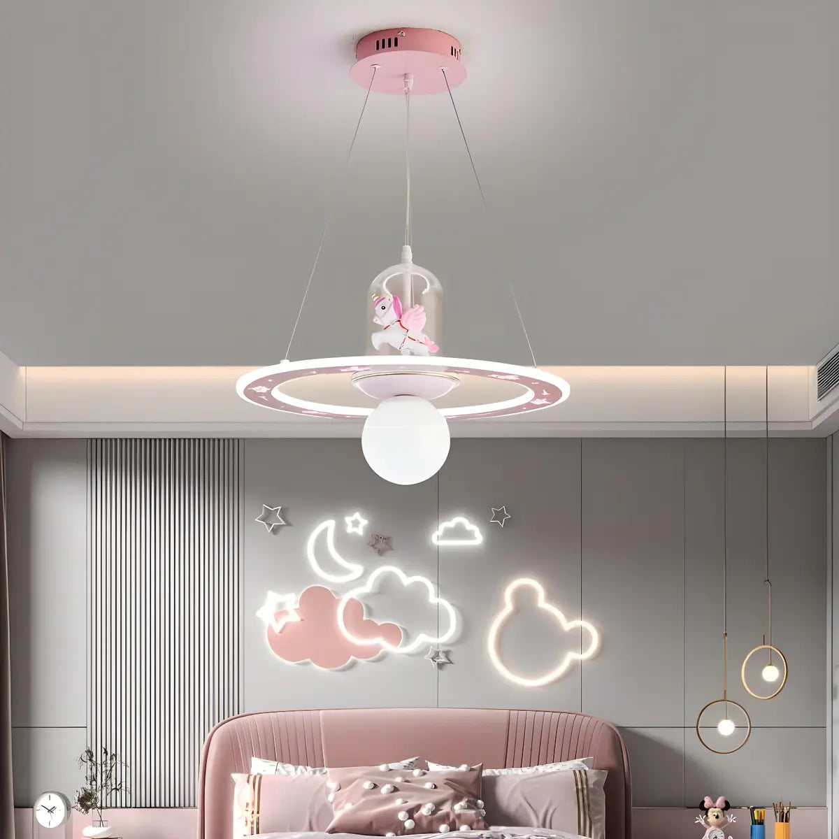 ZOWALA - Kids Pink Unicorn Circle Ball Acrylic Chandelier