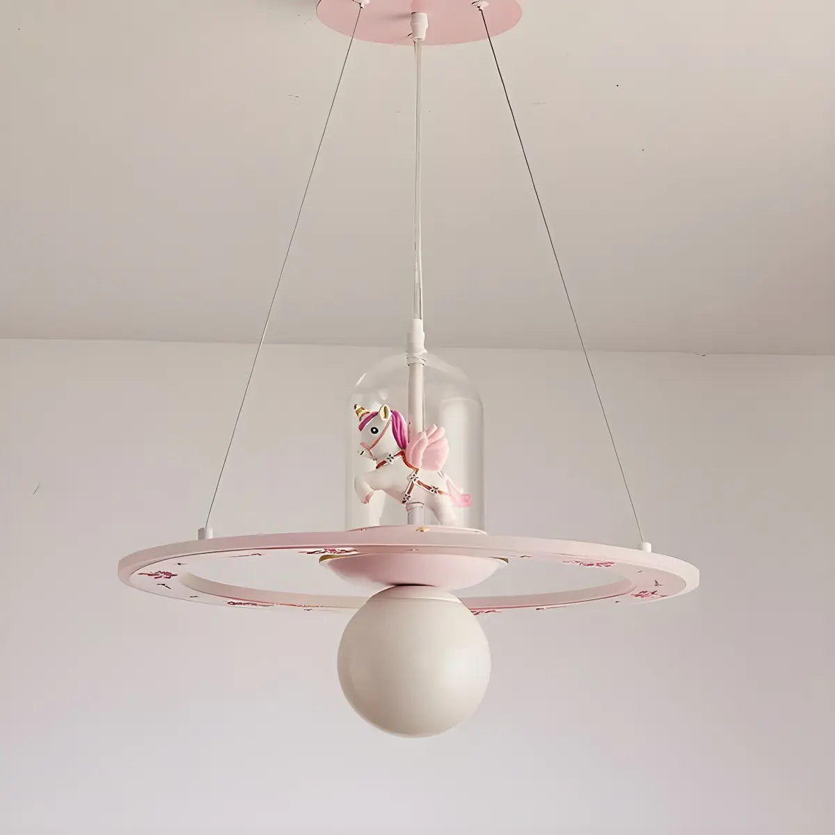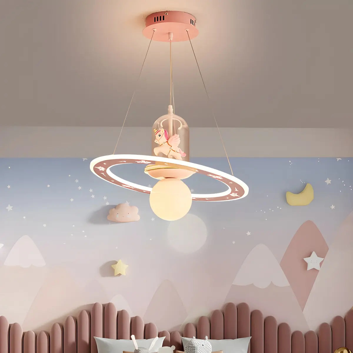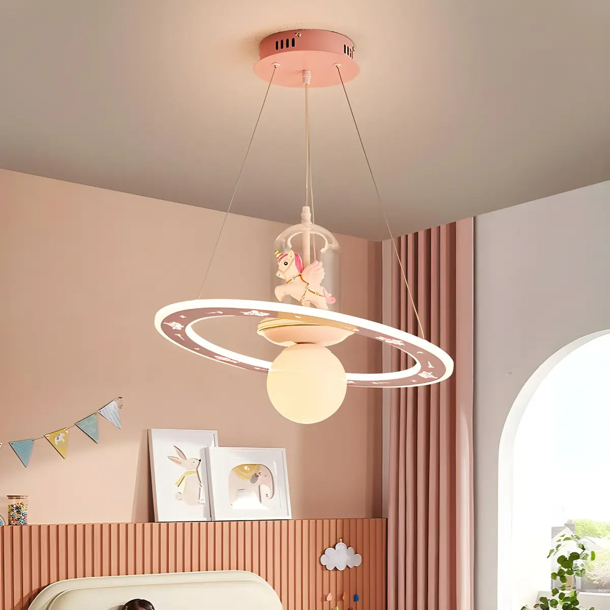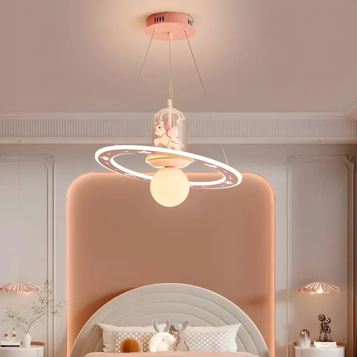 ZOWALA - Kids Pink Unicorn Circle Ball Acrylic Chandelier