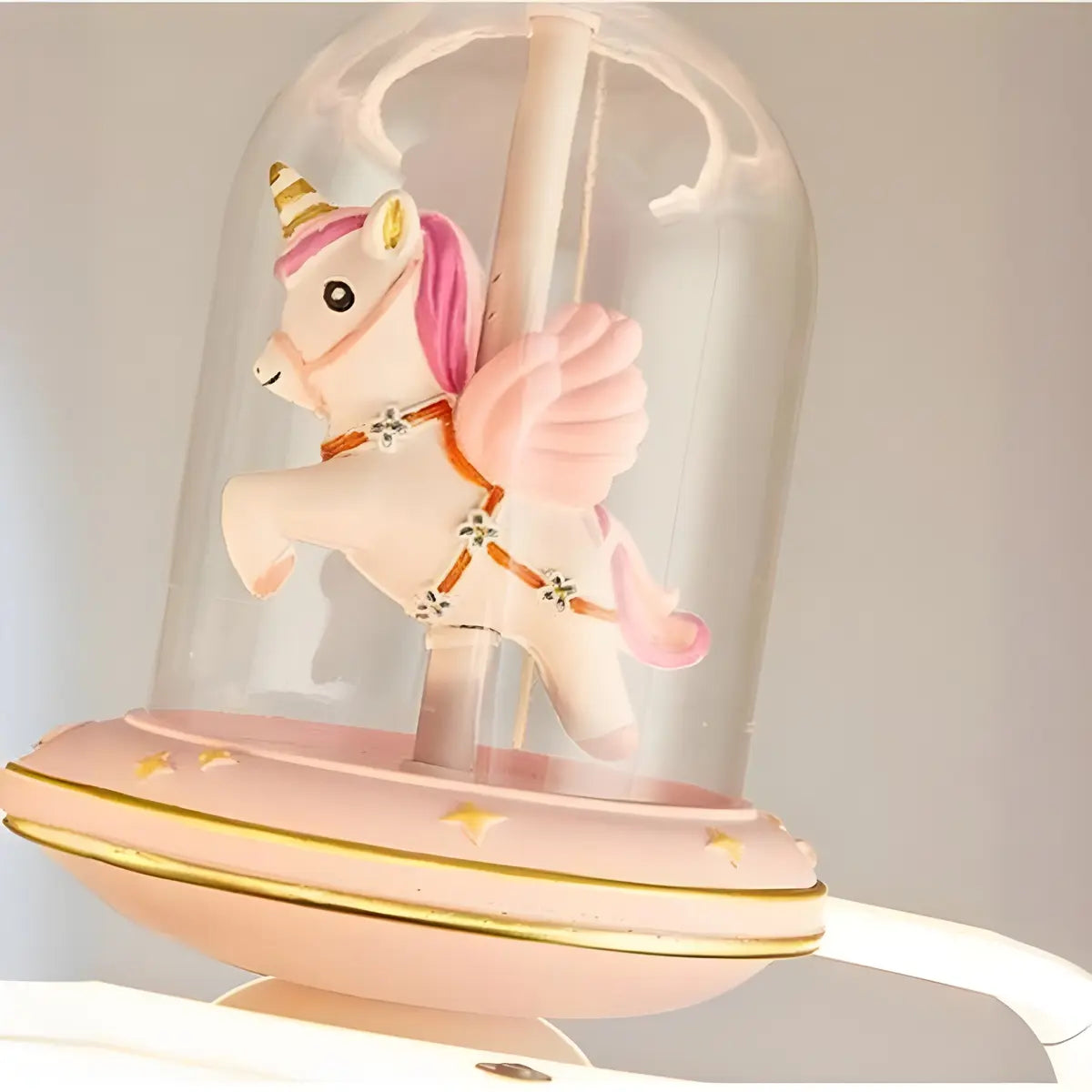 Designed for kids' rooms, this Unicorn Acrylic Globe Chandelier instantly becomes the focal point of the space with its dreamy unicorn elements and warm pink hue.