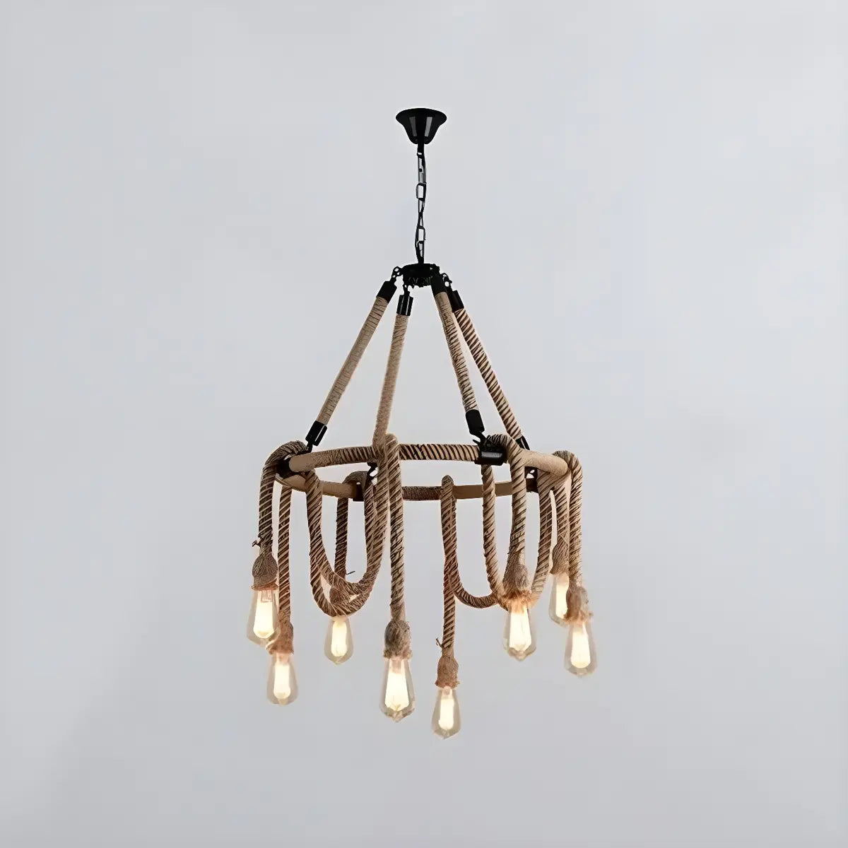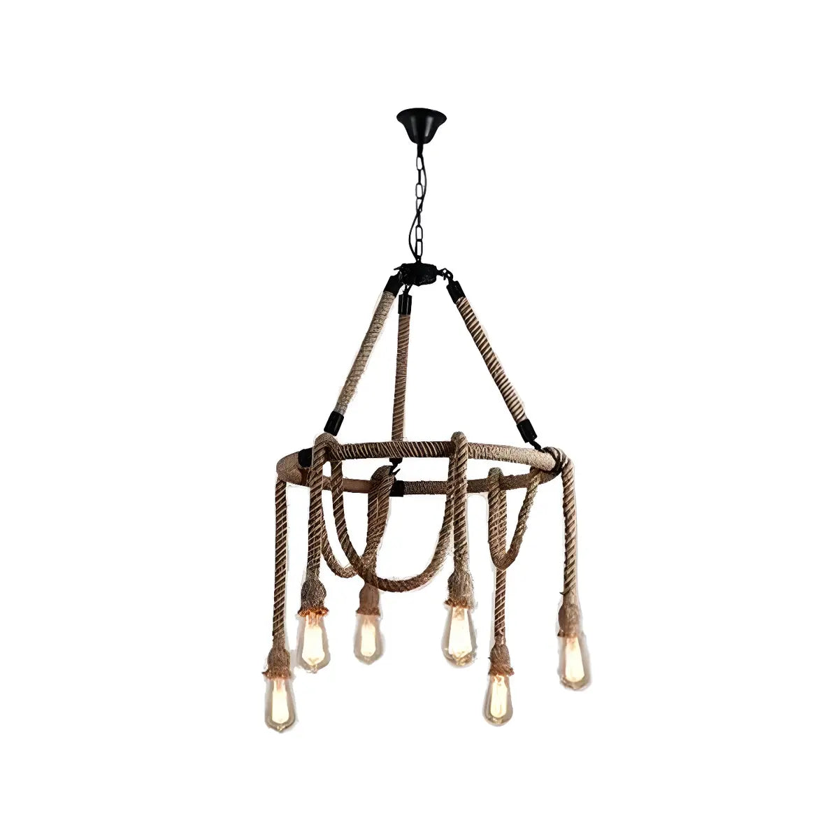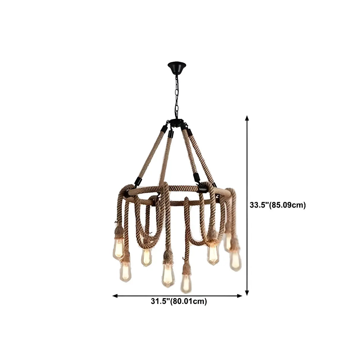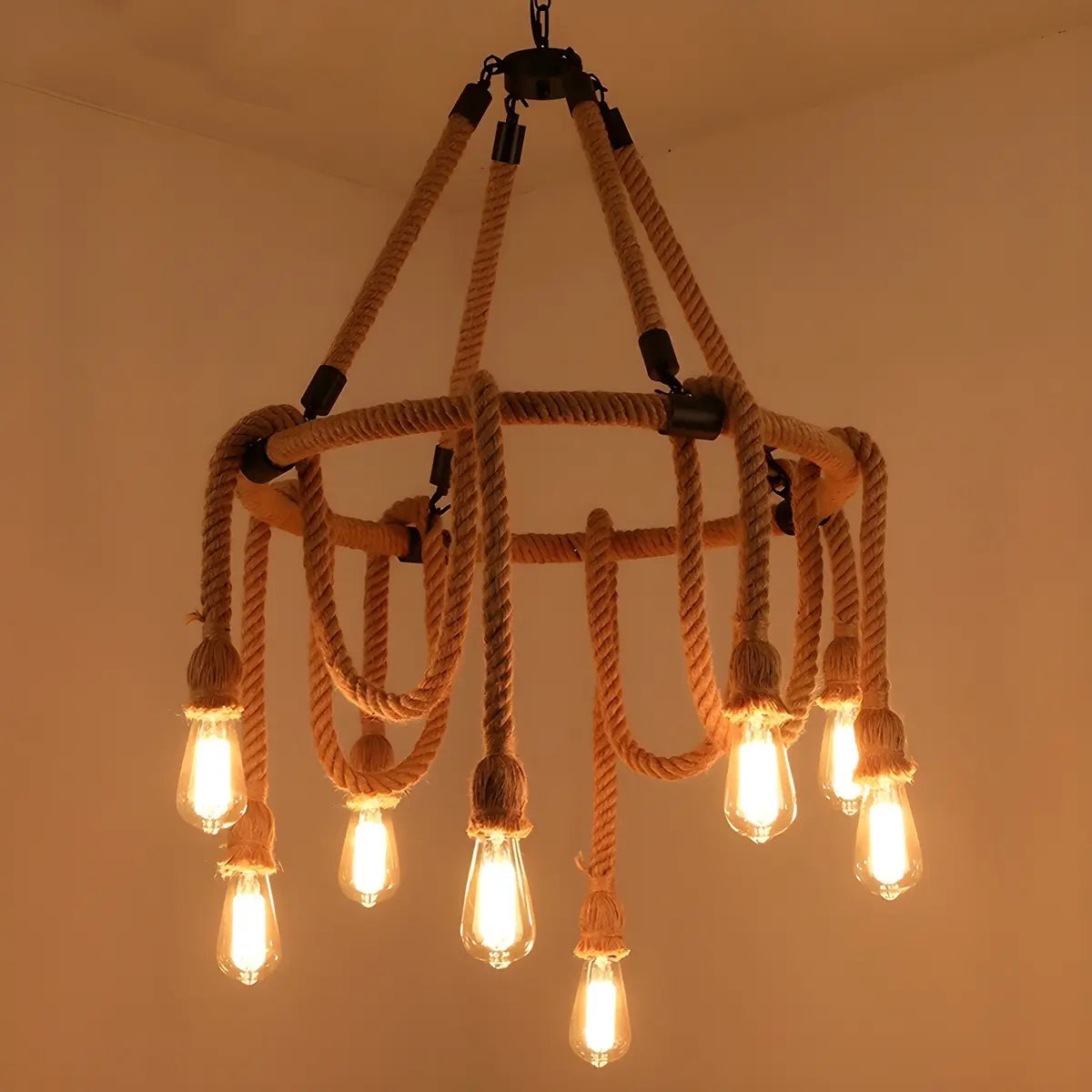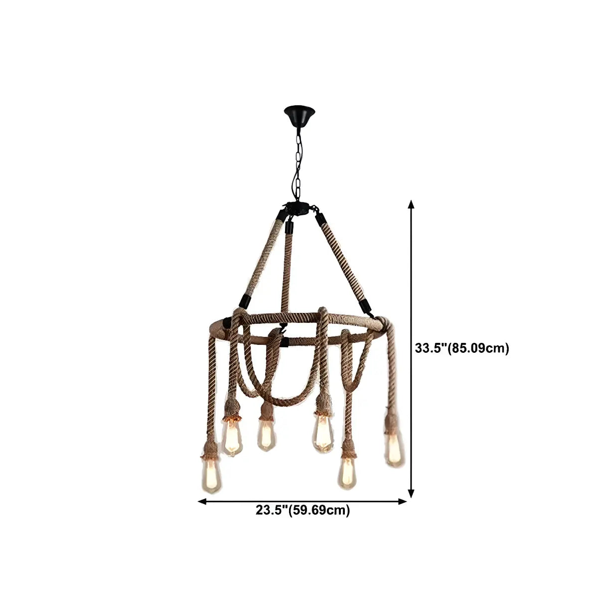 ZOWALA - Rustic Circle Rope Edison Bulb Chandelier