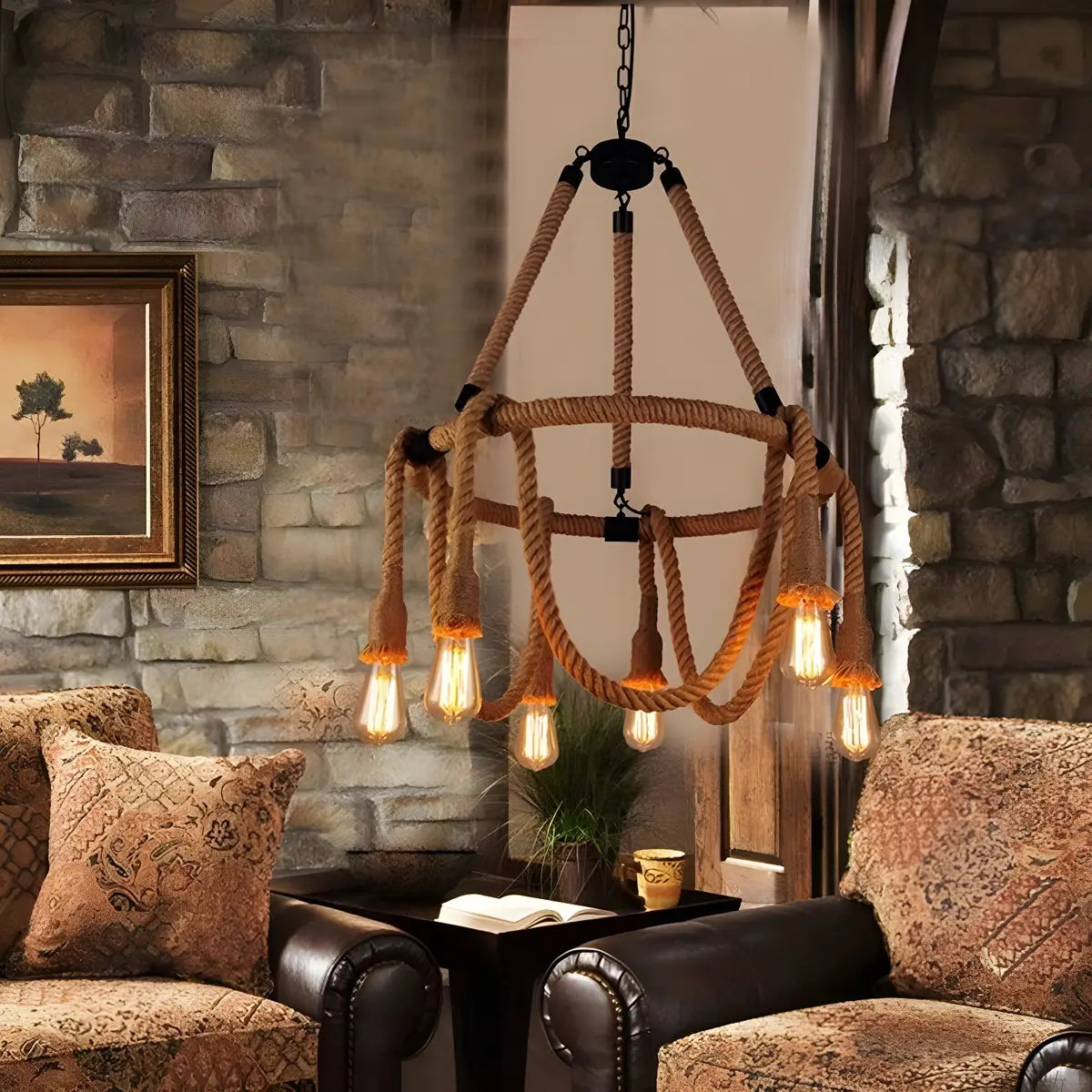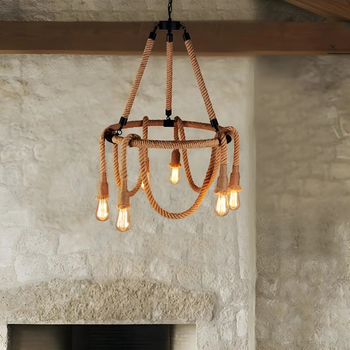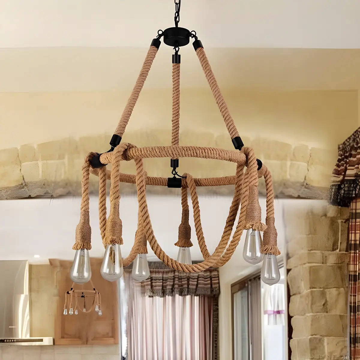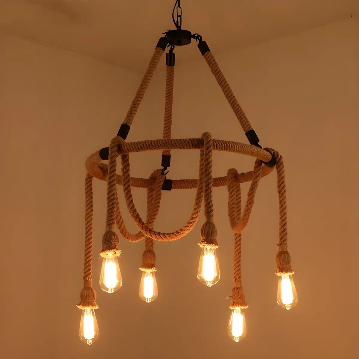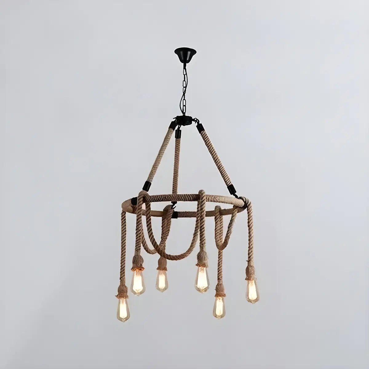 ZOWALA - Rustic Circle Rope Edison Bulb Chandelier