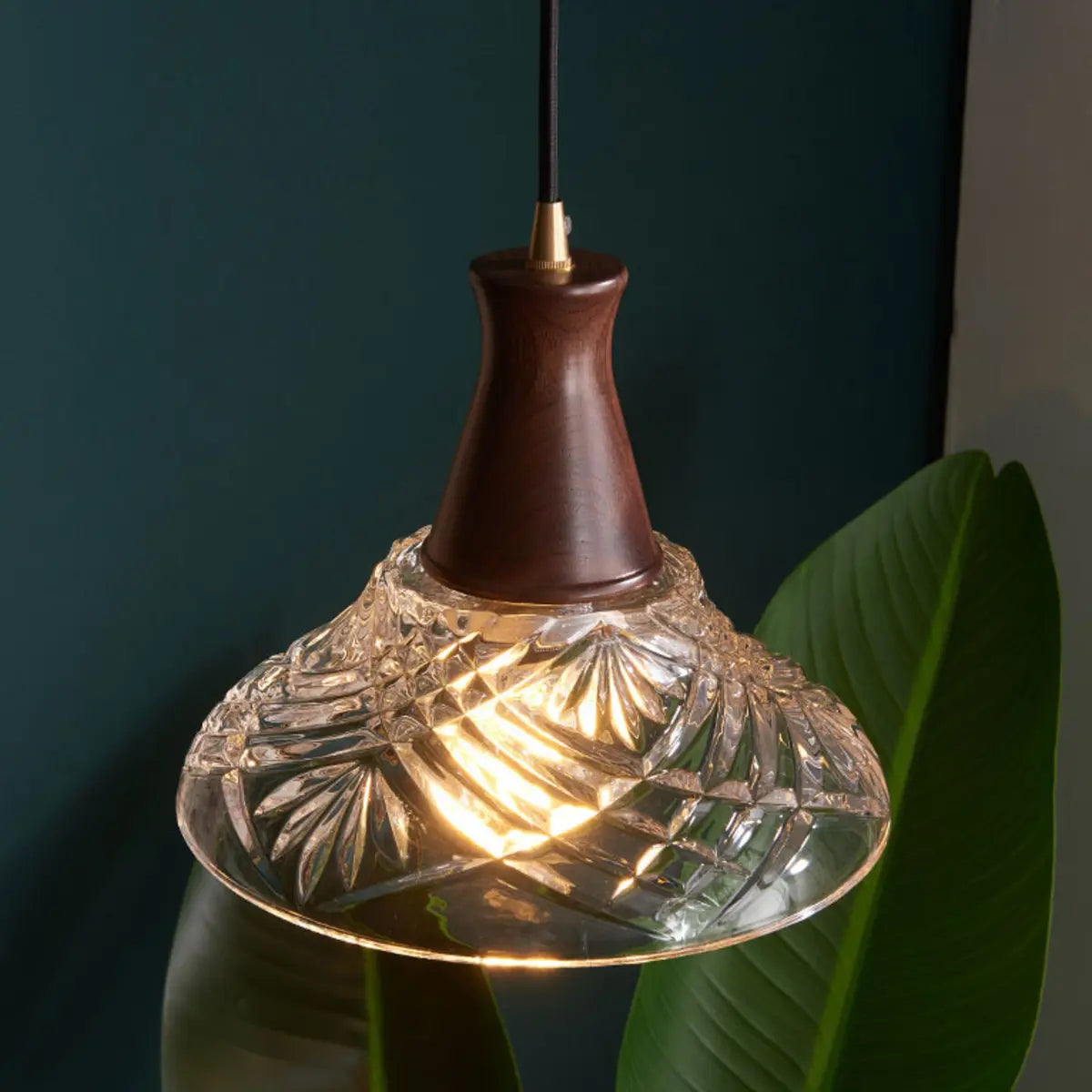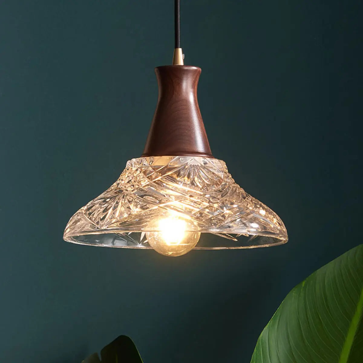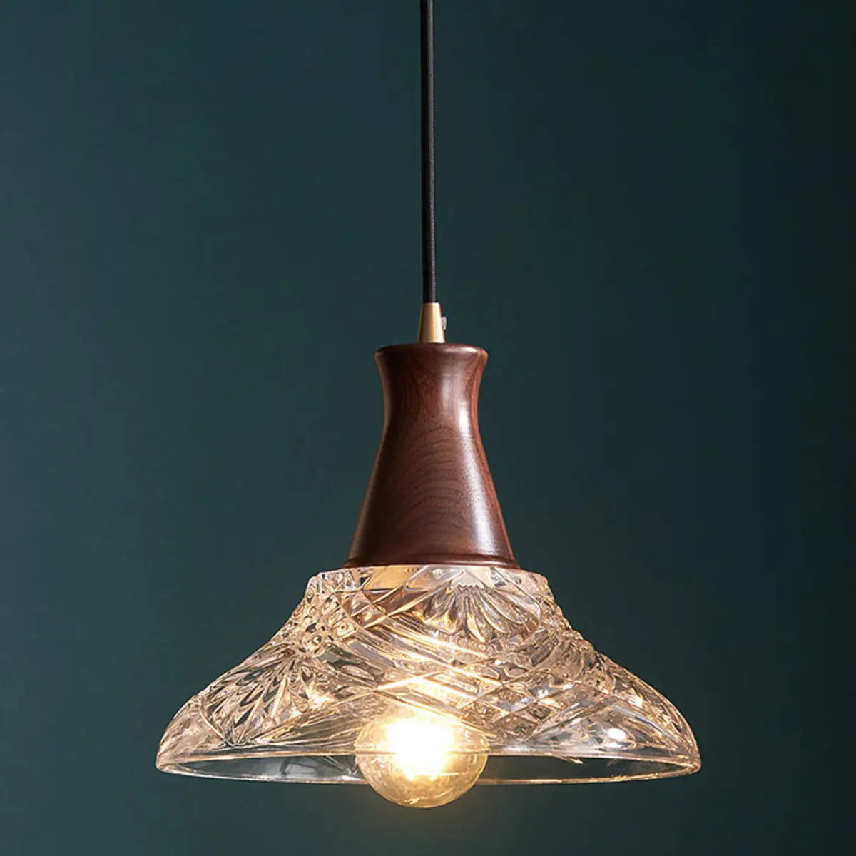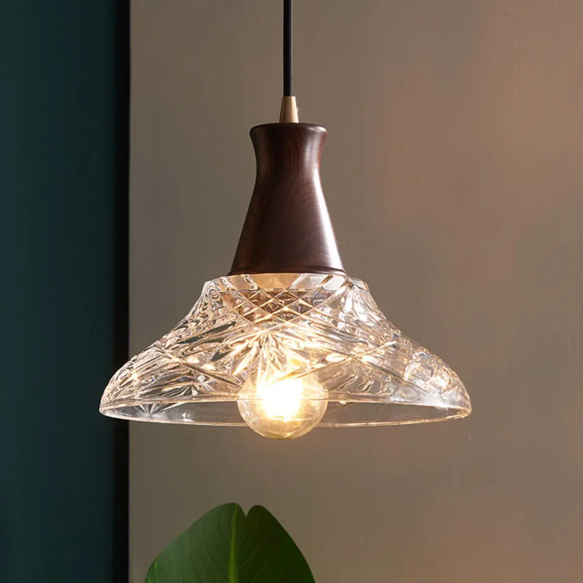 This chandelier creates a unique charm with its ingenious modern style and exquisite appearance. The lampshade is carved into an elegant geometric cone using high-quality transparent glass, which is perfectly combined with the warm tone of walnut, showing luxury in simplicity. Whether it is hung on the kitchen island or the dining table, it can add an extraordinary sense of art to your interior environment.