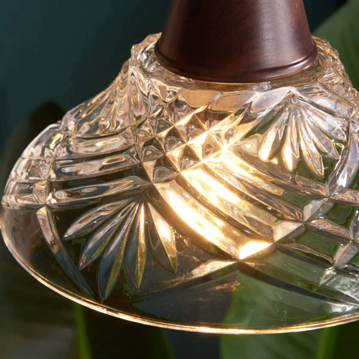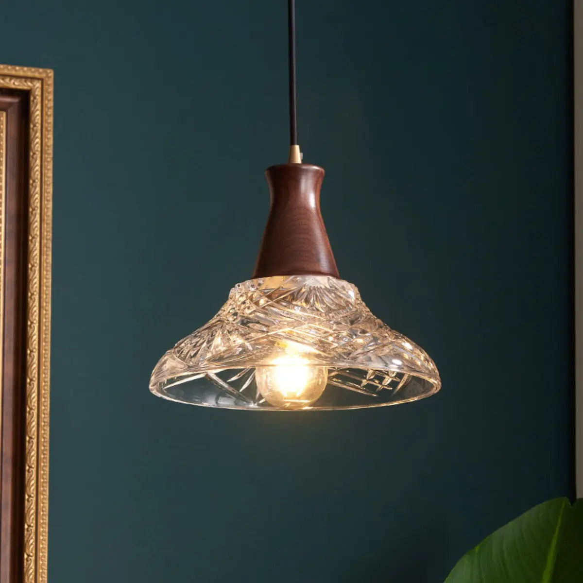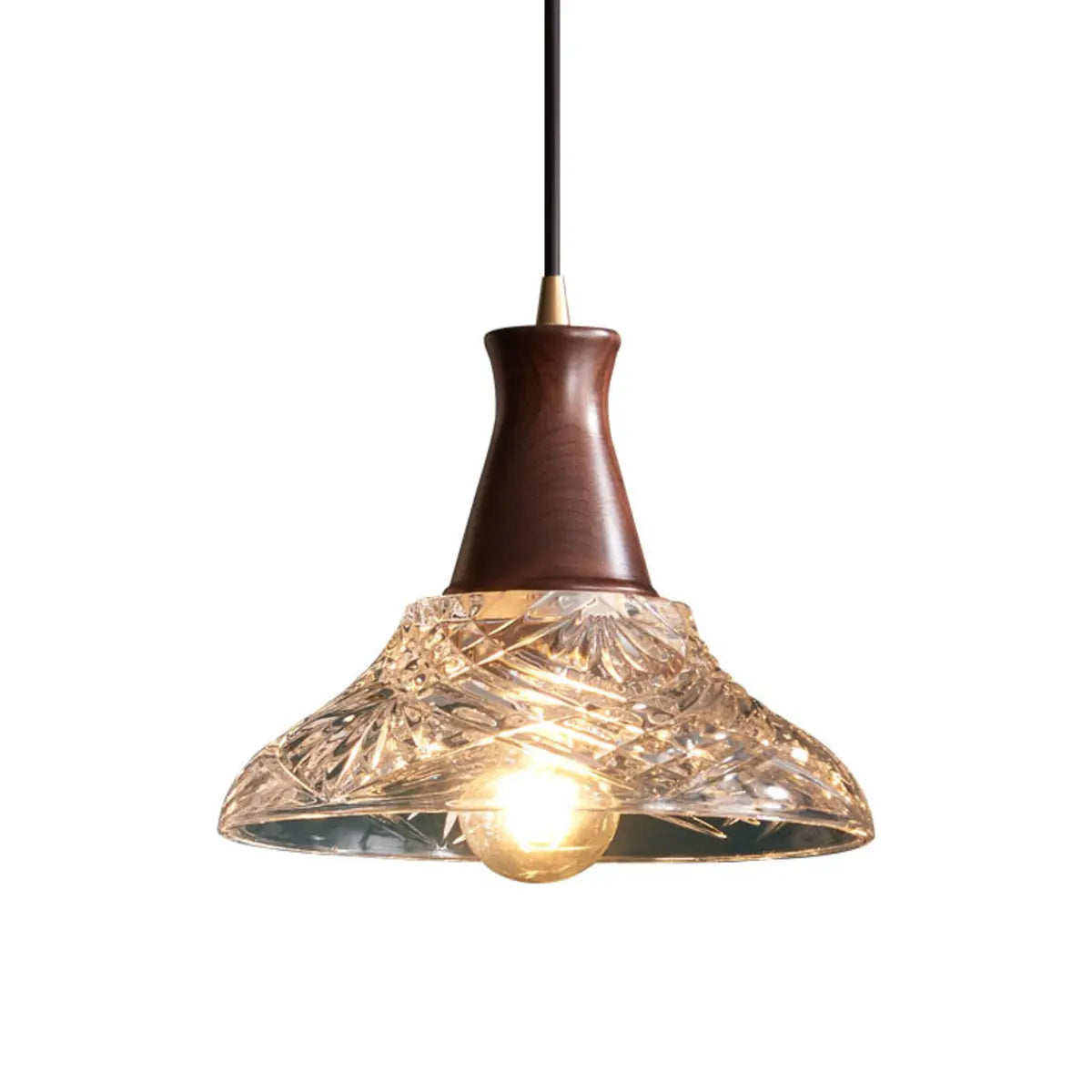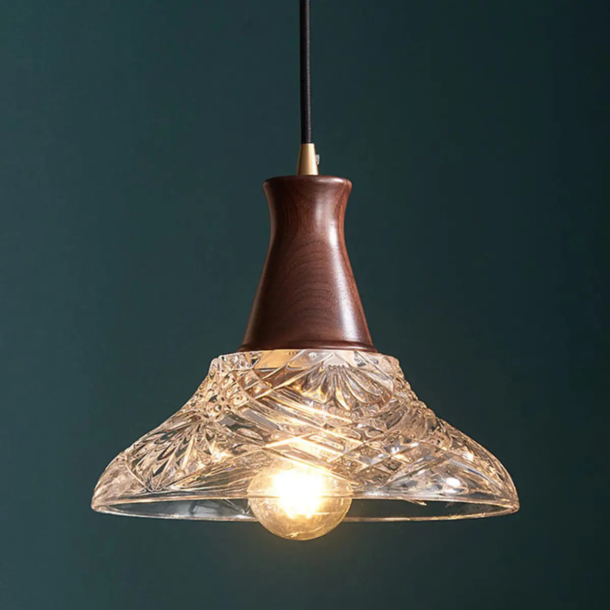 This chandelier creates a unique charm with its ingenious modern style and exquisite appearance. The lampshade is carved into an elegant geometric cone using high-quality transparent glass, which is perfectly combined with the warm tone of walnut, showing luxury in simplicity. Whether it is hung on the kitchen island or the dining table, it can add an extraordinary sense of art to your interior environment.