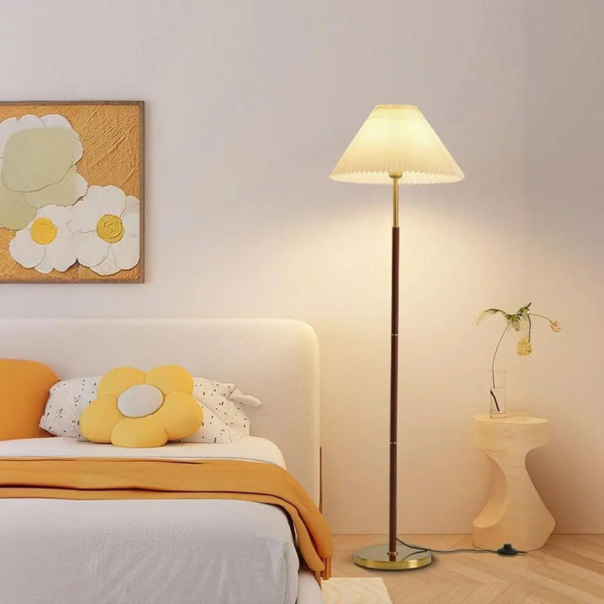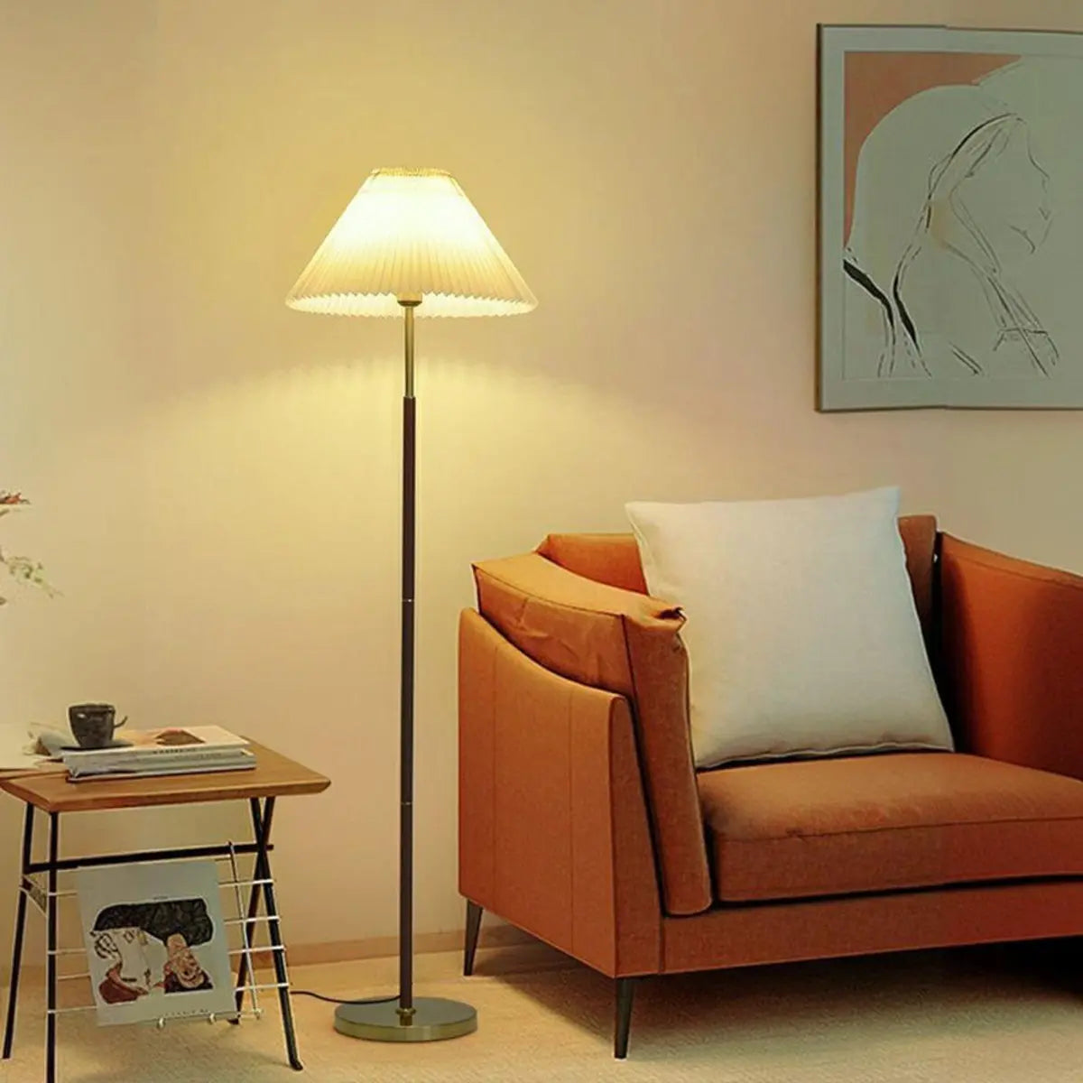 ZOWALA - Classic Pleated Brown Gold Column Floor Lamp