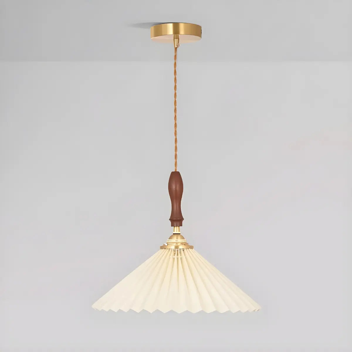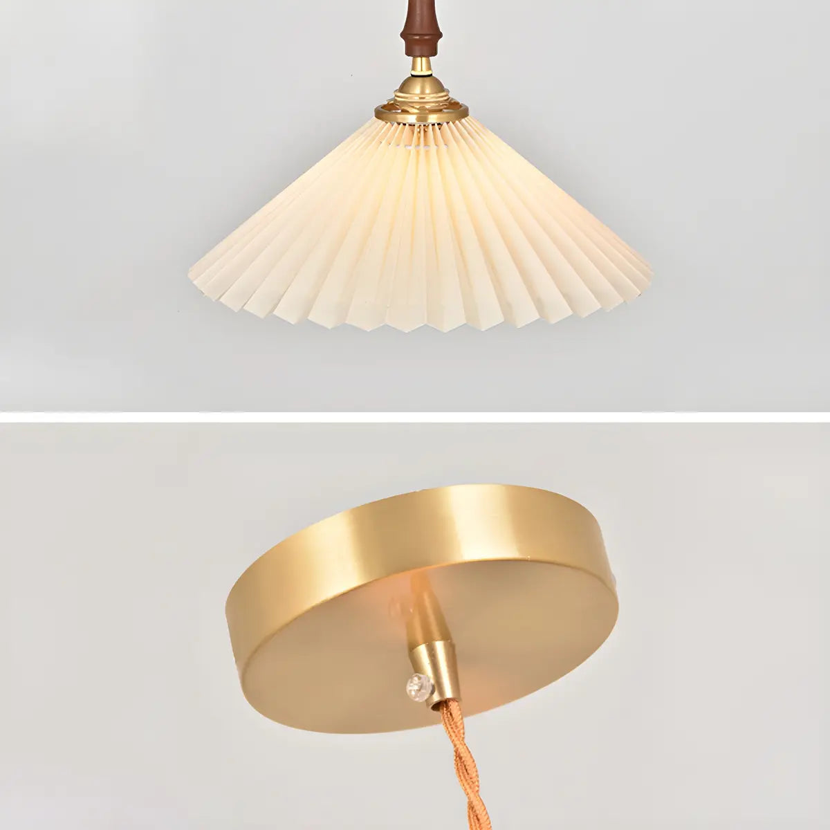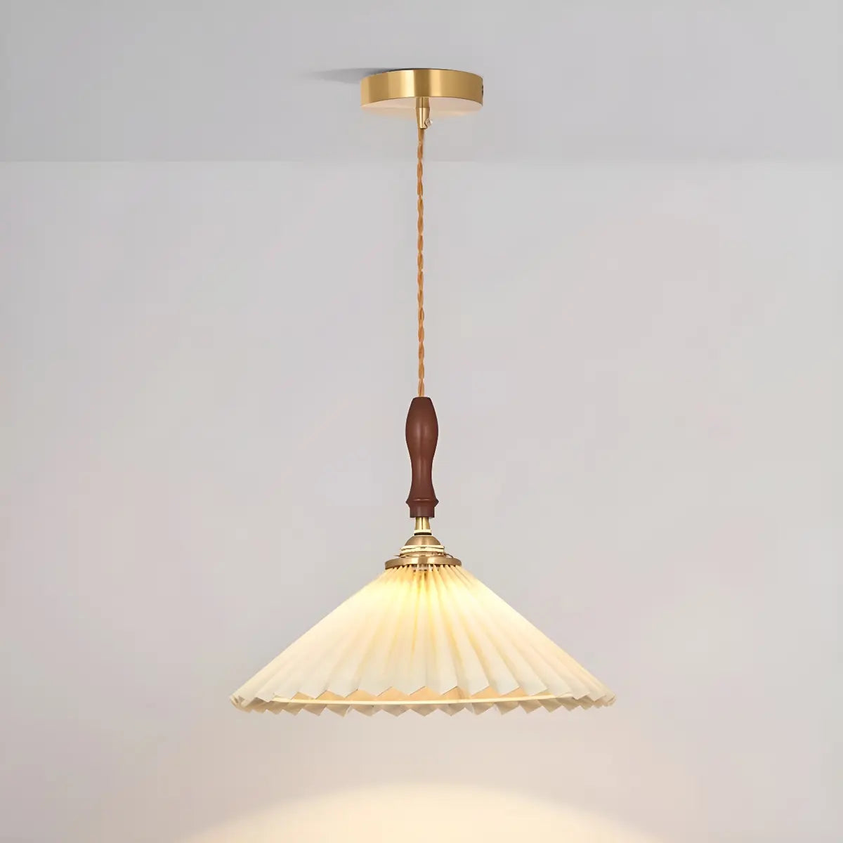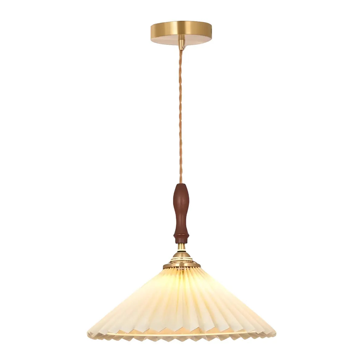 ZOWALA - Classic Walnut Gold Pleated Fabric Pendant Light
