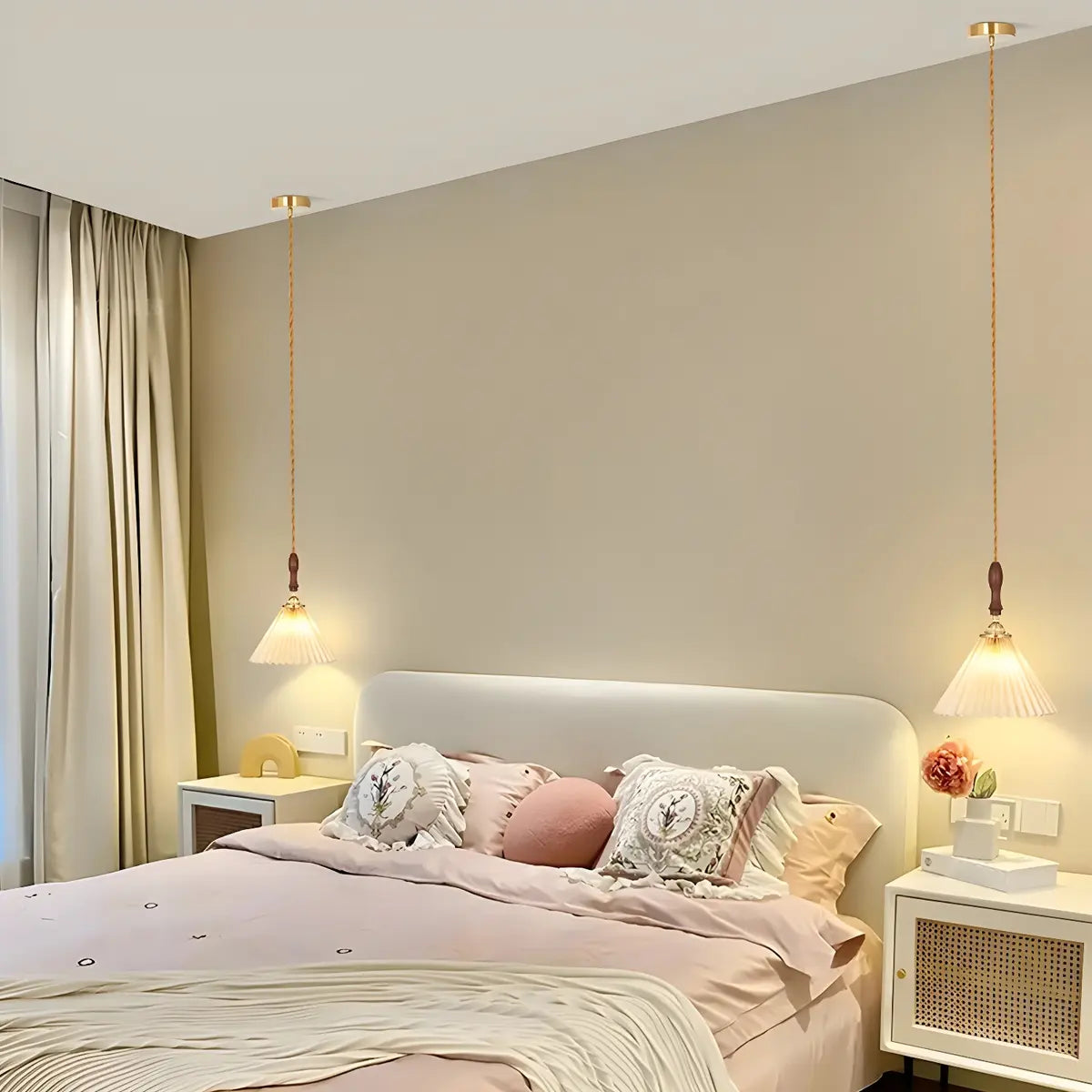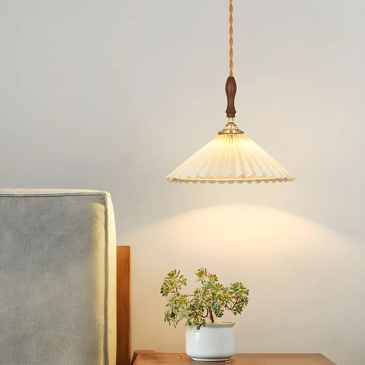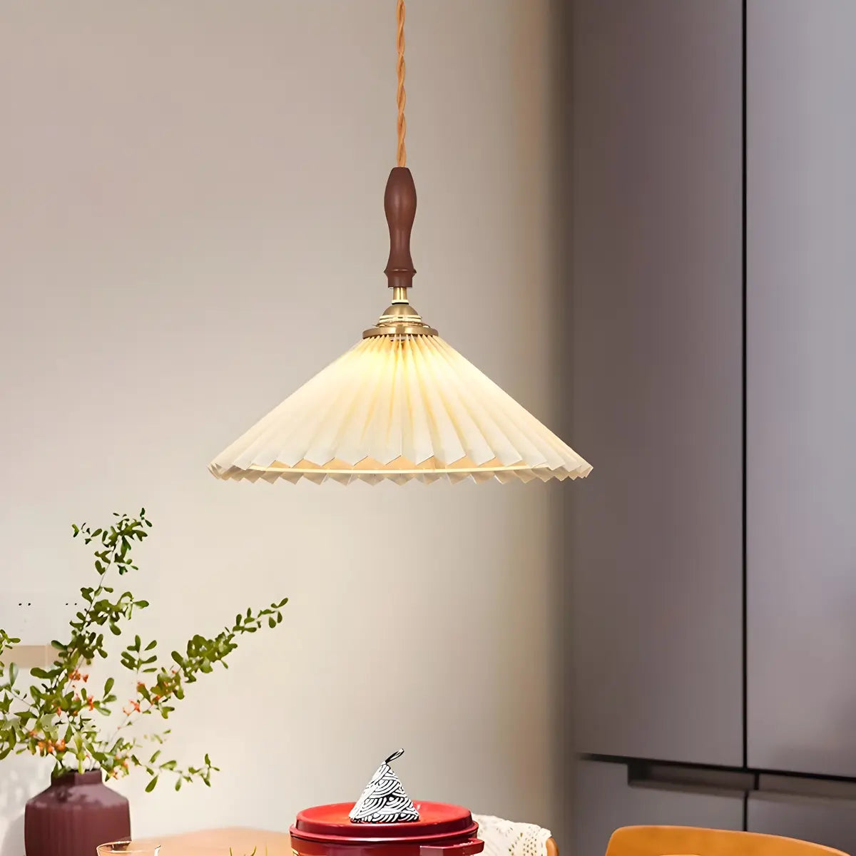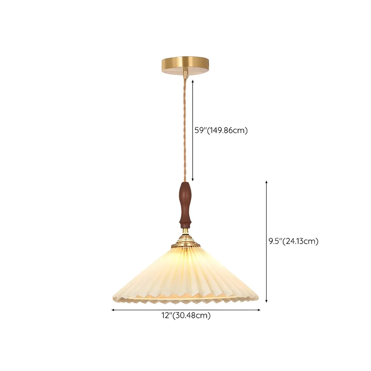 ZOWALA - Classic Walnut Gold Pleated Fabric Pendant Light