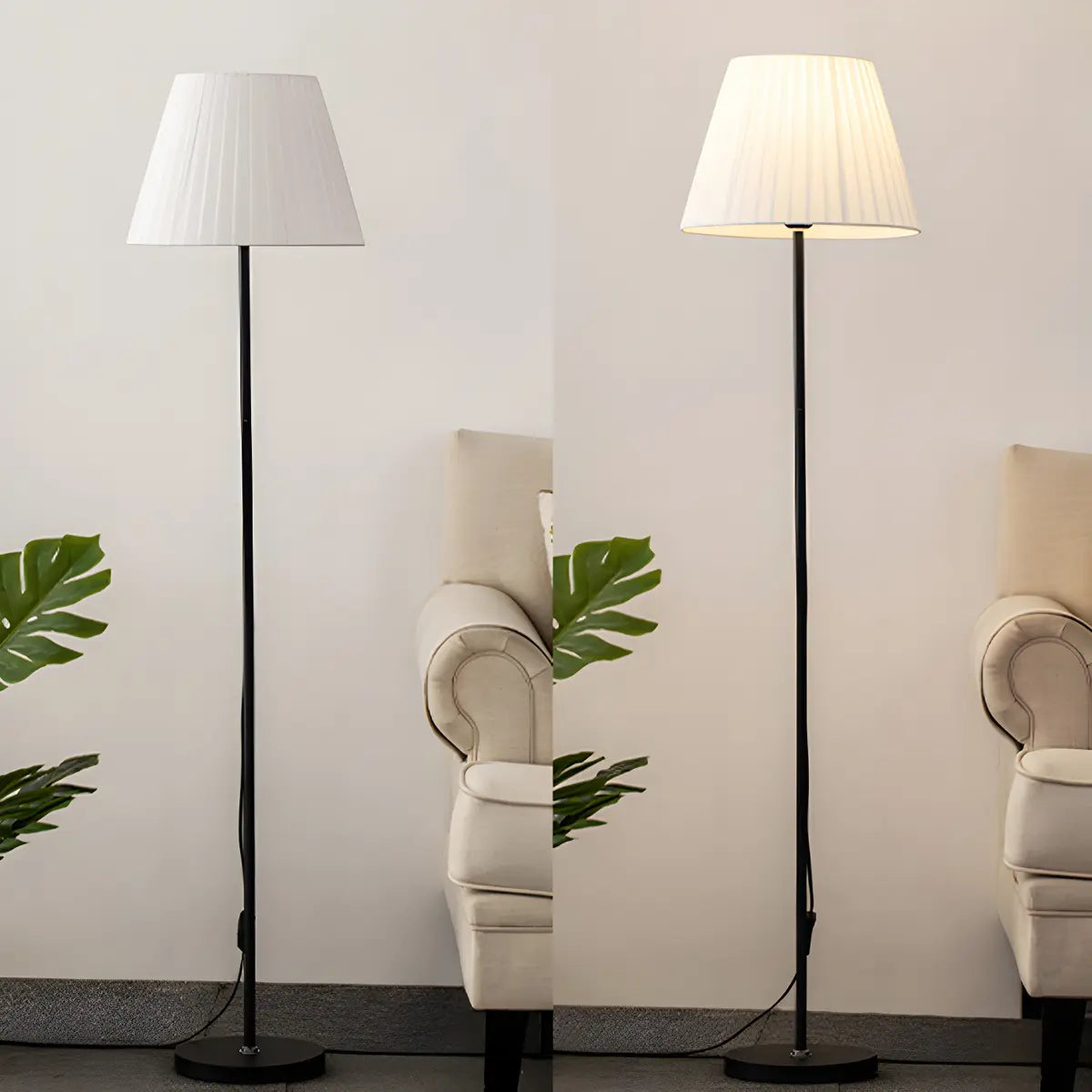 ZOWALA - White Pleated Black Metal Column Floor Lamp