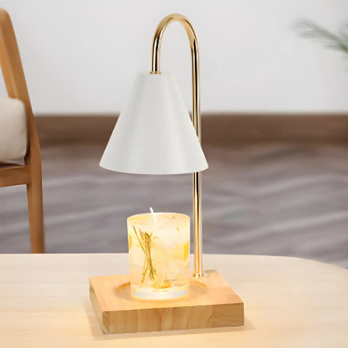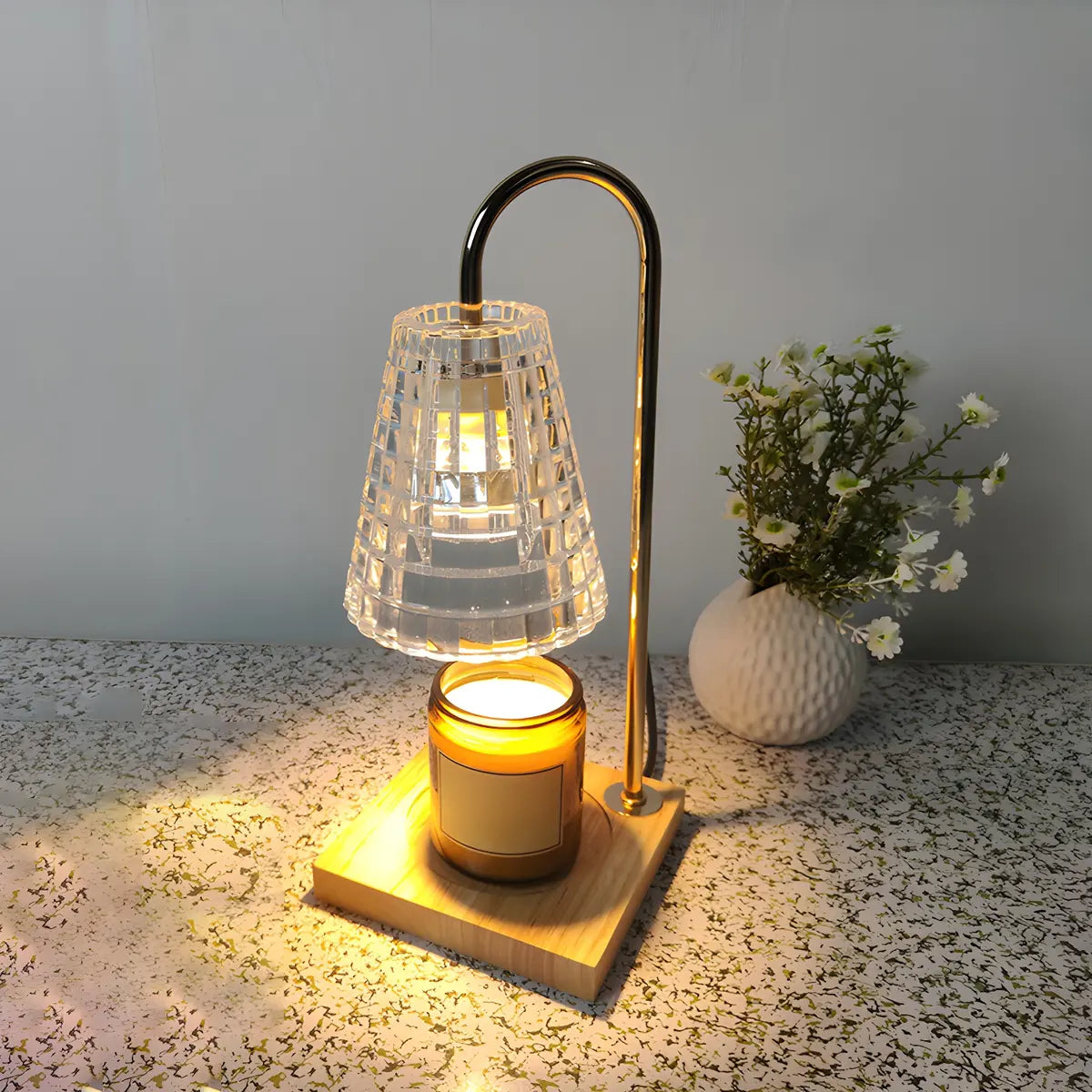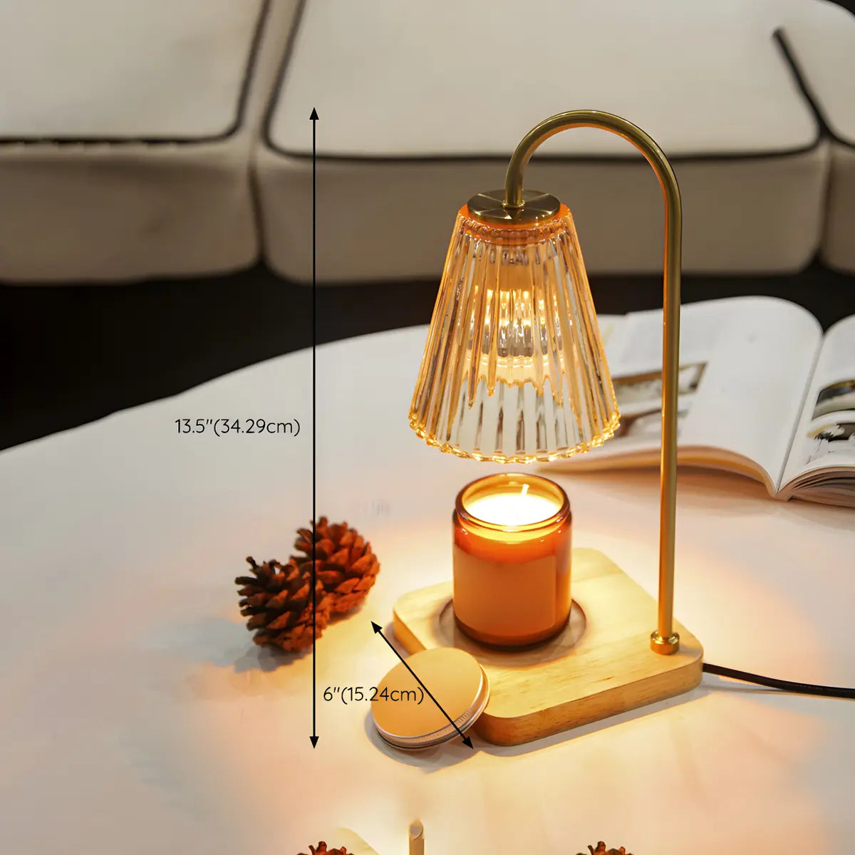 ZOWALA - Clear Glass Cone Gold Arc Wood Table Light