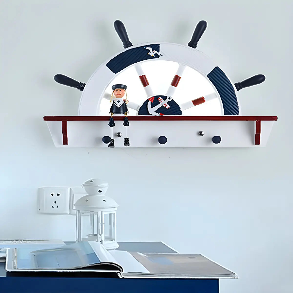 Designed for children's rooms, this wall lamp features a marine-themed rudder shape, showing a unique decorative feature.