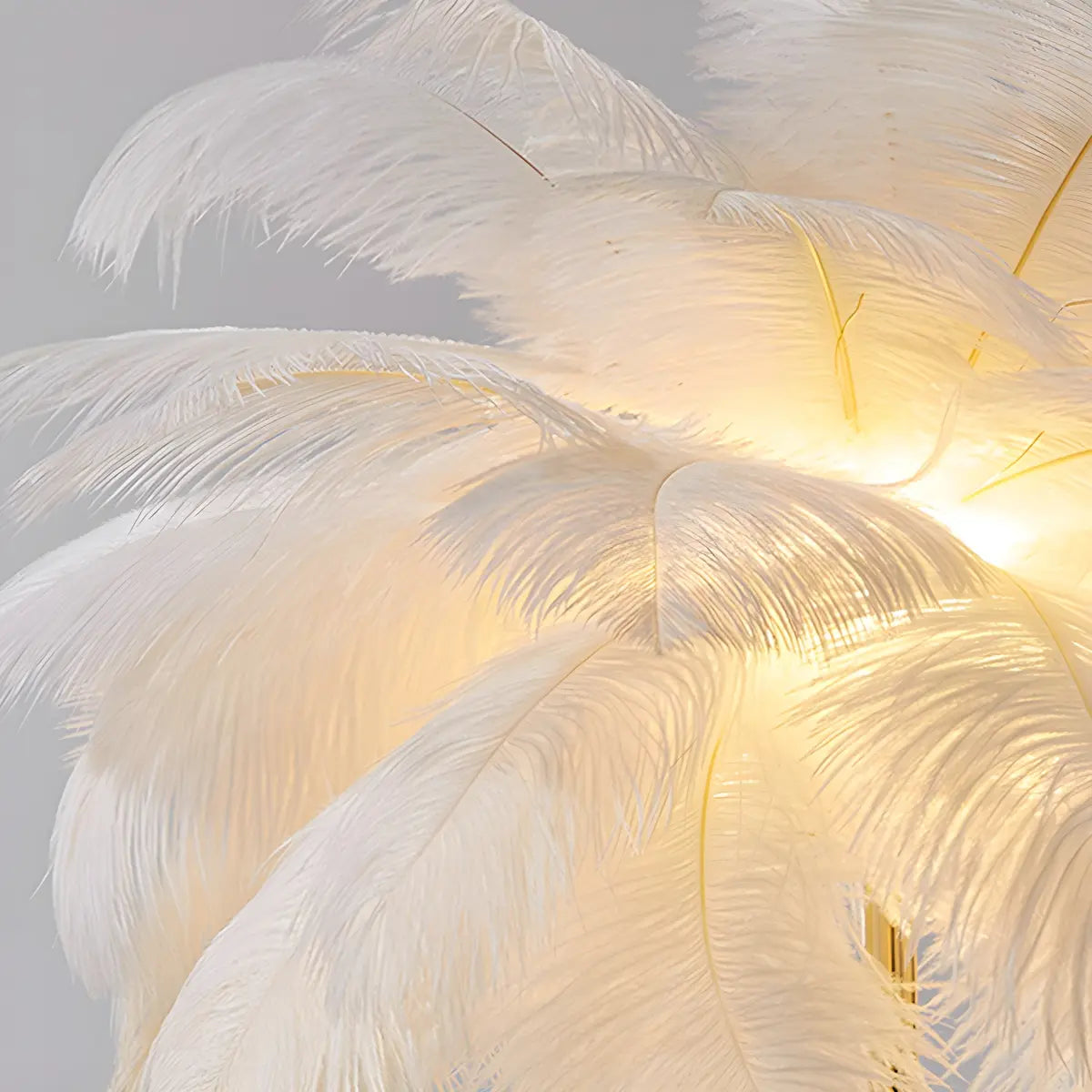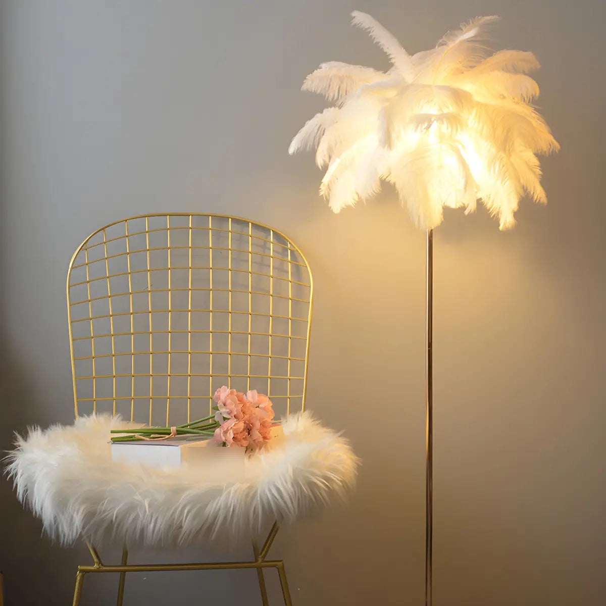 - The exquisite feather lampshade design is not only decorative but also softly distributes light to create a cozy atmosphere.