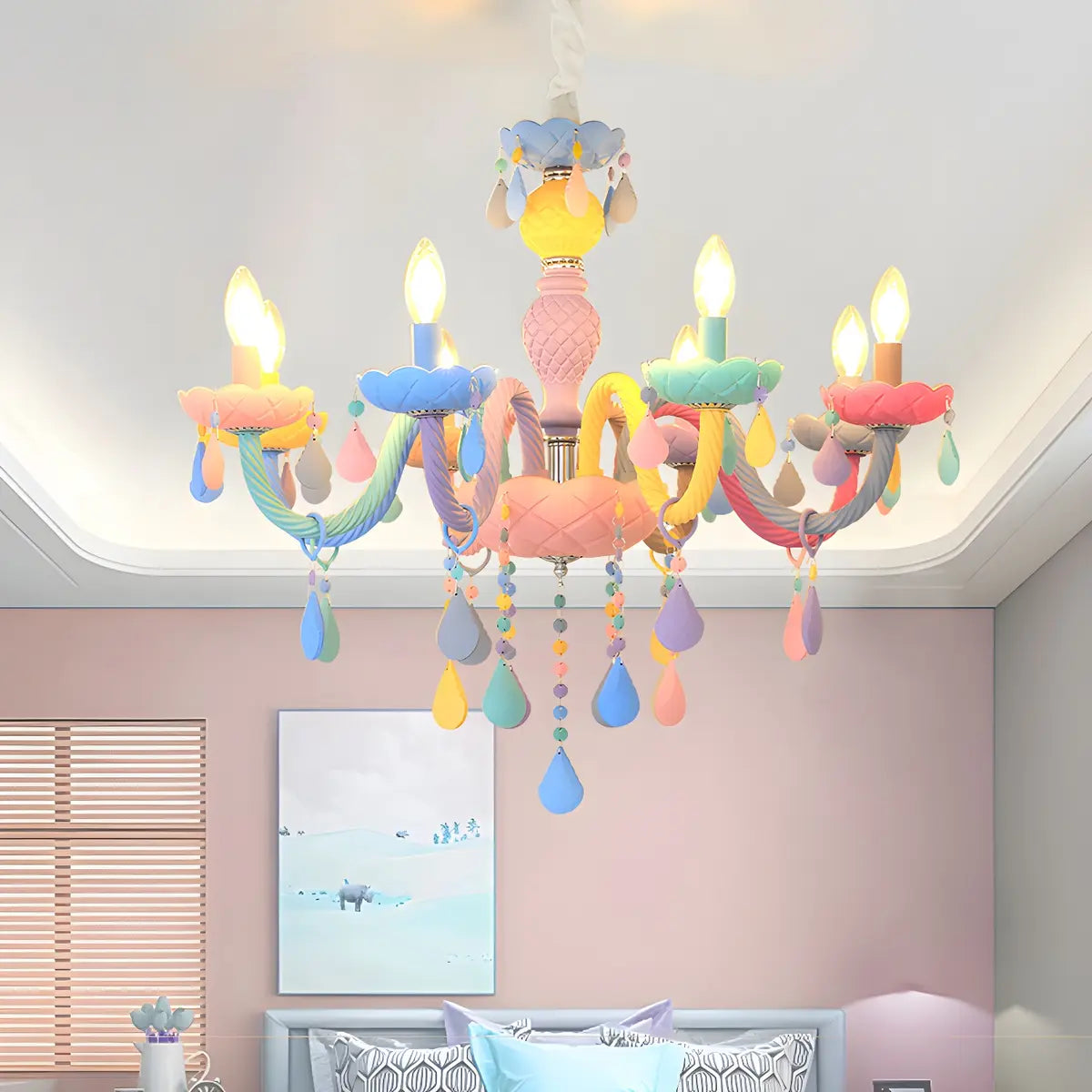 ZOWALA - Kids Room Colorful Candelabra 8-Light Chandelier