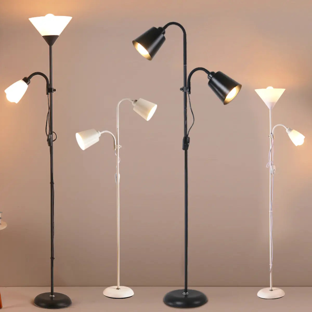 ZOWALA - Contemporary 2-Light Black Plastic Cone Floor Lamp